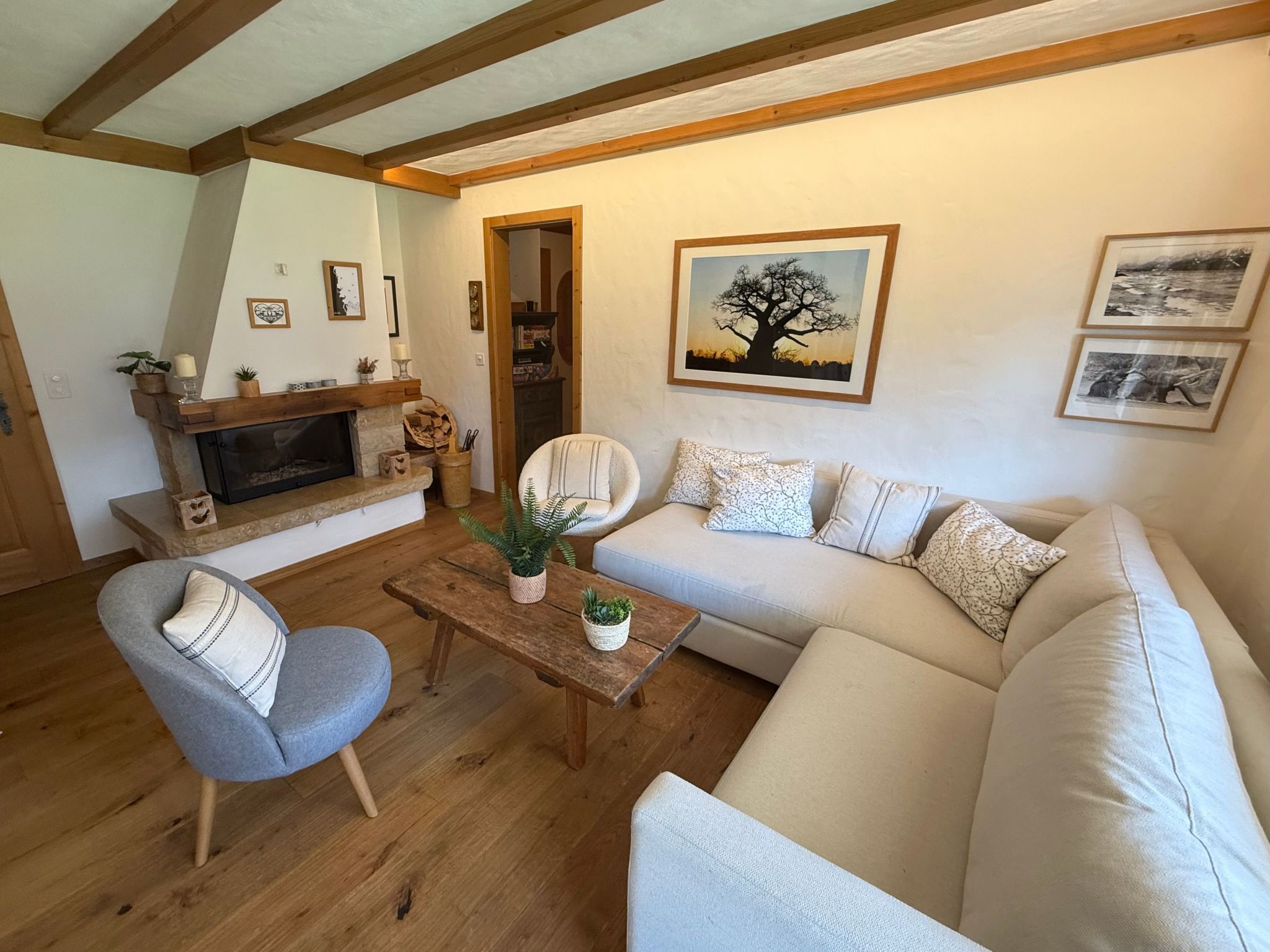 Im Inneren erwartet Sie eine großzügig geschnittene und voll ausgestattete Wohnung, die keine Wünsche offenlässt. Drei gemütliche Schlafzimmer mit insgesamt sechs Betten bieten ausreichend Platz für die ganze Familie oder eine Gruppe von Freunden. Der offene Wohn- und Essbereich mit einem einladenden Kamin lädt zu entspannten Abenden ein, während die offene Küche die Zubereitung köstlicher Mahlzeiten zum Kinderspiel macht. Zwei Badezimmer sorgen dafür, dass Sie und Ihre Mitreisenden sich ohne Wartezeiten auf den Tag vorbereiten können, ergänzt durch moderne Annehmlichkeiten wie zwei Fernseher und kostenloses WLAN.