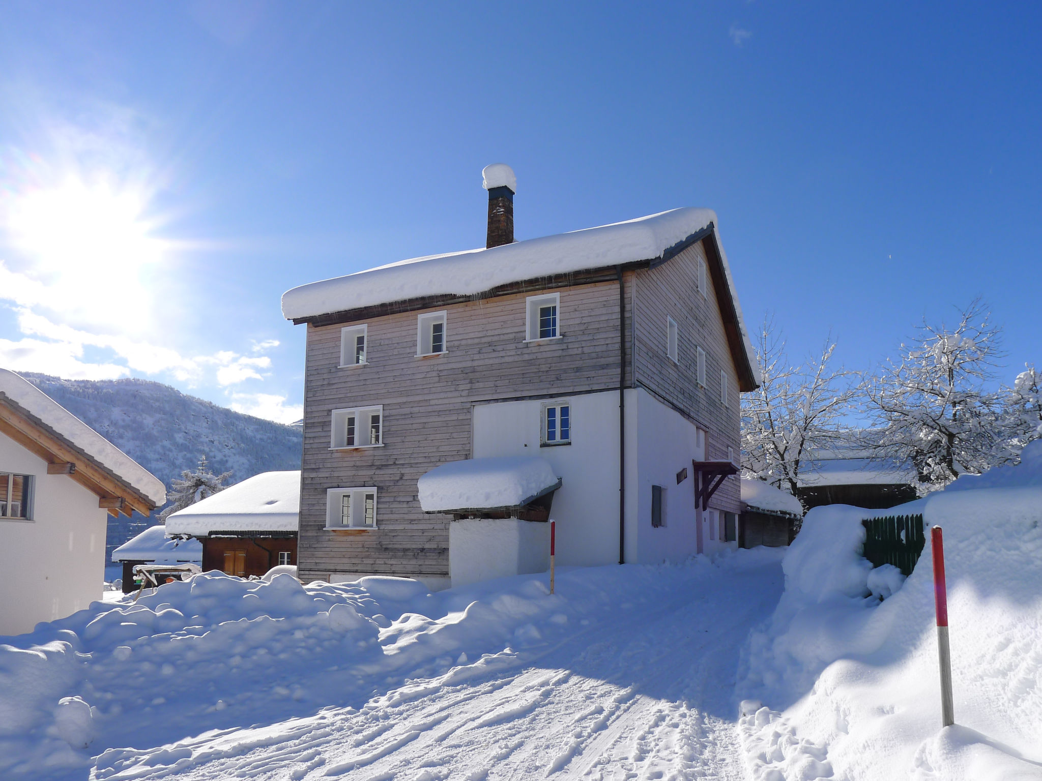 Rustikales Chalet "Feu de Joie", 1'300 m.ü.M., auf 3 Stockwerken, Baujahr 1803, renoviert im Jahre 2018. Am Ortsrand Segnas, ruhige, sonnige Lage, 1 km vom Skigebiet. Im Hause: Skiraum, Zentralheizung. Zufahrt bis zum Haus. Parkplatz (für 2 Autos) beim Haus. E-Ladestation. Einkaufsgeschäft 1 km, Lebensmittelgeschäft 1 km, Supermarkt 1 km, Restaurant 1 km, Bushaltestelle 500 m, Bahnstation "Segnas" 600 m, Hallenbad 3 km. Golfplatz (18 Loch) 6 km, Wanderwege ab Haus 50 m, Luftseilbahn 1 km, Skilift 1 km, Skipisten 150 m, Skischule, Schlittelbahn 500 m, Eisfeld 3 km, Kinderspielplatz 500 m. Bekannte Skigebiete sind gut erreichbar: Disentis 3000 1 km, Ski Arena Andermatt Sedrun 9 km. Wandergebiete: Surselava. Bitte beachten: Bei guter Schneelage Zufahrt mit den Skiern bis zum Haus.