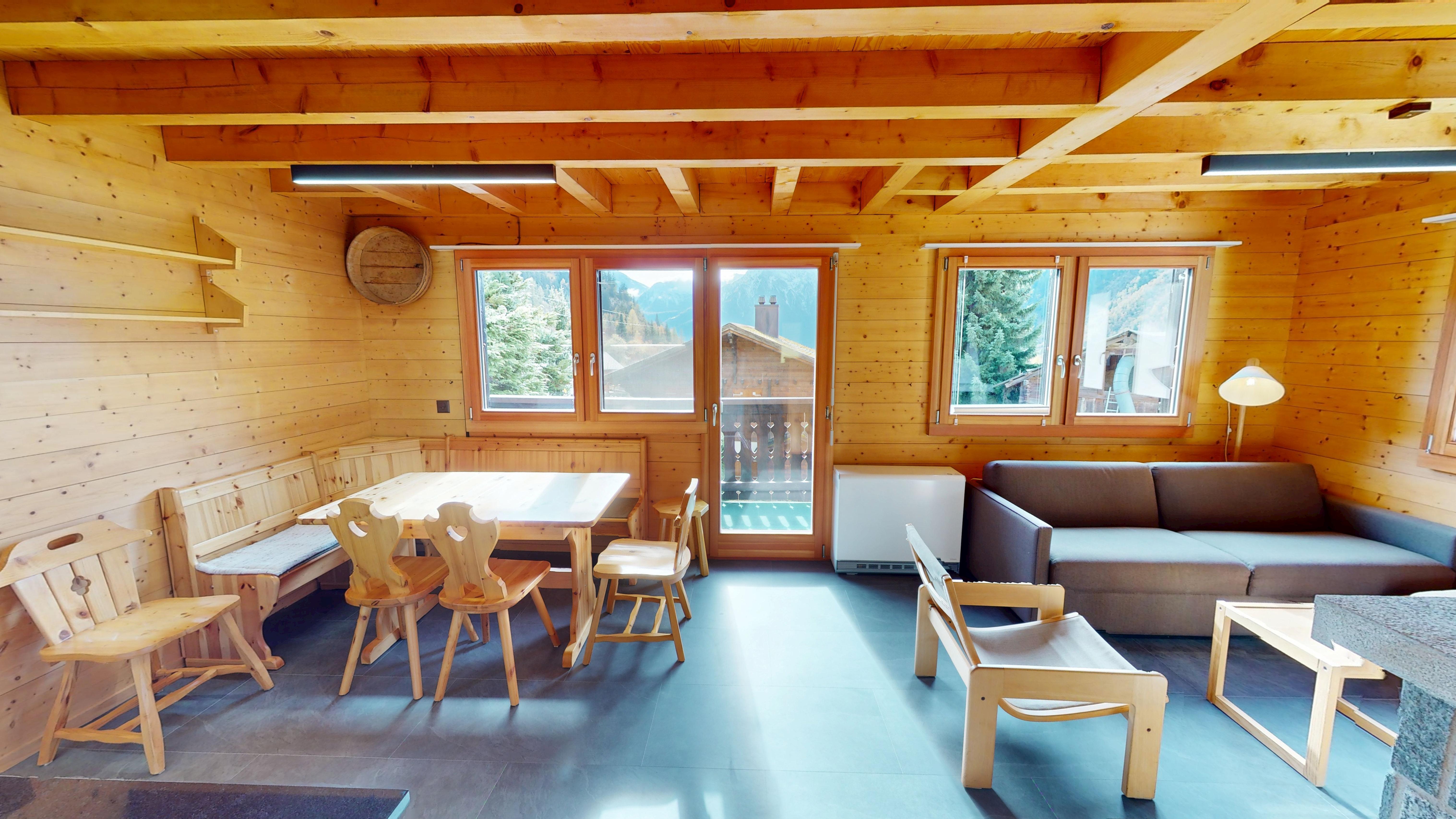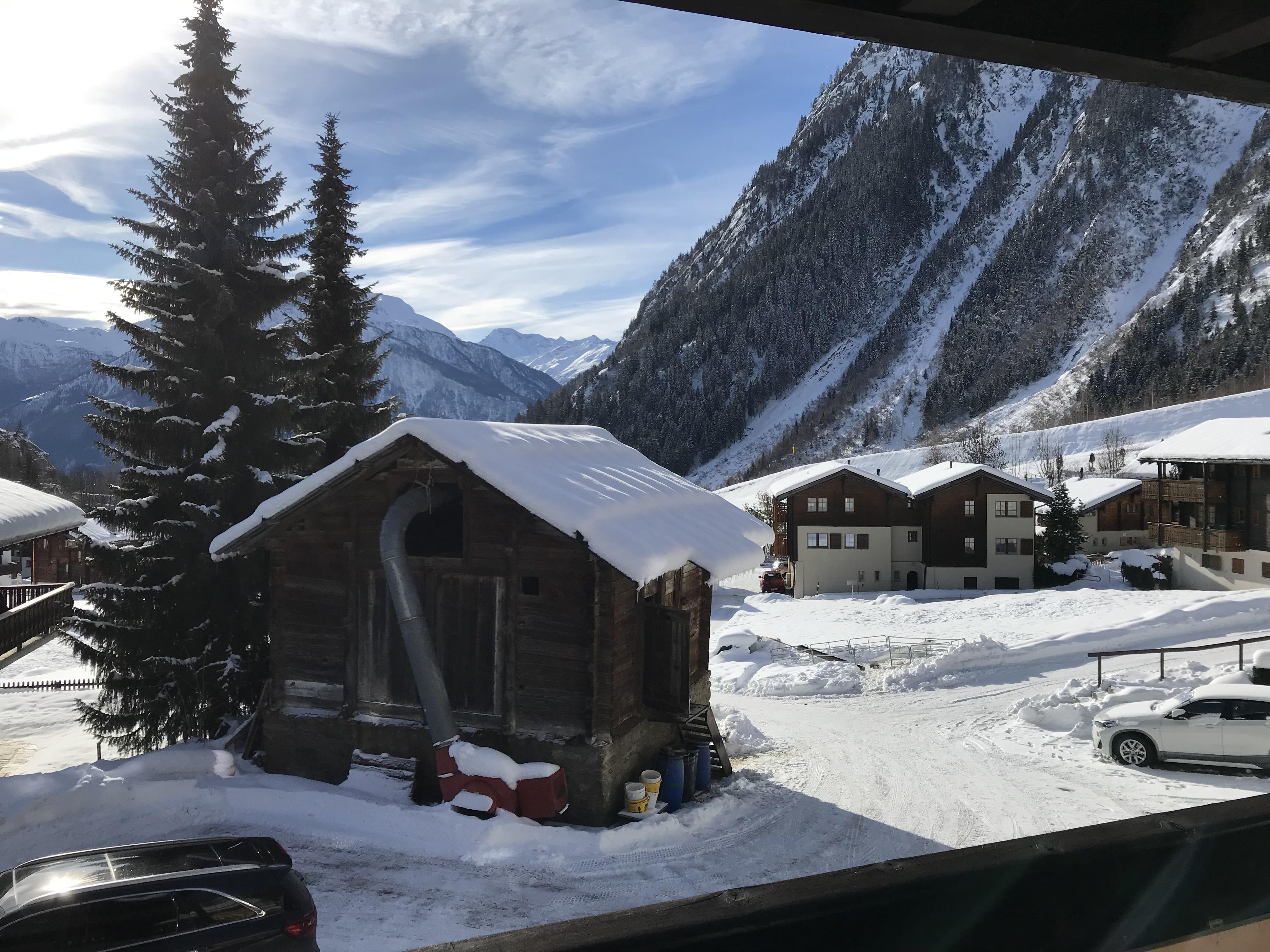 Standort: ca. 350m unterhalb Dorfzentrum Blatten (Eija 45), ruhige Lage, unmittelbar neben Haltestation vom Skibus (Winter)