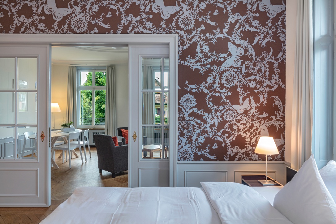 Was dem Haus besonders am Herzen liegt, ist das erfolgreiche Arbeits-Integrationsprojekt für psychisch erkrankte Menschen, die im Hotel Auberge eine neue Lebensperspektive erhalten. Die Genossenschaft Solidarität wurde 2005 gegründet, um psychisch erkrankten Menschen bei der Reintegration in die Gesellschaft zu helfen. Mit dem Hotel AUBERGE folgt nun nach dem selbständigen Wohnen der erkrankten Menschen der nächste Schritt: Re-Integration in die Arbeitswelt unter professioneller Begleitung. Restaurant (15 Gault-Millau-Punkte) Im stilvollen Restaurant werden Sie mit einer Geniesserküche, ausgezeichnet mit 15 Gault-Millau Punkten, verwöhnt. Der Küchenchef überrascht die Gäste immer wieder mit neuen, auserlesenen Kreationen. Tipp: Das 5-Gang-Überraschungsmenü. Verwendet werden ausschliesslich qualitativ hochstehende Lebensmittel von ausgewählten Lieferanten aus der Region. Die werden täglich frisch zubereitet. Die 1870 gebaute und 2011 renovierte Villa bietet 17 individuell eingerichtete Zimmer voller Charme. Stilgerecht schmücken Stoff-Tapeten wie anno dazumal die Wände in den modernen Gästezimmer. Das Restaurant hat zwei grosszügige Seminarräume mit moderner Infrastruktur und flexible Möbilierungslösungen für Meetings, Konferenzen, Seminare und Tagungen (max. 50 Personen). Attraktive Seminarpauschale. Sitzungszimmer Suite (ideal bis 4 Personen) und Lounge (für bis 5 Personen).