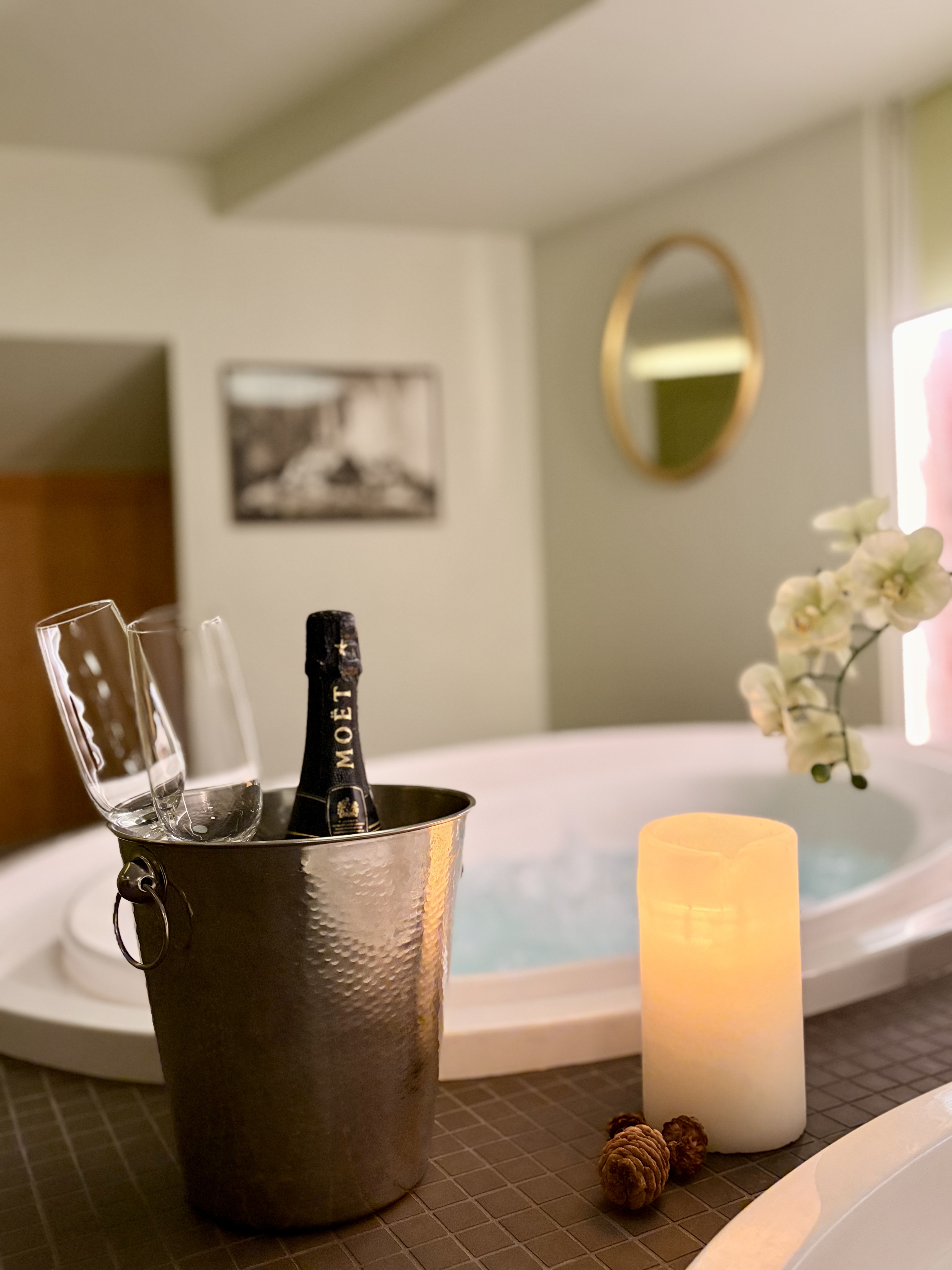 Sinken Sie in Ihren privaten Whirlpool, während draußen die Sonne hinter den Gipfeln versinkt. Hören Sie das Knistern des schwedischen Kamins, während Sie auf dem Sofa die Wärme auf Ihrer Haut spüren.