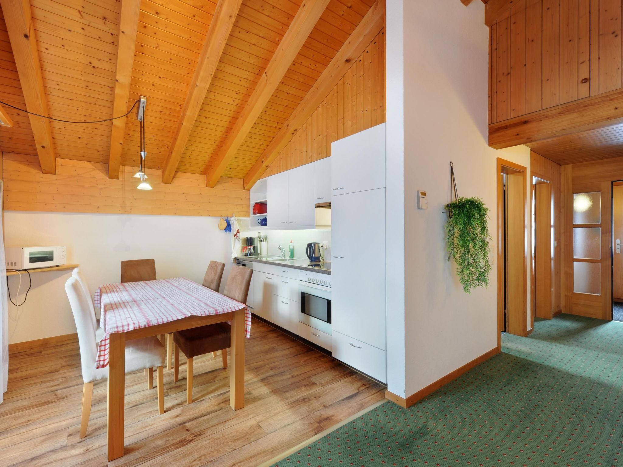 In dieser einladenden Wohnung sorgt die Fußbodenheizung in allen Räumen für wohlige Wärme, ganz gleich, zu welcher Jahreszeit Sie uns besuchen. Die Küche ist mit einer Filter- und einer Kapsel-Kaffeemaschine, einem Wasserkocher sowie einer Spülmaschine perfekt ausgestattet, um Ihren Aufenthalt so angenehm wie möglich zu gestalten. Gemeinschaftlich genutzt wird die Waschmaschine im Gebäude, die Ihnen die Freiheit gibt, Ihr Gepäck leicht zu halten.