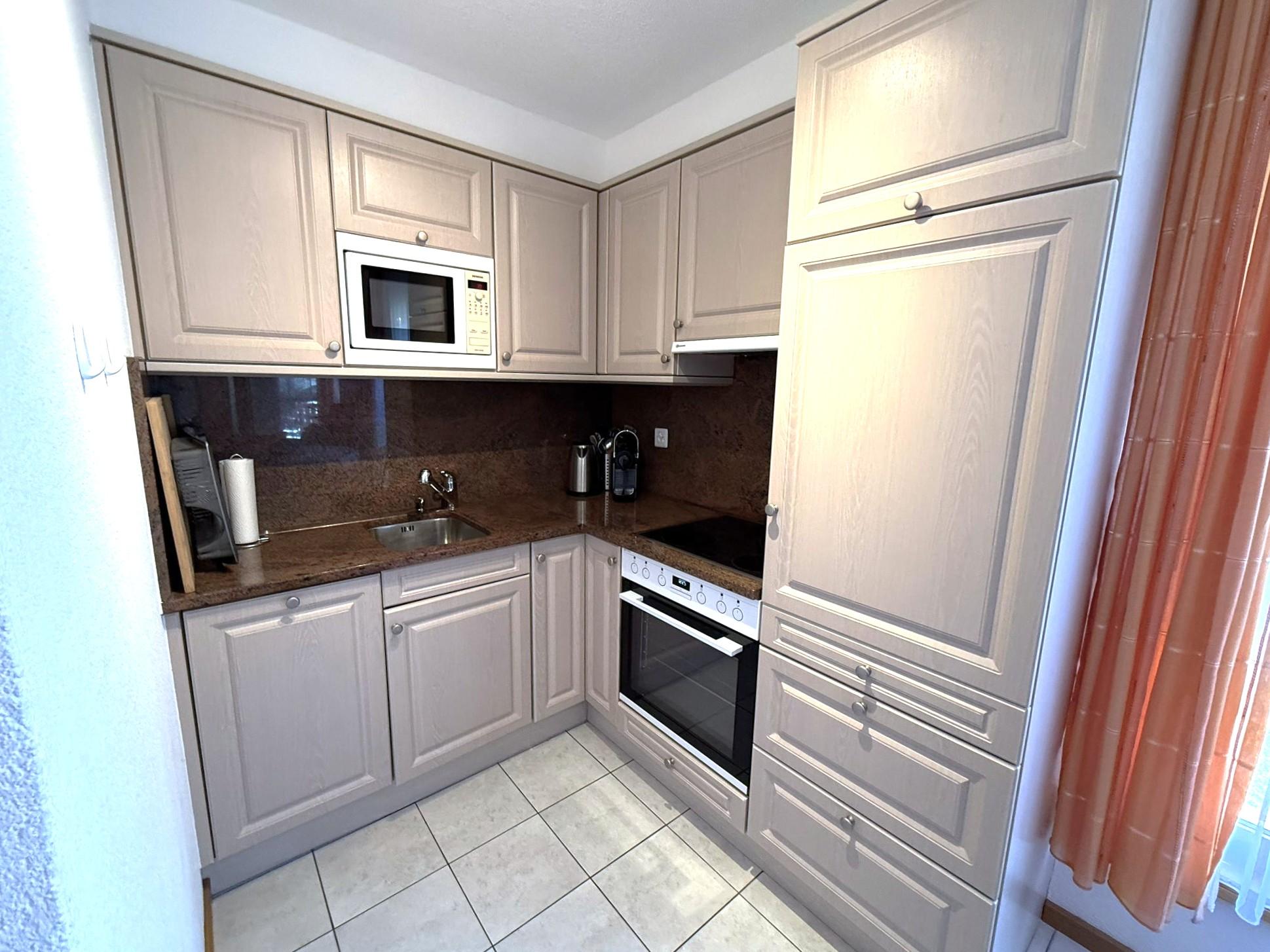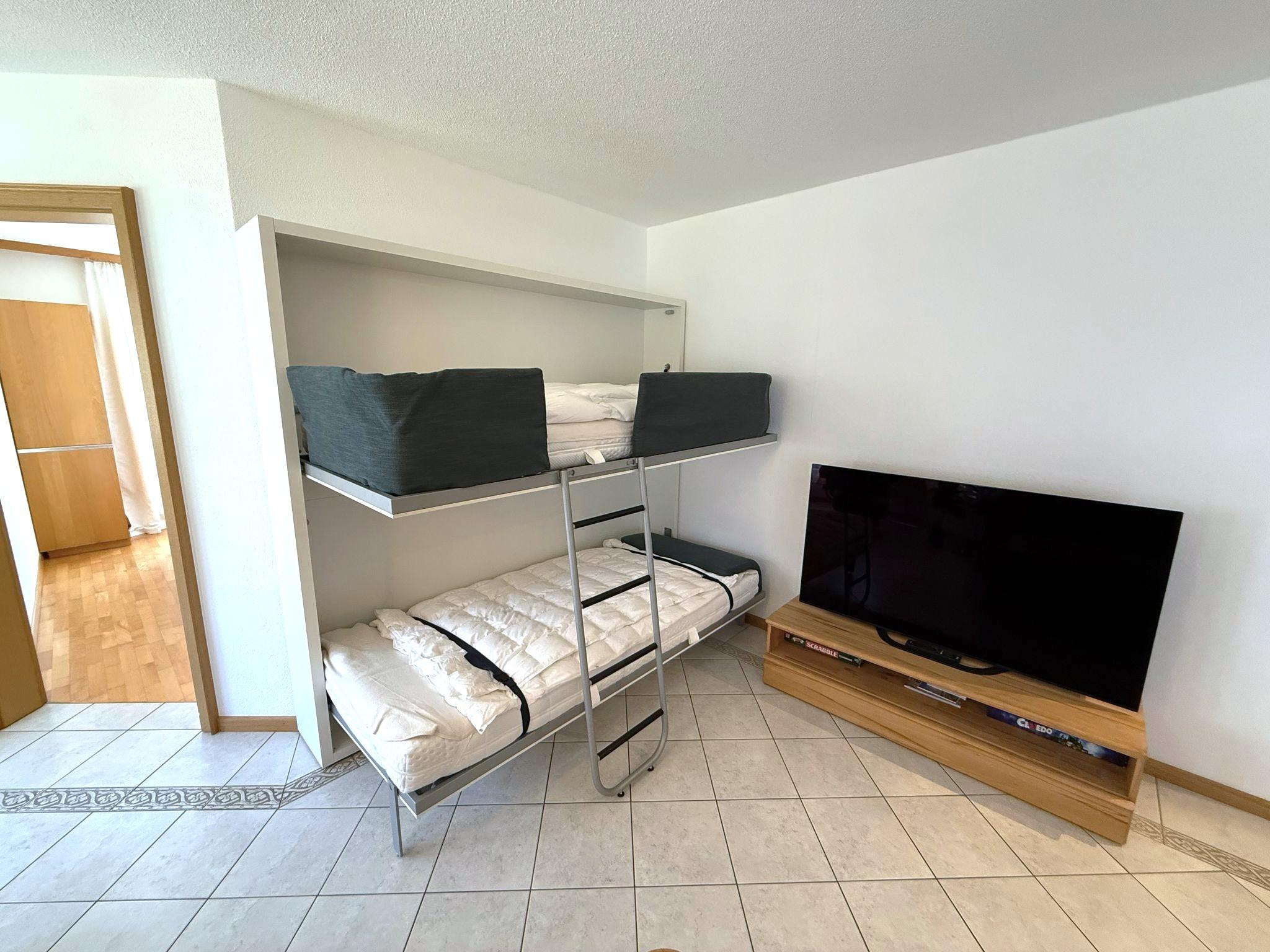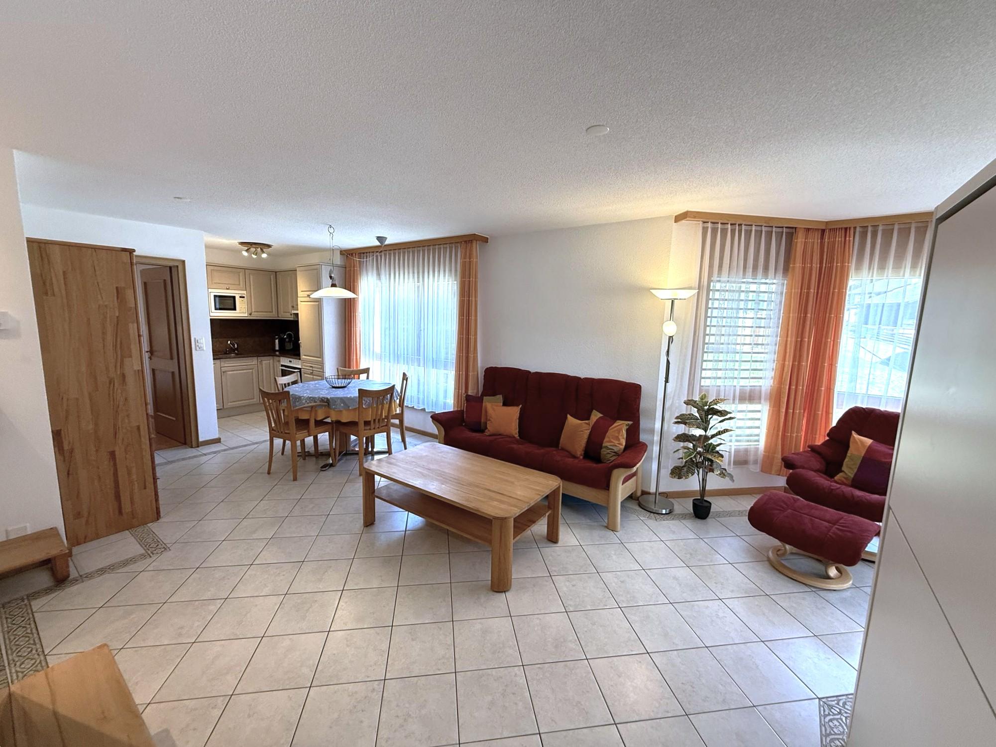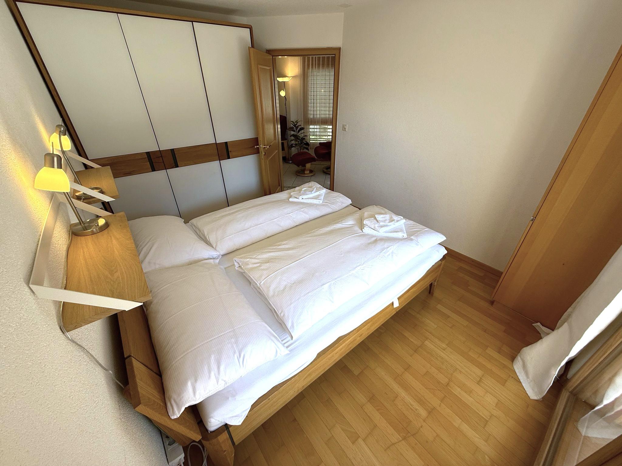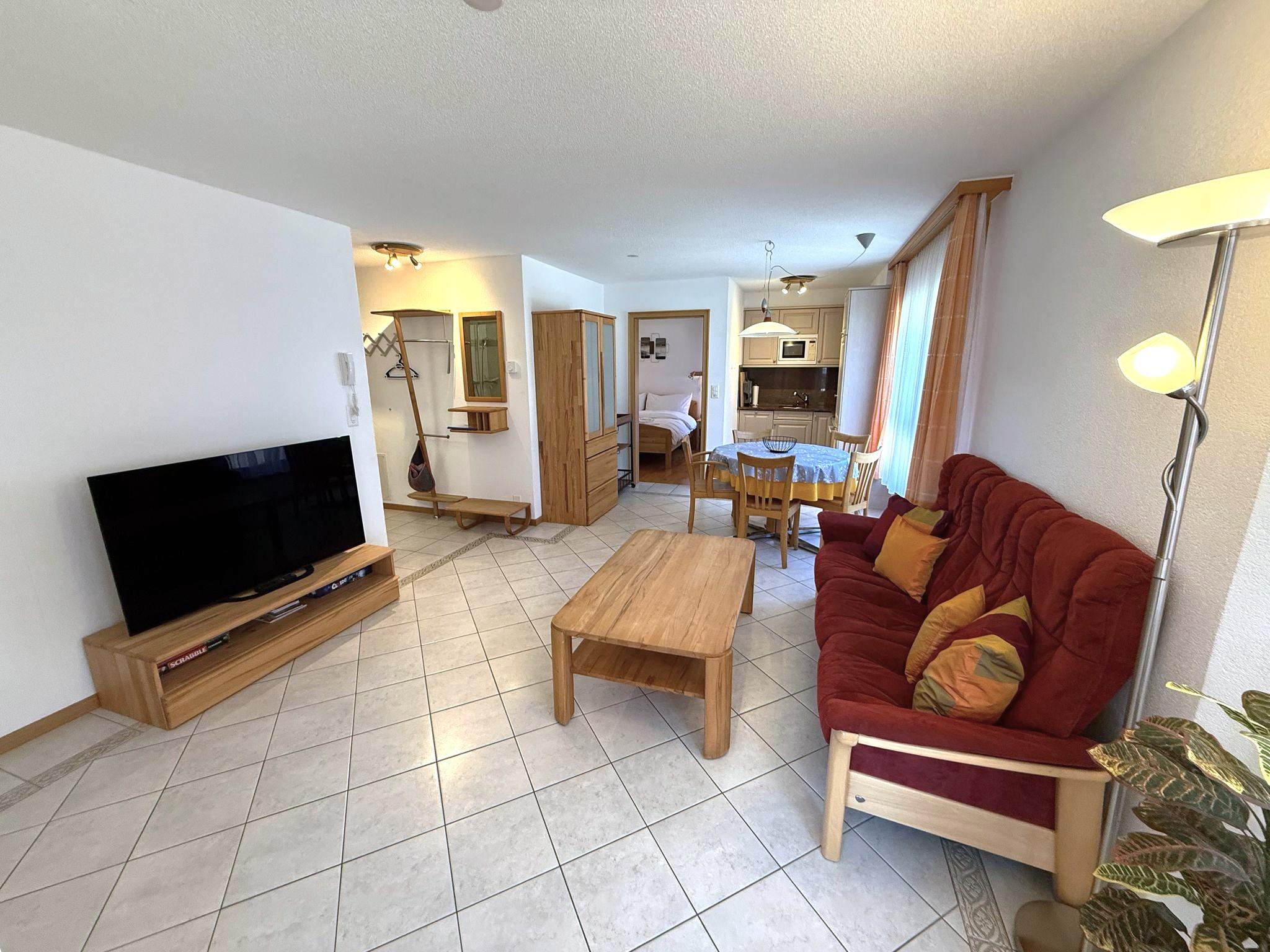 3-Zimmerwohnung: Wohn/Esszimmer, moderne offene Wohnküche mit Mikrowelle und Geschirrspüler, 1 Doppelschlafzimmer, 1 Schlafzimmer mit 3 Betten, 1 Dusche/WC plus 1 Bad/WC, Südost-Balkon, TV, Radio. Garage im Haus inklusive. Nichtraucherwohnung! Haustiere erlaubt.