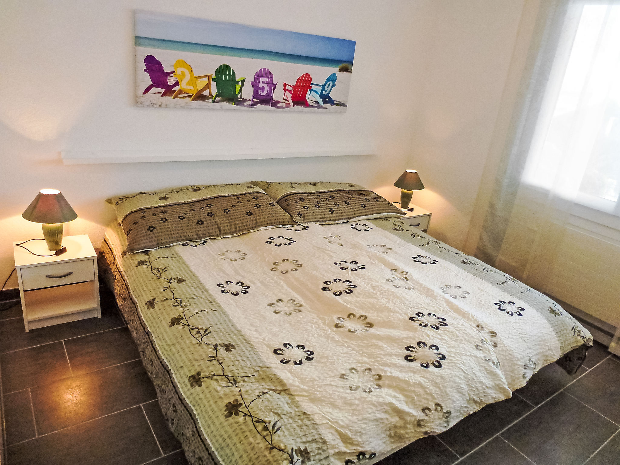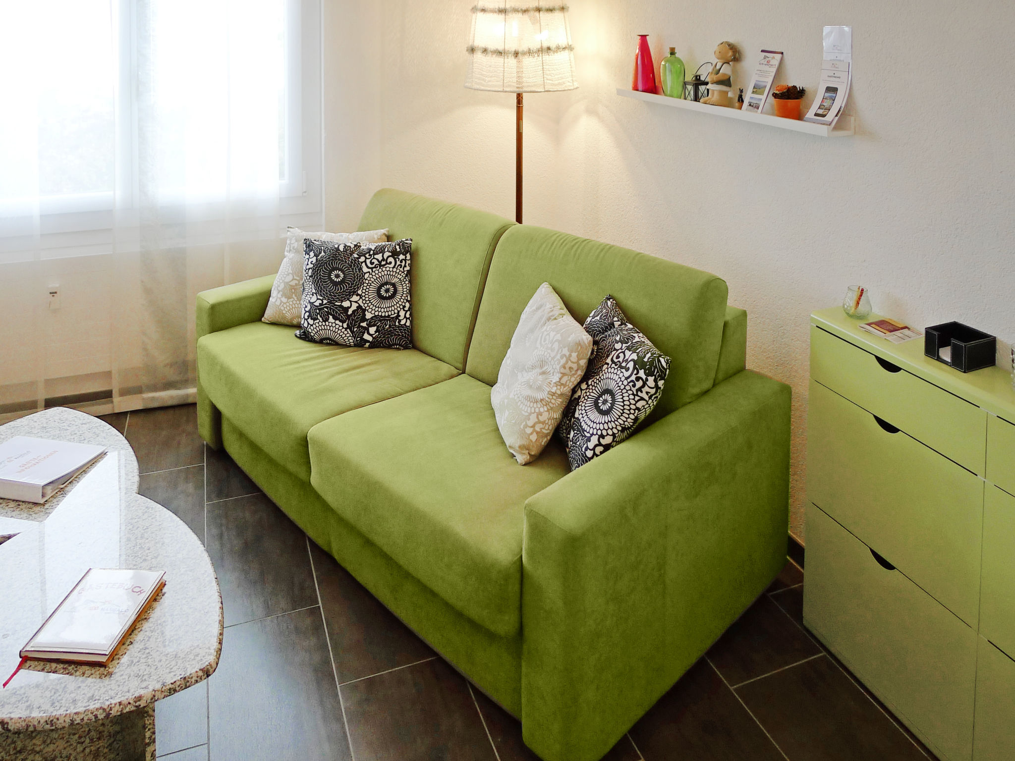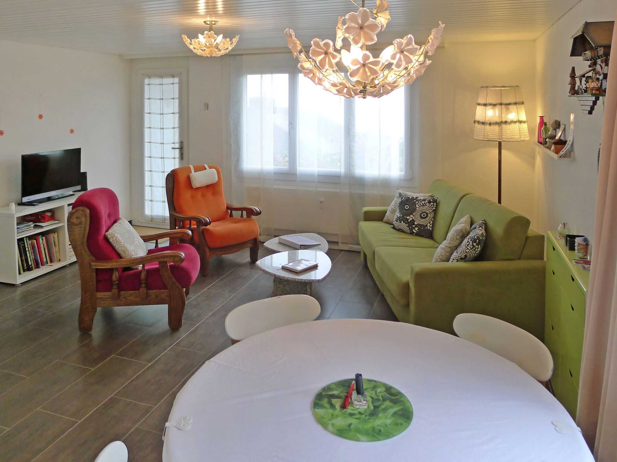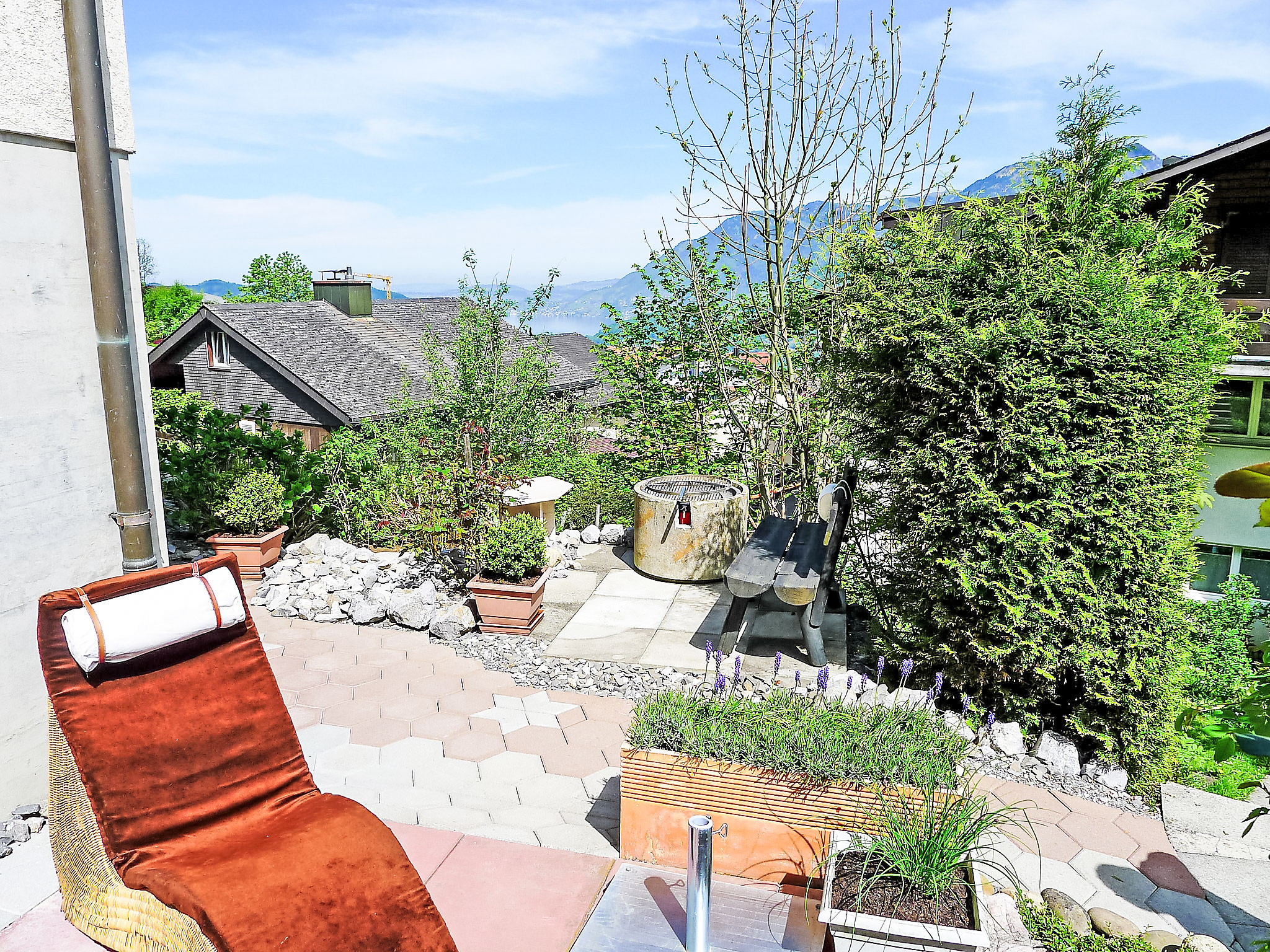 "Mansalo", 2-Zimmer-Wohnung 49 m2, im Erdgeschoss, Nordlage. Objekt geeignet für 2 Erwachsene + 2 Kinder. Hell, vollständig renoviert im Jahre 2012, modern und geschmackvoll eingerichtet: Wohn-/Esszimmer mit 1 Doppeldiwanbett (140 cm, Länge 200 cm), Esstisch, Bibliothek, Kabel-TV, Flachbildschirm und DVD. Ausgang zum Gartensitzplatz. 1 Zimmer mit 1 Doppelbett (180 cm, Länge 200 cm). Offene Küche (Backofen, Geschirrspüler, 4 Glaskeramikplatten, Mikrowelle, Tiefkühler, elektrische Kaffeemaschine, Dampfgarer, Racletteofen, Fondue Set (Käse)). Bad/WC. Heizung. Grosse Terrasse teilweise überdacht, grosser Gartensitzplatz. Terrassenmöbel, Gartengrill, Liegestühle (2). Schöne Sicht auf den See, die Berge, die Landschaft und die Ortschaft. Zur Verfügung: Bügeleisen, Kinderhochstuhl, Babybett bis 2 Jahre, Haartrockner. Internet (WLAN, gratis). Parkplatz (1 Auto) beim Haus. Bitte beachten: Nichtraucher-Unterkunft. Maximal 1 Haustier/Hund erlaubt.