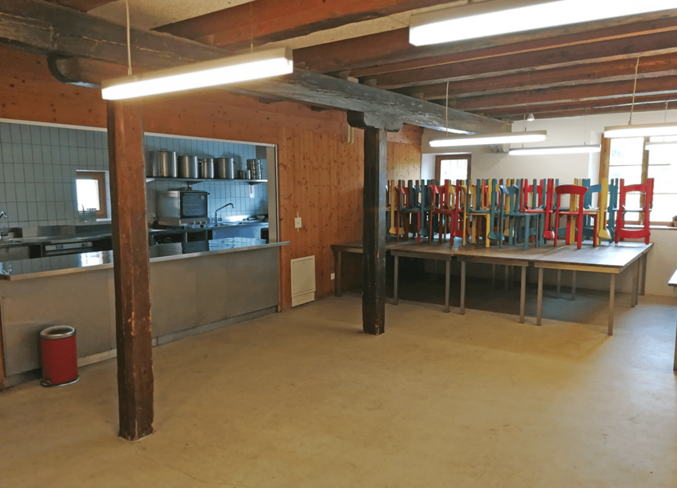 Das Haus verfügt über rund 30 Schlafplätze in mehreren Zimmern, einen grossen Aufenthaltsraum sowie einen separaten Bastel- und Arbeitsraum. Die Selbstkocherküche ist komplett ausgestattet und erleichtert dir die Organisation deiner Mahlzeiten. Draussen findest du eine grosszügige Wiese, einen gedeckten Unterstand und genügend Platz für Spiele, Workshops oder Outdoor-Programme. Besonders praktisch: Einkaufsmöglichkeiten erreichst du zu Fuss, das Strandbad Cudrefin sowie schöne Uferwege liegen ganz in der Nähe.
