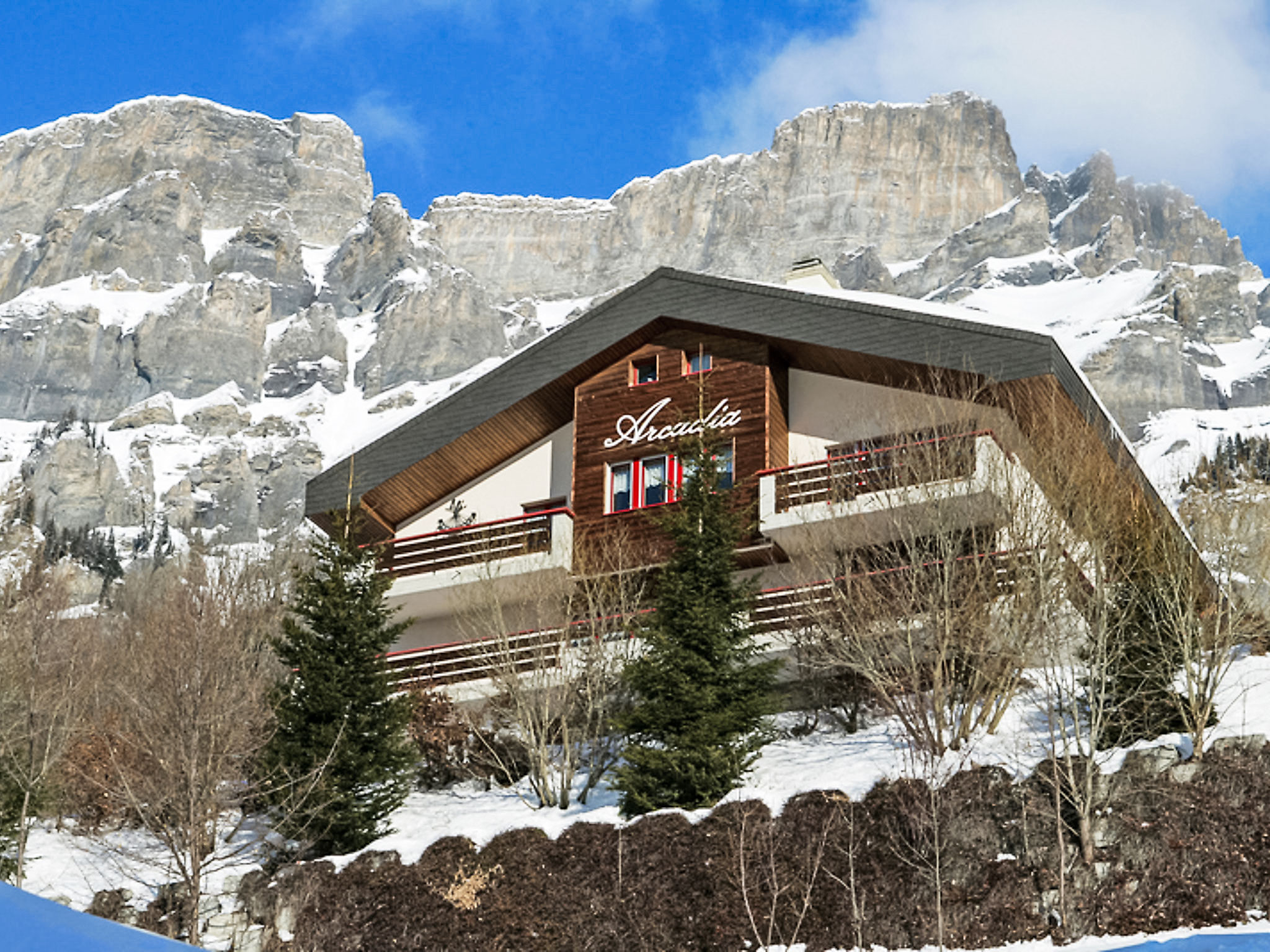 Gemütliche Villa "Arcadia", auf 3 Stockwerken, Baujahr 1986. Am Ortsrand, 1 km vom Zentrum, ruhige, sonnige, erhöhte Lage am Hang, an einer Strasse. Im Hause: Zentralheizung, Waschmaschine, Wäschetrockner (zur Mitbenutzung). Parkplatz beim Haus. Einkaufsgeschäft, Restaurant, Bäckerei, Bushaltestelle 400 m. Skisportanlagen 2 km. Bitte beachten: Der Besitzer wohnt im selben Haus. Der Parkplatz und der Eingang befindet sich im 2. Stock hinter dem Haus. In der Buchung ist die Leukerbad Plus Card inbegriffen. Die Leukerbad Plus Card beinhaltet folgende Leistungen: Freie Benutzung des Ortsbus Ringjet, Freie Benutzung des Kinder-Skigebietes Erli, Gratis Nutzung der Sportarena (Badminton, Tennis, Squash, Billard, Tischtennis, Eislaufen, Fussball, Indoor-Fussball, Minigolf, Boulder, etc.), 15% Ermässigung beim Kauf eines Schnee- und Badepasses. 10% Ermässigung auf Abonnemente und Mehrfacheintritte in öffentlichen Thermalbäder.