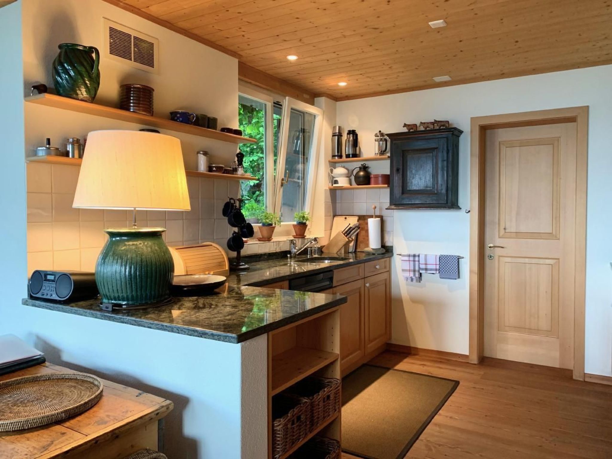 Im Innenbereich erwartet Sie ein großzügiges Wohn-/Esszimmer, verbunden mit einer halboffenen, voll ausgestatteten Küche, die keine Wünsche offen lässt. Von Geschirrspüler, Backofen, Nespresso-Kaffeemaschine, Toaster, Fondue- und Raclette-Sets, bis hin zu einem Waffeleisen, Handmixer und Schnellkochtopf – hier finden Sie alles, was das Herz begehrt. Zwei gemütliche Doppelschlafzimmer und ein modernes Duschbad mit WC sowie ein separates WC mit Waschtisch runden das Komfortangebot ab, ergänzt durch eine geschmackvolle Mischung aus antiker und moderner Möblierung und einem einladenden Cheminée.