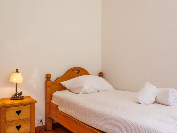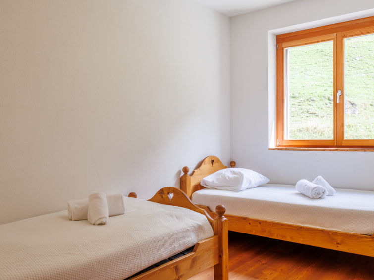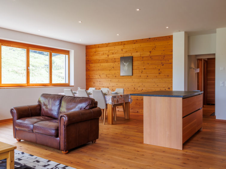 "Rosablanche E 107", 3-Zimmer-Wohnung 98 m2, im Erdgeschoss. Modern und geschmackvoll eingerichtet: Wohn-/Esszimmer mit Kabel-TV. 1 Zimmer mit 2 Betten (90 cm, Länge 200 cm). 1 Zimmer mit 1 Doppelbett (2 x 90 cm, Länge 200 cm), Bad/WC. (Backofen, Geschirrspüler, 4 Induktionskochplatten, Toaster, Wasserkocher, Mikrowelle, Tiefkühler, elektrische Kaffeemaschine, Kapseln für die Kaffeemaschine (Dolce Gusto) extra, Racletteofen, Fondue Set (Käse)). Dusche/WC. Terrasse 13 m2, Nordlage. Sicht auf die Berge. Zur Verfügung: Haartrockner. Internet (Wireless LAN). Garage Nr. 30. Bitte beachten: Nichtraucher-Haus.