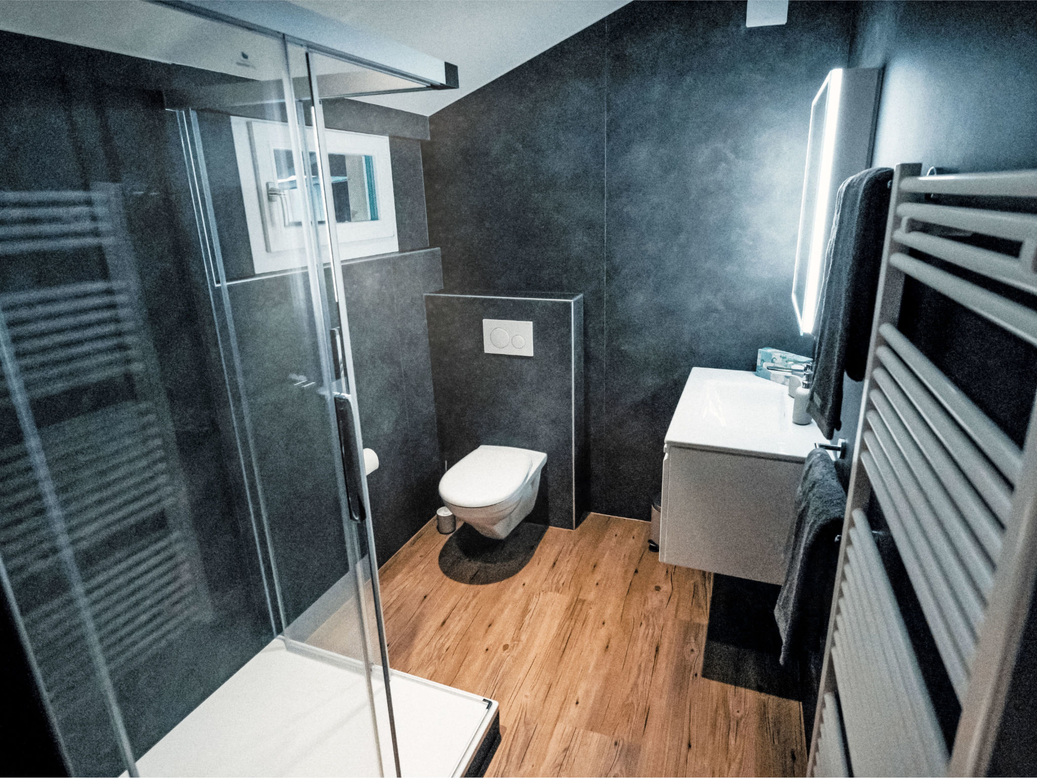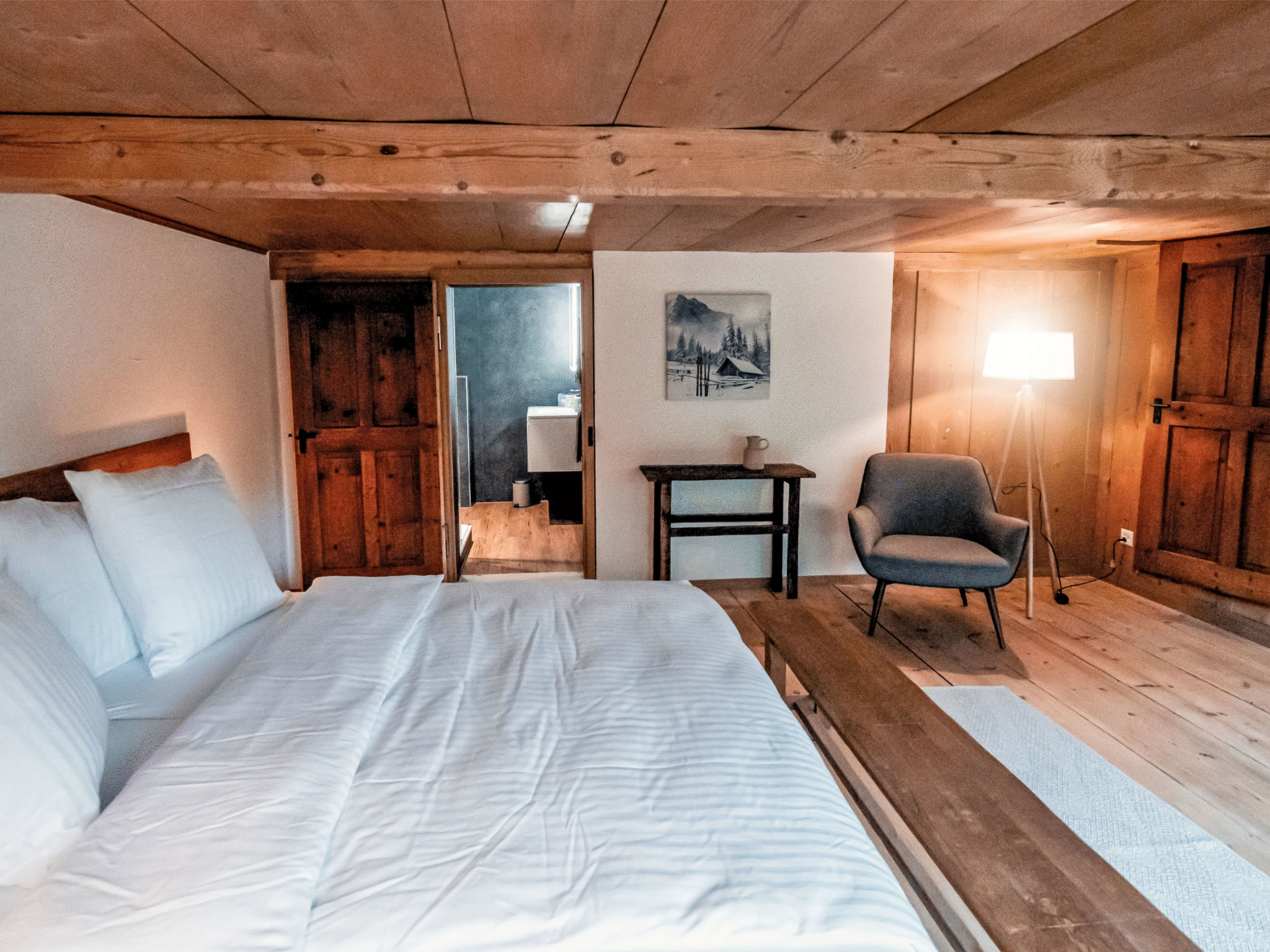 3-Zimmer-Wohnung 100 m2, im Erdgeschoss. Geräumig, vollständig renoviert im Jahre 2024, luxuriös und geschmackvoll eingerichtet: grosses Wohn-/Esszimmer mit Esstisch und Digital-TV. 1 grosses Doppelzimmer mit 1 Doppelbett (180 cm, Länge 200 cm), Dusche/WC. Offene Küche (Backofen, Geschirrspüler, 4 Induktionskochplatten, Toaster, Wasserkocher, Racletteofen, Fondue Set (Chinoise, Käse)) mit Esstisch. Holzheizung. Holzdielenboden. Terrasse, grosser Gartensitzplatz. Terrassenmöbel, Liegestühle. Herrliche Sicht auf die Berge und die Landschaft. Zur Verfügung: Babybett bis 2 Jahre (extra), Haartrockner. Internet (Wireless LAN, gratis). Parkplatz. E-Ladestation. Bitte beachten: Nichtraucher-Haus. Feuerlöscher.