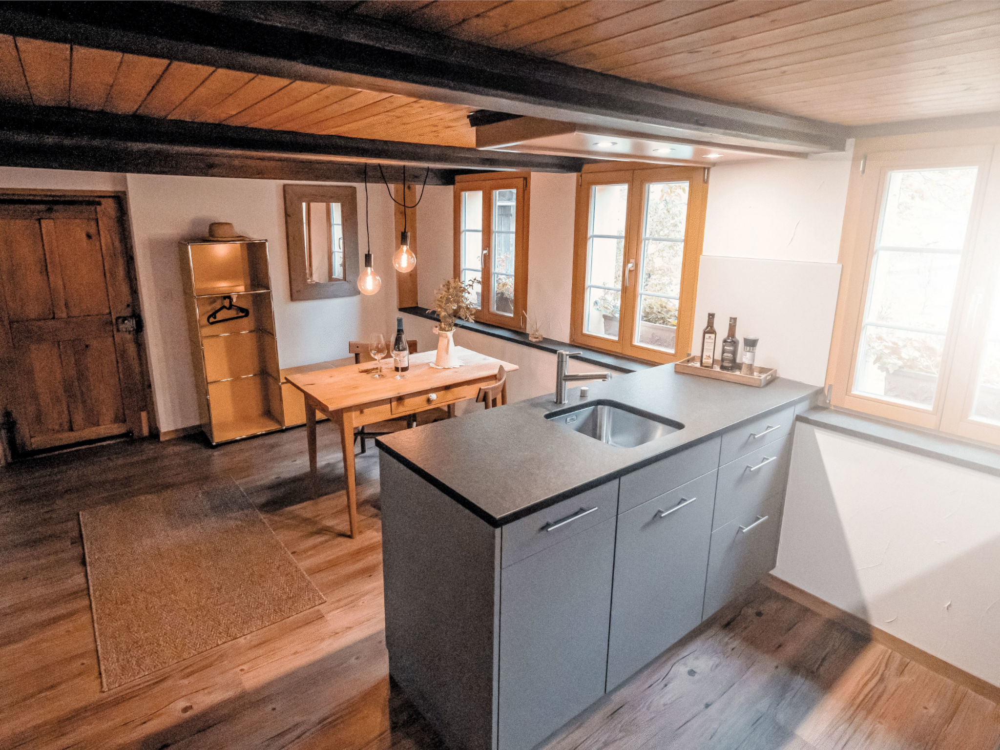 Innertkirchen 6 km von Meiringen: Freistehendes, historisches Bauernhaus "Chalet Solegg", 880 m.ü.M., Baujahr 1760, renoviert im Jahre 2024, umgeben von Wiesen und Feldern. Oberhalb von Innertkirchen, im Weiler Unterstock, ruhige, sonnige Lage am Hang, im Grünen. Zur Mitbenutzung: grosser, gepflegter Garten, Liegewiese. Terrasse, Gartenmöbel, Grill. Im Hause: Skiraum, Zentralheizung. Steile, schmale Zufahrt bis zum Haus (Bergstrasse). Im Winter 4x4 empfohlen. Parkplatz beim Haus. Einkaufsgeschäft 4.5 km, Lebensmittelgeschäft 4.5 km, Supermarkt 9.5 km, Restaurant 4.5 km, Bäckerei 4.5 km, Bushaltestelle "Lammi" 7.3 km, Bahnstation "Innertkirchen" 4.5 km, Freibad 9.5 km, Hallenbad 9.5 km, Badesee "Brienzersee" 15 km. Reitstall 9.5 km, Wanderwege ab Haus 1 m, Luftseilbahn 10 km, Bergeisenbahn 12 km. Nahe gelegene Sehenswürdigkeiten: Aareschlucht, Grimselwelt, Freilichtmuseum Ballenberg. Bekannte Skigebiete sind gut erreichbar: Meiringen - Hasliberg. Bekannte Seen in der Umgebung sind gut erreichbar: Brienzersee. Wandergebiete: Urbachtal, Hasliberg, Rosenlaui. Bitte beachten: Fahrzeug empfohlen. Der Besitzer wohnt im selben Haus.