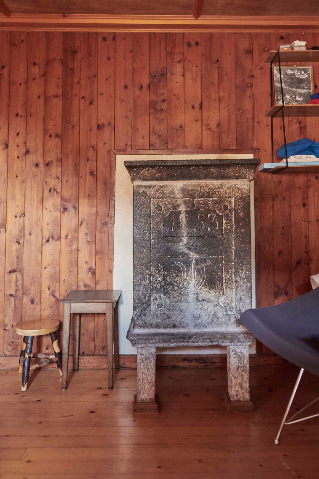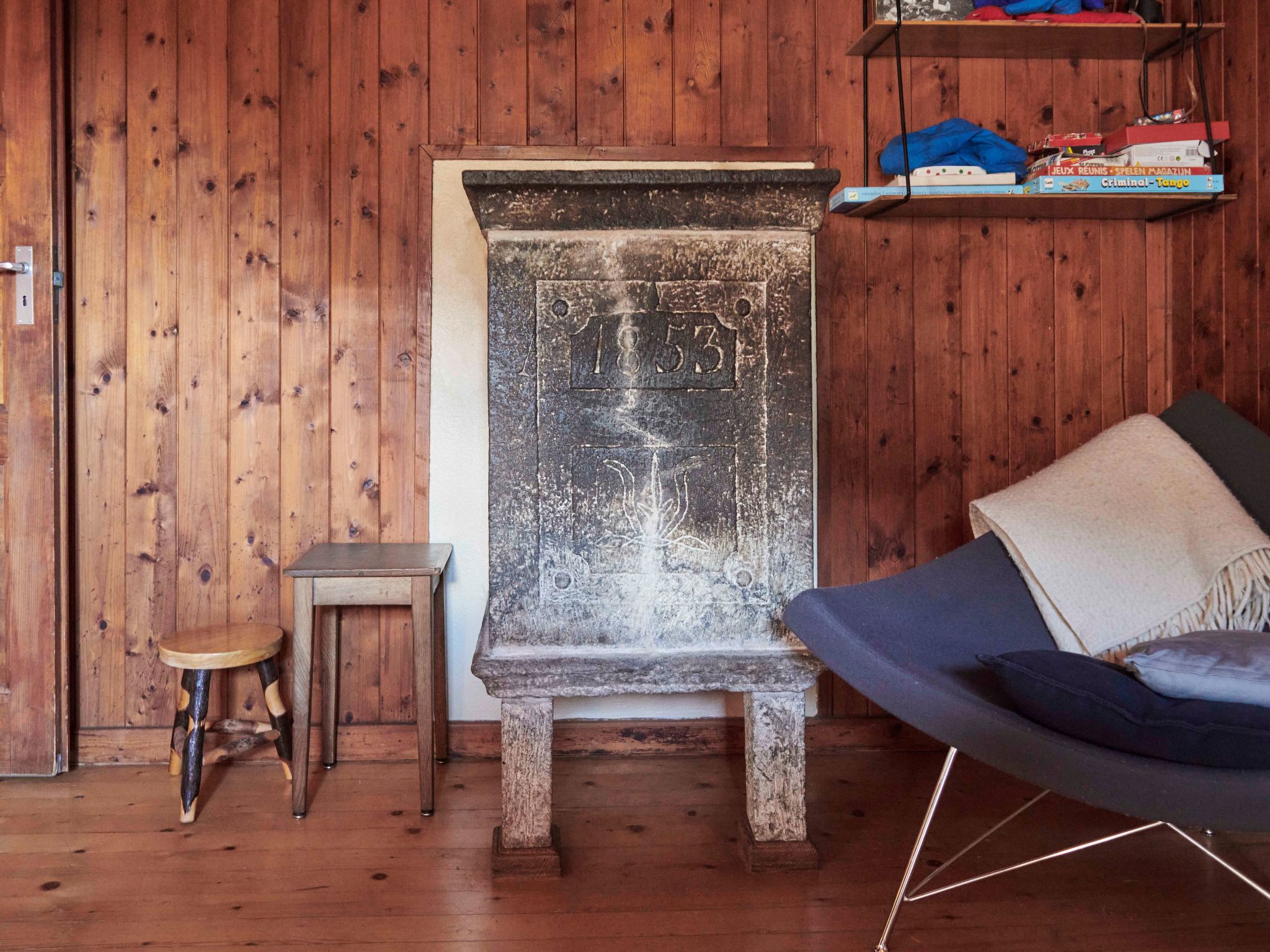 • Im Wohnzimmer sorgt ein grosser Specksteinofen nach mehrstündigem Heizen für wohlige Wärme, die bis zu 24 Stunden anhält.