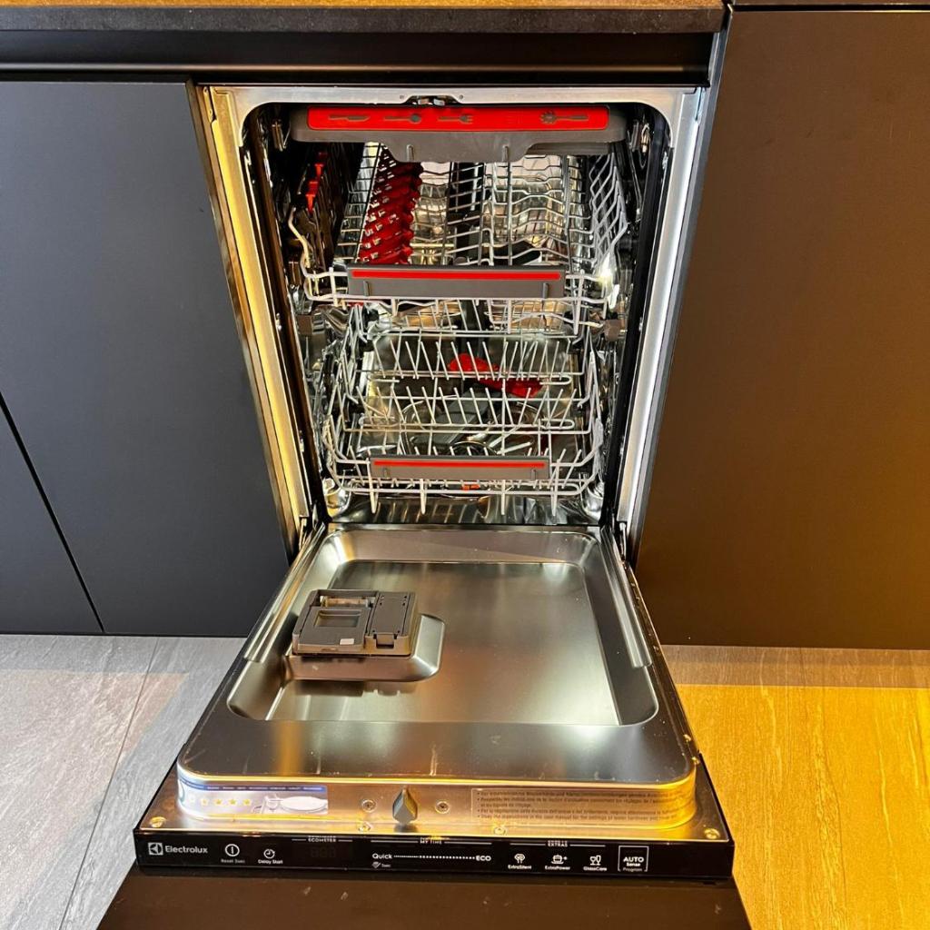 Diese Ferienwohnung bietet eine Terrasse, 1 Schlafzimmer, ein Wohnzimmer und eine gut ausgestattete Küche mit einem Kühlschrank und einem Geschirrspüler. In dieser Ferienwohnung werden Handtücher und Bettwäsche angeboten.