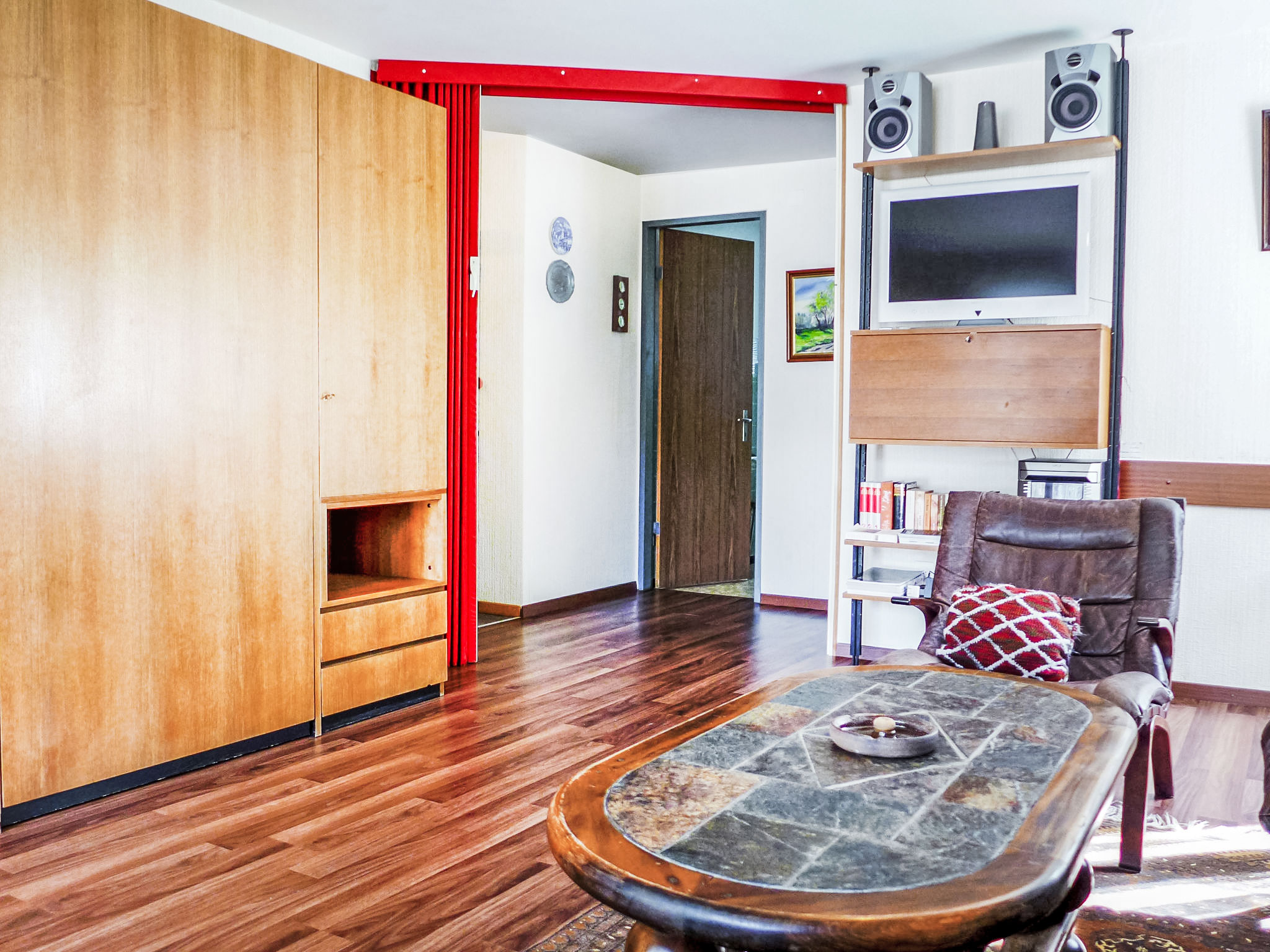 2-Zimmer-Wohnung 70 m2, im Erdgeschoss. Teilweise renoviert im Jahre 2015, einfach und gemütlich eingerichtet: Wohnzimmer mit TV und Radio. Ausgang zur Terrasse. 1 Doppelzimmer mit 1 Doppelbett (2 x 90 cm, Länge 210 cm). Küche (3 Kochplatten, Backofen, Toaster, Wasserkocher, Mikrowelle, Tiefkühler, elektrische Kaffeemaschine, Racletteofen, Fondue Set (Chinoise, Käse)) mit Esstisch. Bad/WC. Terrasse 10 m2. Terrassenmöbel. Schöne Sicht auf Matterhorn. Zur Verfügung: Haartrockner. Internet (Wireless LAN, gratis). Bitte beachten: Nichtraucher-Unterkunft.