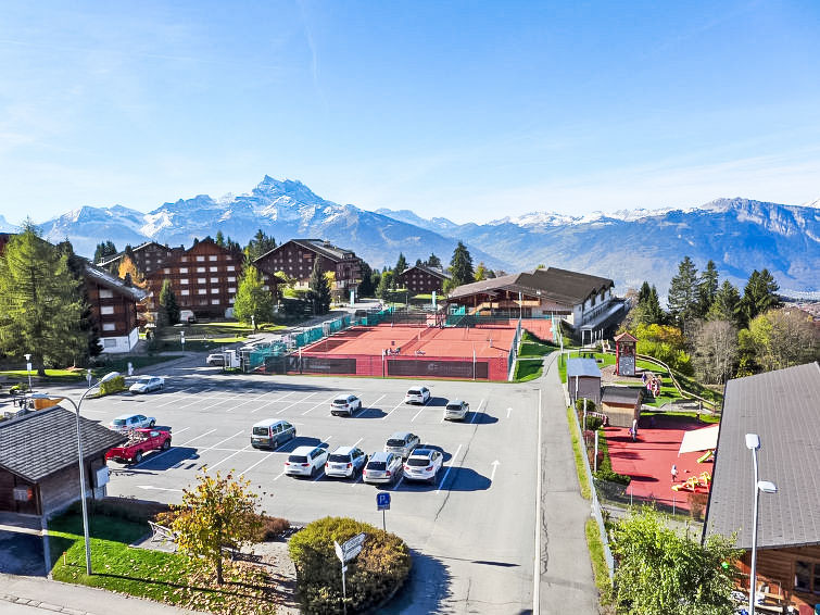 "La Haute Cîme 16", 4-Zimmer-Attikawohnung 80 m2, Südlage. Teilweise abgeschrägt, teilweise renoviert im Jahre 2015, komfortabel eingerichtet: grosses Wohn-/Esszimmer mit offenem Kamin und TV (Flachbildschirm). Ausgang zum Balkon. 1 abgeschrägtes Zimmer mit 1 Bett (160 cm, Länge 200 cm). 2 Zimmer, jedes Zimmer mit 2 Betten (90 cm). Offene Küche (Backofen, Geschirrspüler, 4 Glaskeramikplatten, Toaster, Wasserkocher, Mikrowelle, Tiefkühler, Racletteofen, Fondue Set (Käse)) mit kleiner Bar. Bad/Bidet/WC, Dusche. Parkettboden. Grosser Balkon 14 m2, Südlage. Terrassenmöbel. Sehr schöne Panoramasicht auf die Berge und das Tal. Zur Verfügung: Haartrockner. Internet (Wireless LAN, gratis). Garage Nr. Apt 16.