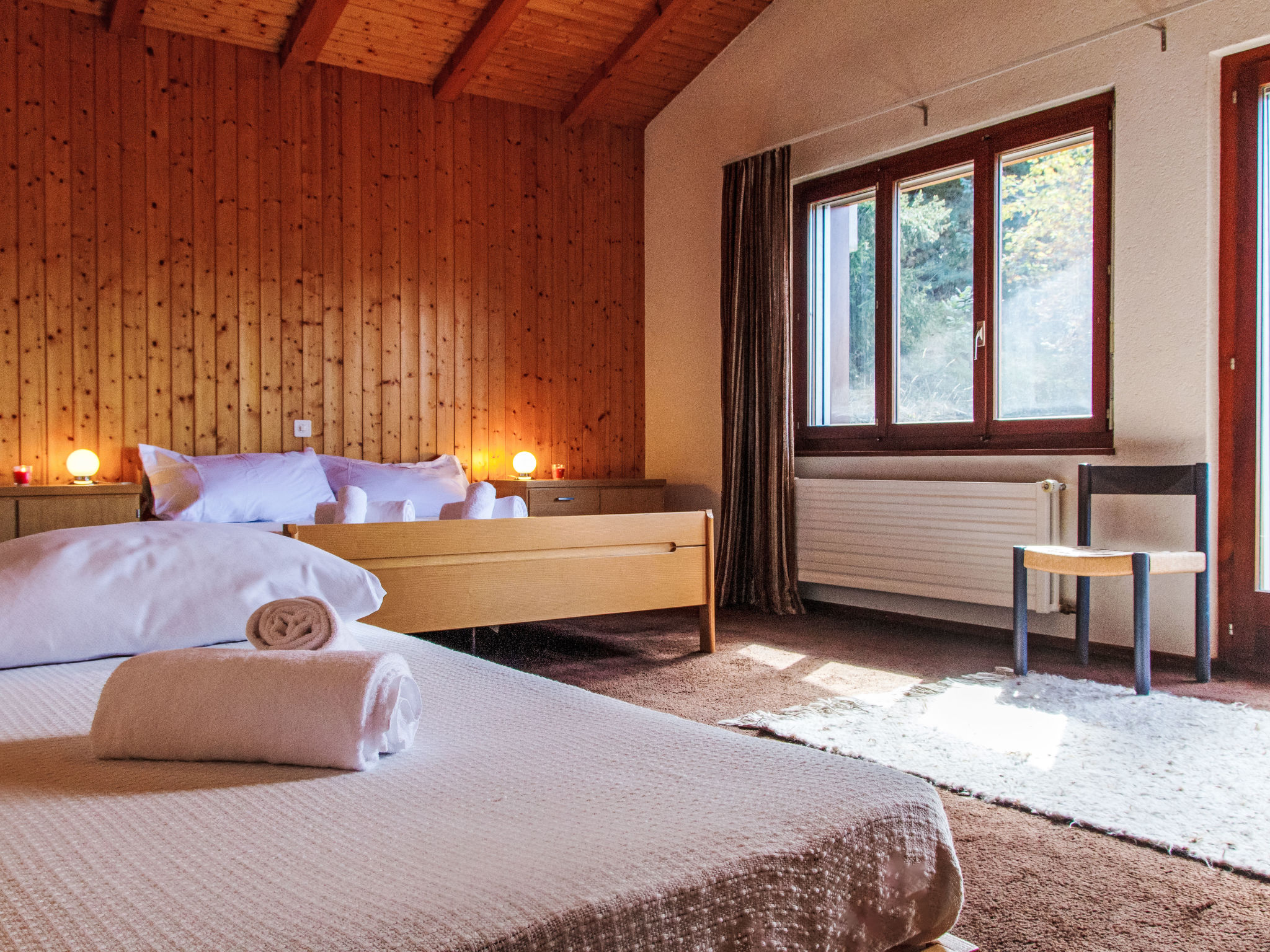 "Weber 2", 3-Zimmer-Wohnung 190 m2 im 5. Stock. Geräumig, einfach eingerichtet: grosses Wohn-/Esszimmer mit offenem Kamin und Kabel-TV. Ausgang zum Balkon. 1 grosses Zimmer mit 2 Betten (90 cm, Länge 200 cm), 1 Schlafmöglichkeit (90 cm, Länge 190 cm). Ausgang zum Balkon, Richtung Süden und Richtung Osten. 1 Zimmer mit 1 Bett (90 cm, Länge 190 cm), 1 Doppelbett (2 x 90 cm, Länge 190 cm), Bad/Dusche/WC. Ausgang zum Balkon, Richtung Süden und Richtung Westen. Küche (4 Kochplatten, Backofen, Geschirrspüler, Toaster, Wasserkocher, elektrische Kaffeemaschine, Racletteofen, Fondue Set (Chinoise, Käse)). Dusche/WC. Balkon, Ostlage und Westlage. Schöne Sicht auf das Tal. Zur Verfügung: Internet (WLAN, gratis). Garage (2 Autos). Bitte beachten: Nichtraucher-Unterkunft. Maximal 1 Haustier/Hund erlaubt.