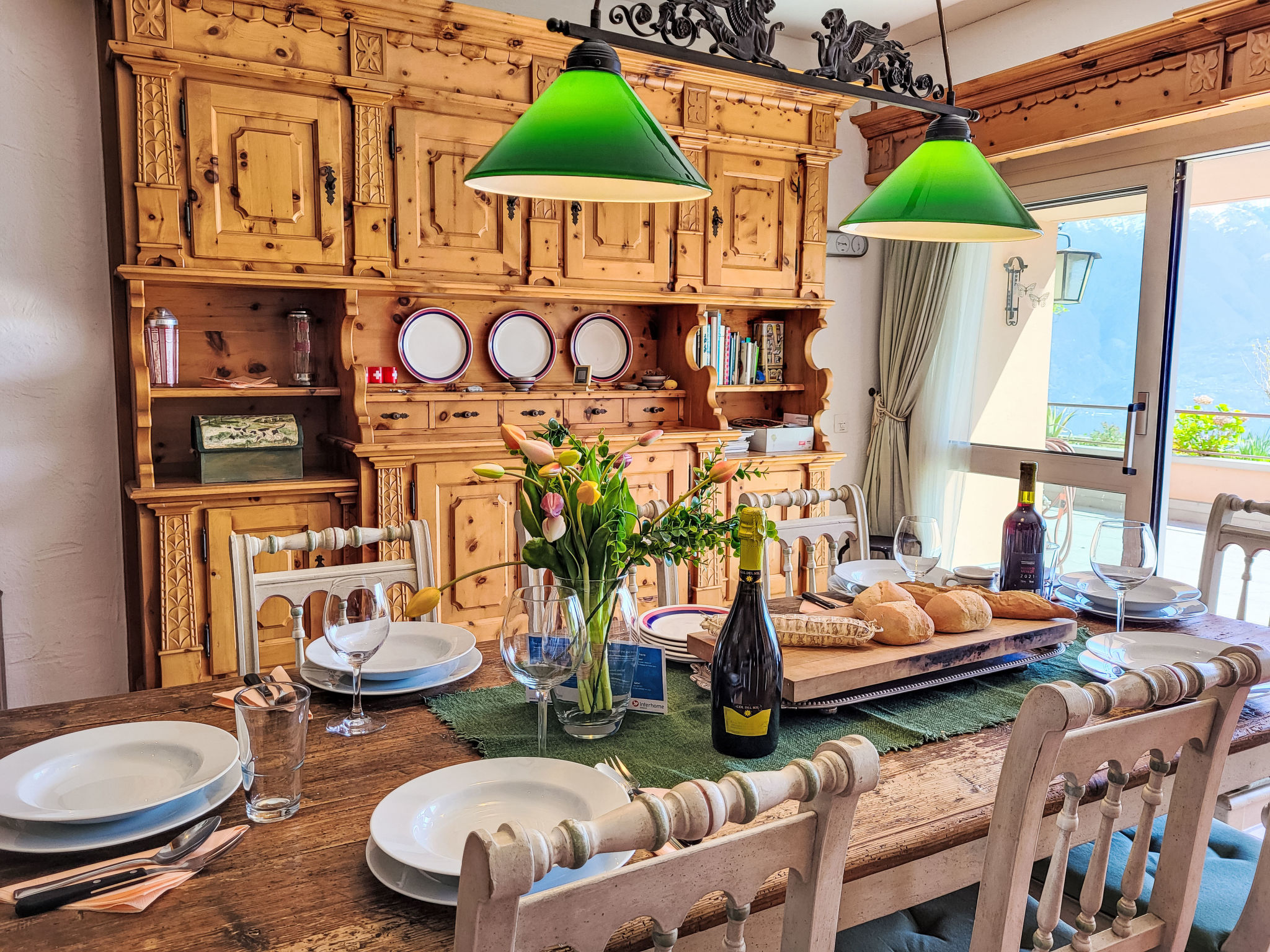 "Terrazzo Prato Pernice Apt.12", 4-Zimmer-Maisonette-Wohnung 180 m2, Südostlage. Geräumig und hell, gemütlich und mit viel Holz eingerichtet: grosses Wohn-/Esszimmer. Ausgang zur Terrasse. 1 Doppelzimmer mit 2 Betten (90 cm, Länge 200 cm), TV. Ausgang zur Terrasse. Offene Küche (Backofen, Geschirrspüler, 4 Glaskeramikplatten, Toaster, Wasserkocher, elektrische Kaffeemaschine, Kapseln für die Kaffeemaschine (Nespresso) extra, Racletteofen, Fondue Set (Chinoise)). Bad/Dusche/WC, Doppelwaschbecken. Obergeschoss: grosses Wohnzimmer mit Schwedenofen (nur Deko), Internationale TV-Sender und Flachbildschirm. Ausgang zur Terrasse. 1 Doppelzimmer mit 2 Betten (90 cm, Länge 200 cm). Ausgang zur Terrasse. Sep. WC. Natursteinboden. Grosse Terrasse 30 m2. Terrassenmöbel, Gartengrill, Liegestühle (2), Sitzplatz. Herrliche Panoramasicht auf den See, die Berge, die Landschaft und die Ortschaft. Zur Verfügung: Waschmaschine, Wäschetrockner, Babybett bis 2 Jahre, Haartrockner. Internet (WLAN, gratis). Bitte beachten: für Kleinkinder nicht geeignet. Nichtraucher-Unterkunft. Maximal 1 Haustier/Hund erlaubt. Jede Etage verfügt über eine grosse Terrasse von 30m2. Im OG ein Zimmer mit Einzelbetten zusätzlich buchbar. NL-00011123