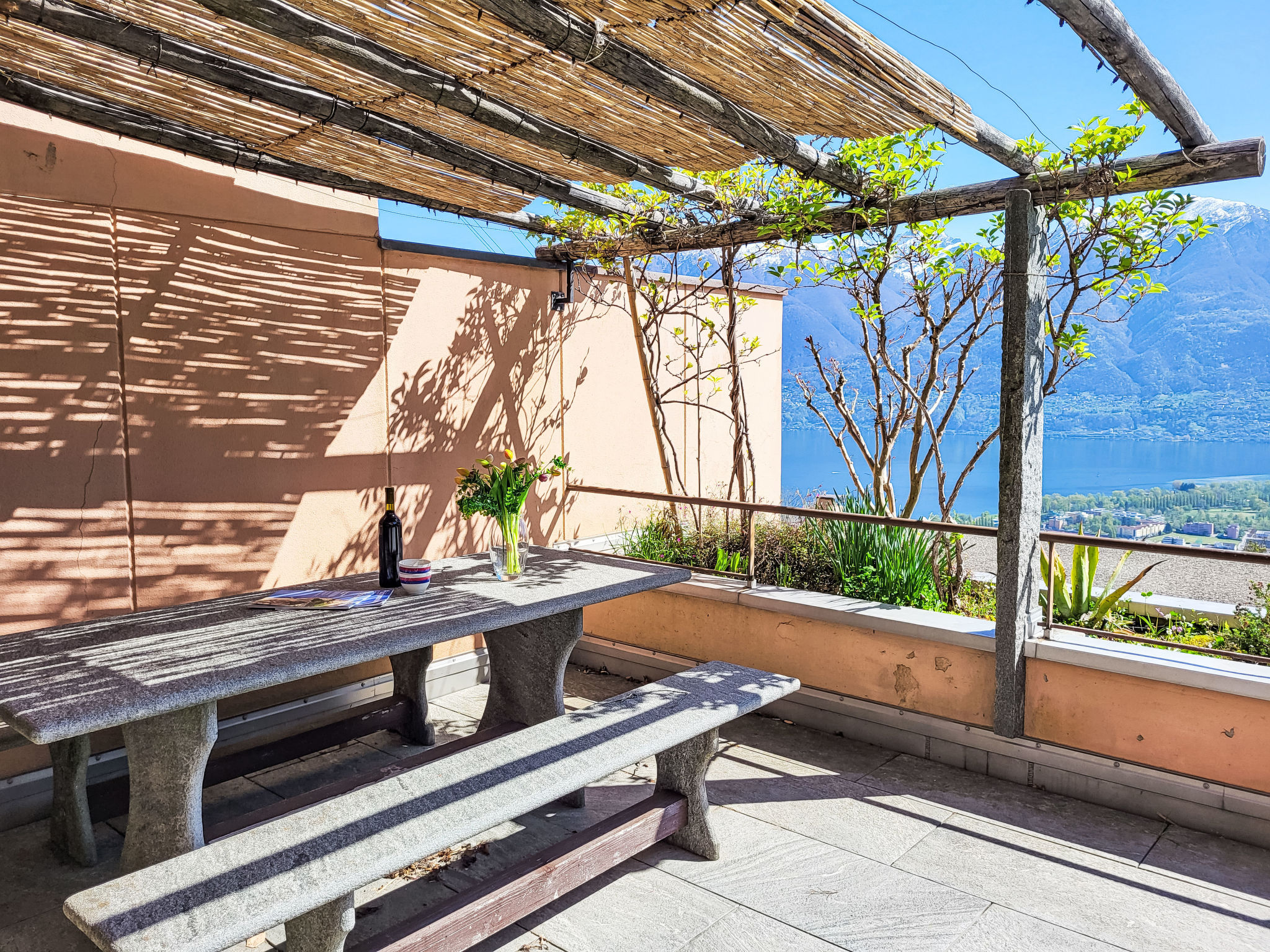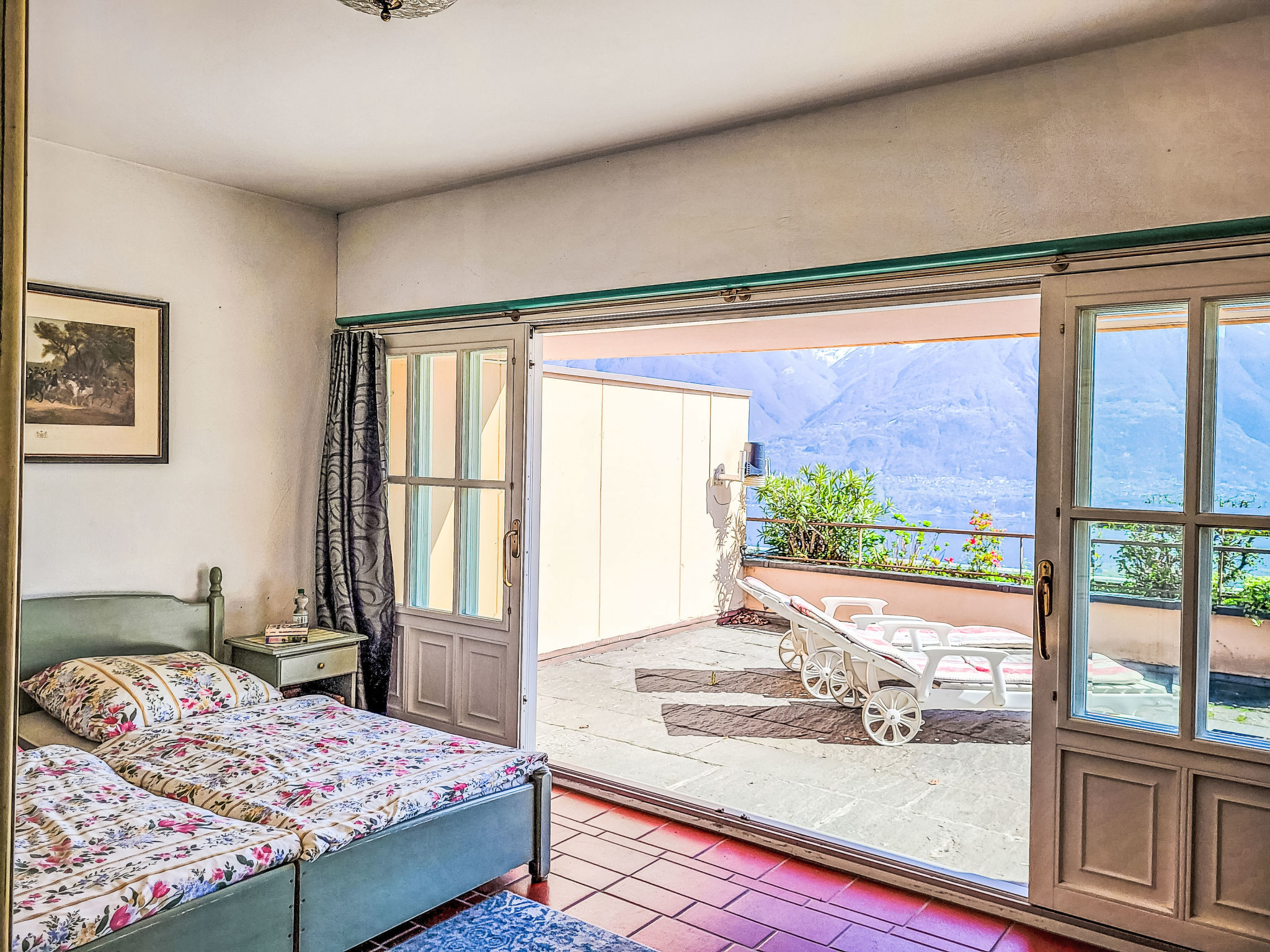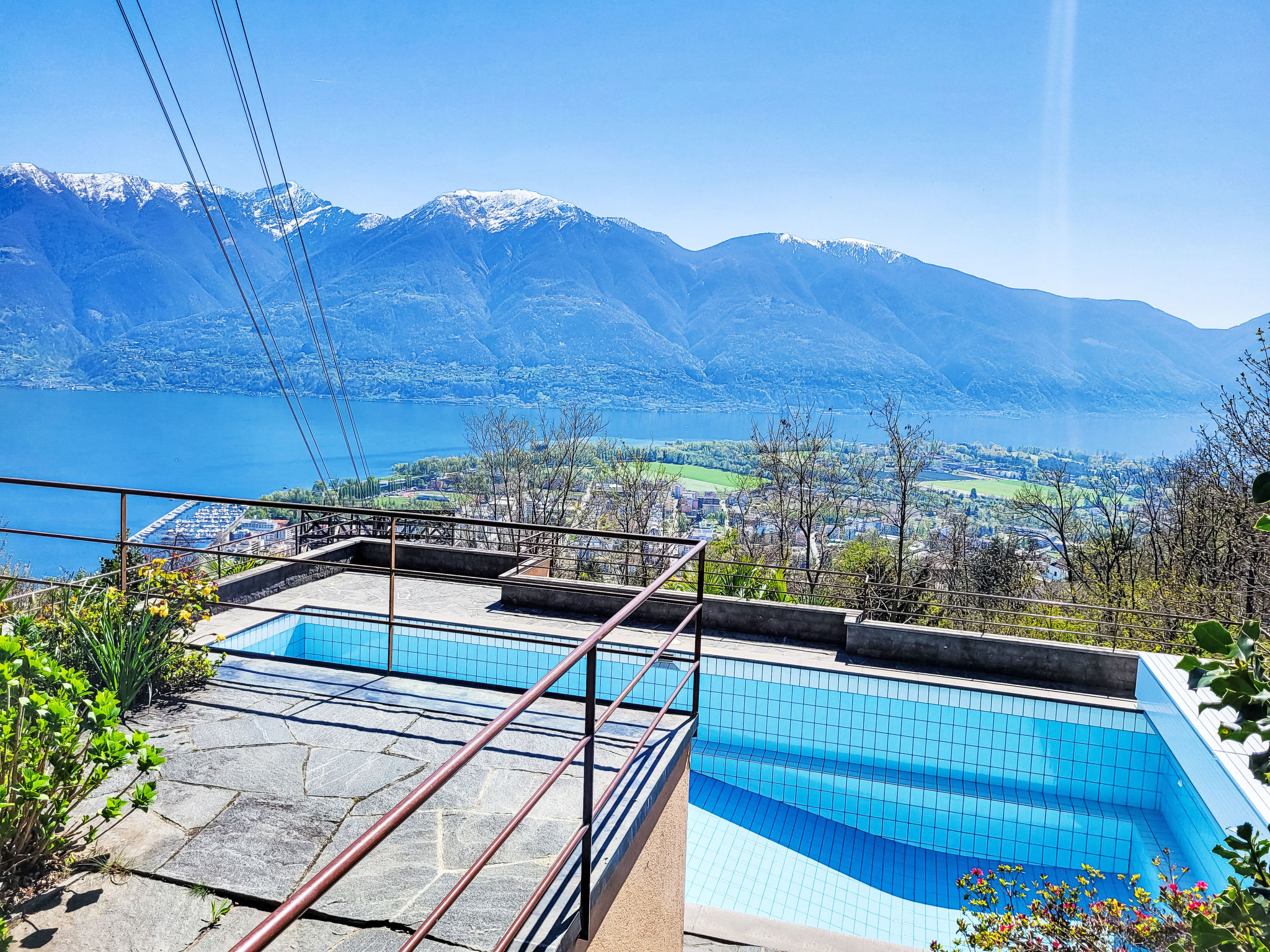 Orselina 2 km von Locarno: Schönes Terrassenhaus "Terrazzo Prato Pernice", auf 4 Stockwerken, umgeben von Bäumen und Feldern. Oberhalb von Orselina, in einem Weiler, ruhige, sonnige Lage, 50 m vom Waldrand, 3 km vom See, im Grünen, Richtung Süden. Zur Mitbenutzung: Schwimmbad eckig (10 x 20 m, saisonale Verfügbarkeit: 01.Mai. - 25.Okt.) mit Innentreppe und Rollladenabdeckung. Im Hause: Einstellraum für Fahrräder, Zentralheizung. Zufahrt bis zum Haus. Treppenweg (20 Stufen) bis zum Haus. Parkplatz Nr. 09/12 (für 2 Autos, überdacht) beim Haus. Lebensmittelgeschäft 300 m, Supermarkt 2 km, Restaurant, Bäckerei 300 m, Straßenbahn "Madonna del Sasso (Li.2620" 500 m, Bushaltestelle "Orselina Albergo (Li.3)" 500 m, Bahnstation "Seilbahn Cardada-Cimetta" 700 m, Thermalbad "Termali & Salini, Locarno" 3 km. Jacht-Hafen 3 km, Golfplatz (18 Loch) 5 km, Segelschule 3 km, Tennishalle 3 km, Minigolf 3 km, Wanderwege ab Haus 50 m, Luftseilbahn 600 m, Sessellift 3 km. Nahe gelegene Sehenswürdigkeiten: Madonana del Sasso, Orselina, Isole di Brissago, Falconeria, Kamelienpark, Piazza Grande, Monte Verità. Bekannte Seen in der Umgebung sind gut erreichbar: Lago Maggiore, Lago di Sambuco. Wandergebiete: Cardada Cimetta, Vallemaggia - Valle Verzasca, Bré sopra Locarno. Objekt geeignet für 4 Erwachsene + 2 Kinder. Der Besitzer akzeptiert keine Jugendgruppen.