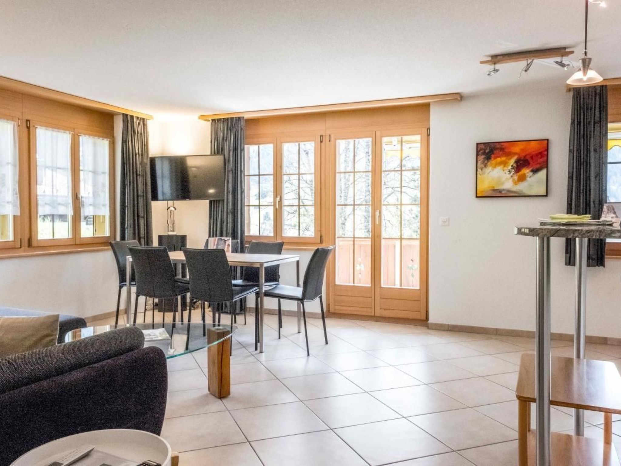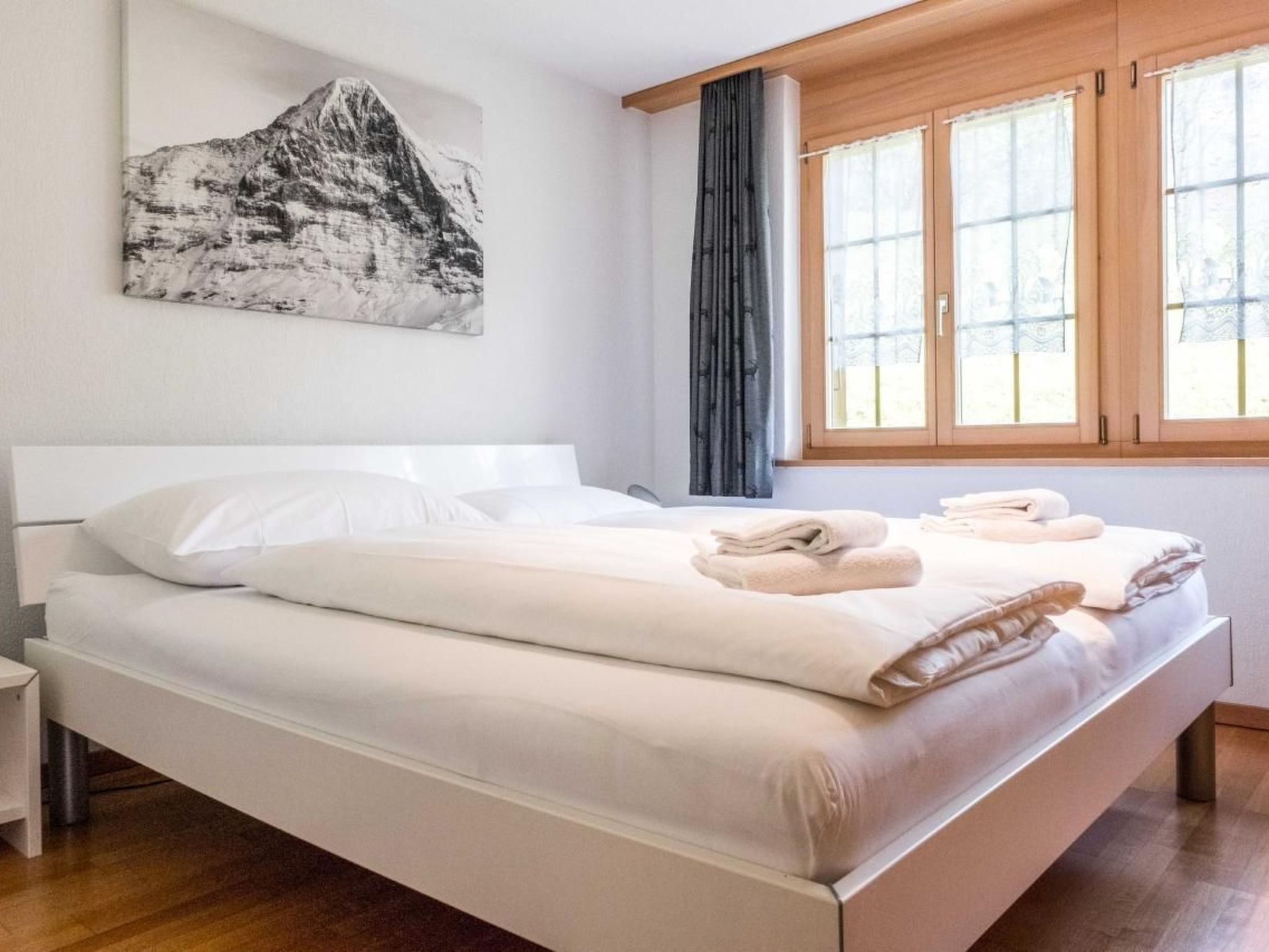 Die gemütliche und mit 62m2 geräumige 2.5-Zimmerwohnung im Obergeschoss des Chalets verfügt über ein Schlafzimmer mit Doppelbett und ein Badezimmer mit Badewanne und WC. Die gut ausgestattete Küche mit Bar öffnet sich gegen einen grosszügigen Wohn- und Essbereich. Auf dem Süd-Balkon geniessen Sie die Aussicht auf die Grindelwalder Bergwelt.