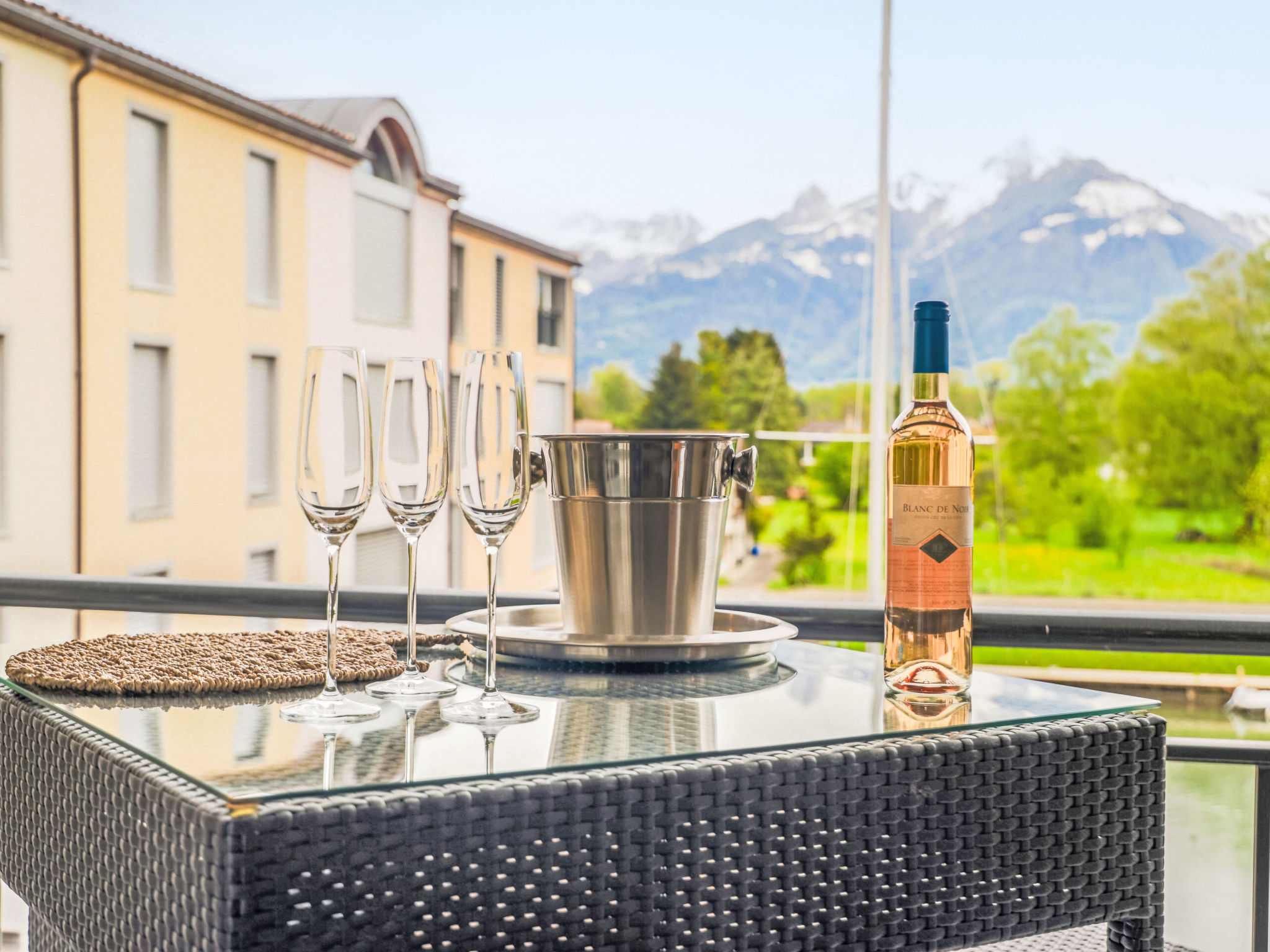 Grosse Ferienanlage "Residenz Marina". Am Ortsrand, 300 m vom Zentrum von Le Bouveret, ruhige, sonnige Lage, 200 m vom See, 50 m vom Kanal. Im Hause: Zentralheizung. Einkaufsgeschäft, Lebensmittelgeschäft 800 m, Restaurant, Bäckerei 500 m, Fahrradverleih 190 m, Bushaltestelle "Bouveret village" 1.2 km, Bahnstation "Le Bouveret" 300 m, Kieselstrand 200 m, Freibad 300 m, Hallenbad 7.2 km, Thermalbad 30 km, Strandbad 300 m, Badesee "Léman" 300 m. Sporthafen 200 m, Golfplatz (18 Loch) 15 km, Surfschule 200 m, Tennis, Minigolf 12 km, Wanderwege ab Haus 300 m, Bergeisenbahn 15 km, Skipisten 18 km, Skischule 18 km, Kinderskischule 35 km, Schlittelbahn 29 km, Langlaufloipe 35 km, Eisfeld 18 km. Nahe gelegene Sehenswürdigkeiten: Parc Aventure 17 km, Château Chillon / Fort de Chillon, Swiss Vapeur Parc 100 m, Aqua Parc 500 m. Bekannte Skigebiete sind gut erreichbar: Les Portes du Soleil 18 km, Villars 35 km, Leysin 31 km. Bekannte Seen in der Umgebung sind gut erreichbar: Lac Léman. Wandergebiete: Portes du Soleil. Die Schlüsselübergabe findet bei der Agentur Interhome in Bouveret statt. Die Nachbarschaft ist sehr lärmempfindlich. Ruhe und gutes Benehmen wird erwartet.