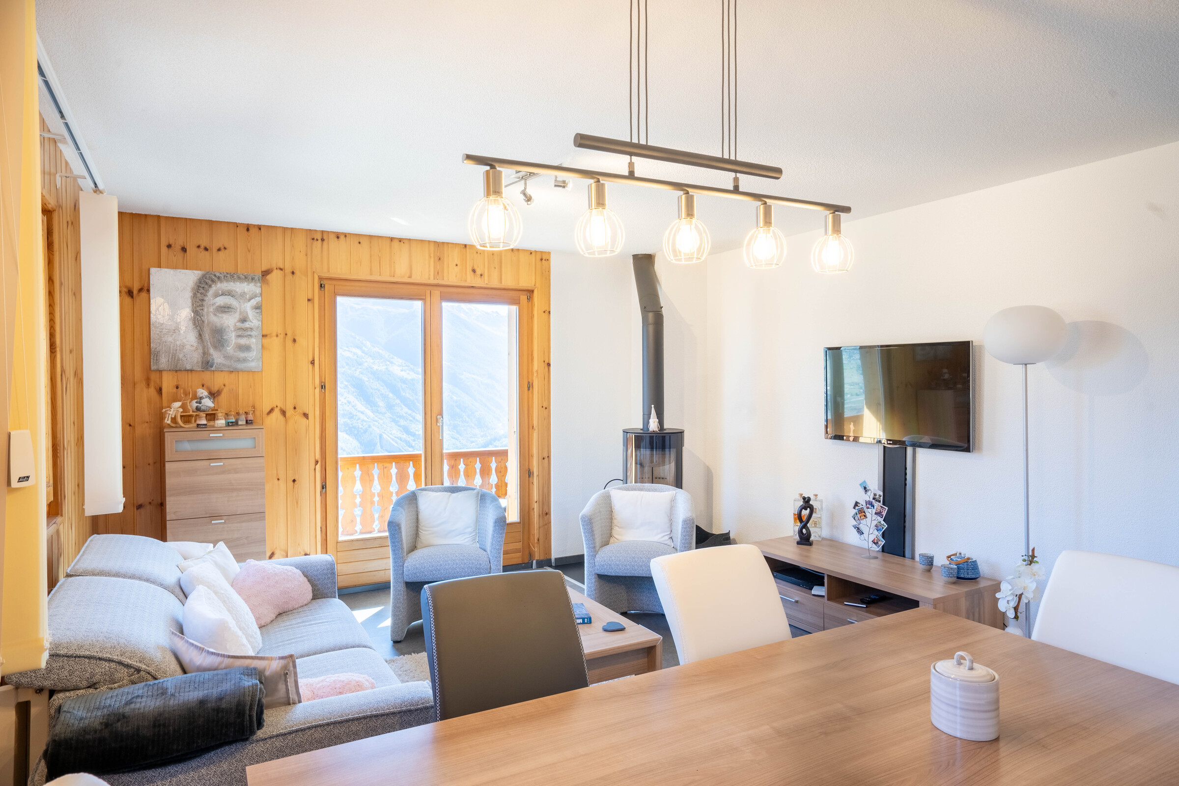 Die Wohnung befindet sich 100 Meter vom Beginn des Sessellifts Masses entfernt, der das Skigebiet "Thyon les Collons / 4 Vallées" verbindet. Sie werden auch ein aussergewöhnliches Panorama auf die Berge des Val d'Hérens, die Dent-Blanche und das Matterhorn geniessen.