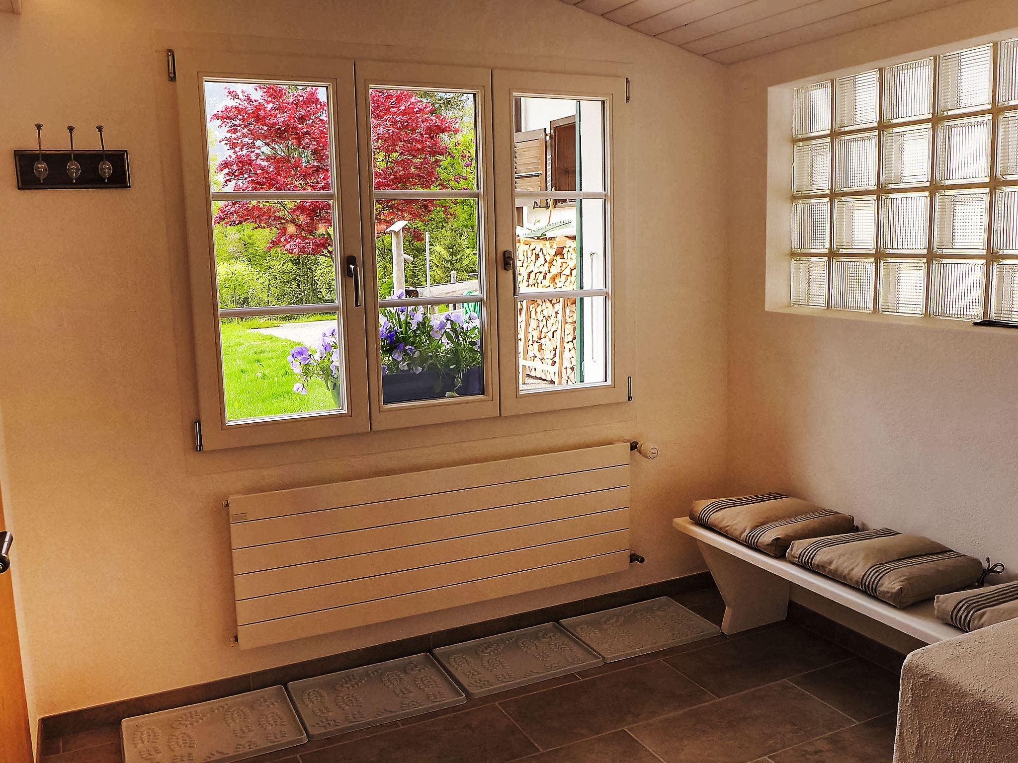 2-Zimmer-Wohnung 50 m2, im Erdgeschoss, Südlage. Vollständig renoviert im Jahre 2014, schön und geschmackvoll eingerichtet: Wohnzimmer, Deckenhöhe 204 cm mit Kabel-TV (Flachbildschirm), Radio. 1 Zimmer, Deckenhöhe 204 cm mit 1 Doppelbett (2 x 90 cm, Länge 200 cm). Ausgang zur Terrasse, Richtung Süden. Wohnküche (Backofen, Geschirrspüler, 4 Glaskeramikplatten, Mikrowelle, elektrische Kaffeemaschine, Kapseln für die Kaffeemaschine (Nespresso) extra, Racletteofen, Fondue Set (Käse)), Deckenhöhe 187 cm. Ausgang zur Terrasse, Richtung Süden. Bad/WC. Bodenheizung. Parkettboden, Natursteinboden. Grosse Terrasse, Südlage. Terrassenmöbel, Gartengrill, Liegestühle (2). Herrliche Sicht auf die Berge und Eigernordwand. Zur Verfügung: Waschmaschine, Haartrockner. Internet (Wireless LAN, gratis). Parkplatz beim Haus. Bitte beachten: Nichtraucher-Unterkunft. Feuerlöscher.