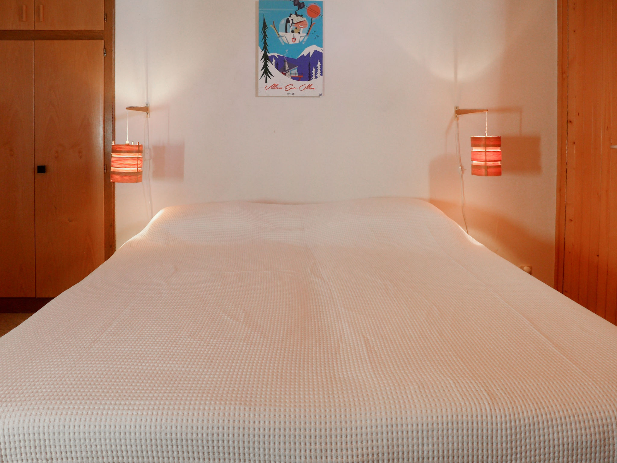 "Montagnards 17", 4-Zimmer-Wohnung 80 m2 im 3. Stock, Südostlage. Zweckmässig eingerichtet: Wohn-/Esszimmer mit Esstisch und TV (Flachbildschirm), DVD. Ausgang zum Balkon, Richtung Osten. 1 Zimmer mit 2 Betten (90 cm, Länge 200 cm). 1 Zimmer mit 2 Betten (90 cm, Länge 200 cm). 1 Doppelzimmer, ohne Schrank mit 1 franz. Bett (2 x 90 cm). Kleine Küche (Backofen, Geschirrspüler, 4 Glaskeramikplatten, Toaster, Wasserkocher, Mikrowelle, Tiefkühler, elektrische Kaffeemaschine, Kapseln für die Kaffeemaschine (Nespresso), Racletteofen, Fondue Set (Käse)). Bad/WC. Balkon, Ostlage. Schöne Sicht. Zur Verfügung: Waschmaschine, Wäschetrockner, Haartrockner. Internet (WLAN, gratis). Maximal 1 Haustier/Hund erlaubt.