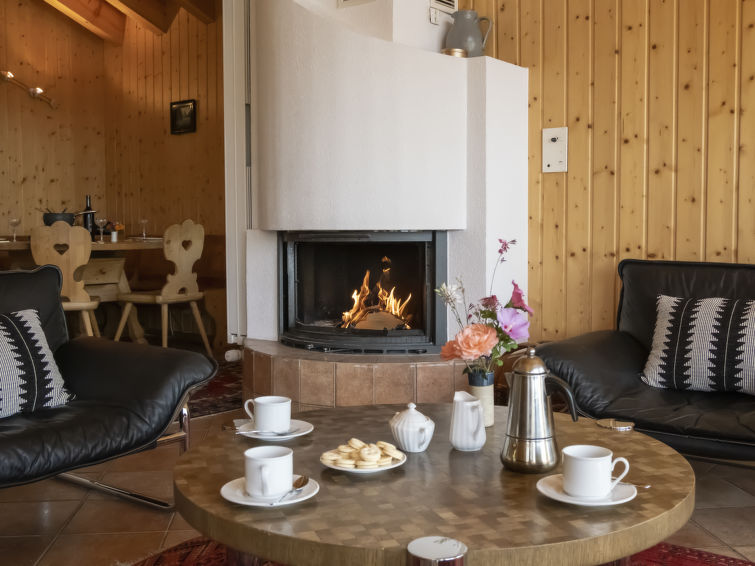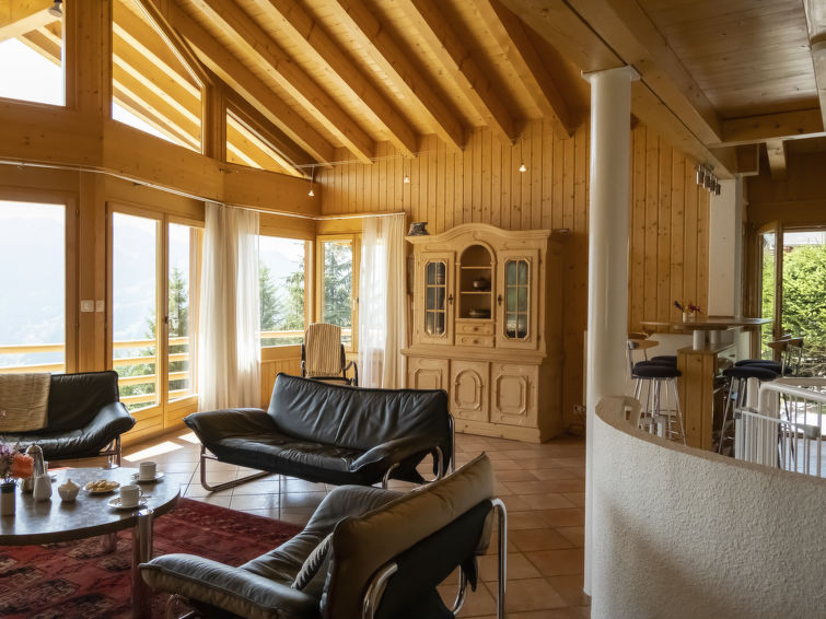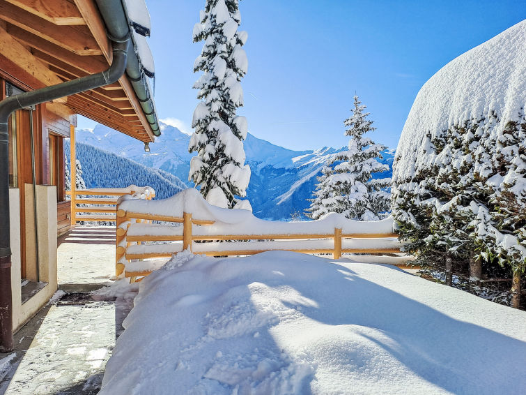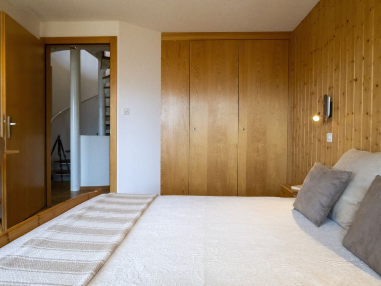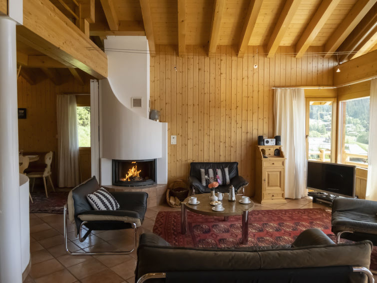 "Midat soleil", 4-Zimmer-Haus 130 m2 auf 2 Stockwerken. Komfortabel und gemütlich eingerichtet: grosses Wohn-/Esszimmer mit offenem Kamin und Kabel-TV. Ausgang zum Balkon, zur Terrasse. Grosse, offene Küche (Backofen, Geschirrspüler, 4 Induktionskochplatten, Mikrowelle, elektrische Kaffeemaschine). Sep. WC. Unteres Geschoss: 1 grosses Zimmer mit 1 franz. Bett (1 x 180 cm, Länge 200 cm), Bad und Kabel-TV. Ausgang zum Balkon. 1 grosses Zimmer mit 1 franz. Bett (1 x 160 cm, Länge 200 cm). Ausgang zum Balkon. 1 grosses Zimmer mit 2 Betten (90 cm, Länge 200 cm). 2 Duschen/WC. Panoramasicht auf die Berge, das Tal und die Skipiste. Zur Verfügung: Kinderhochstuhl, Babybett. Internet (WLAN, gratis). Parkplatz, Garage. Bitte beachten: Nichtraucher-Haus. Maximal 1 Haustier/Hund erlaubt.