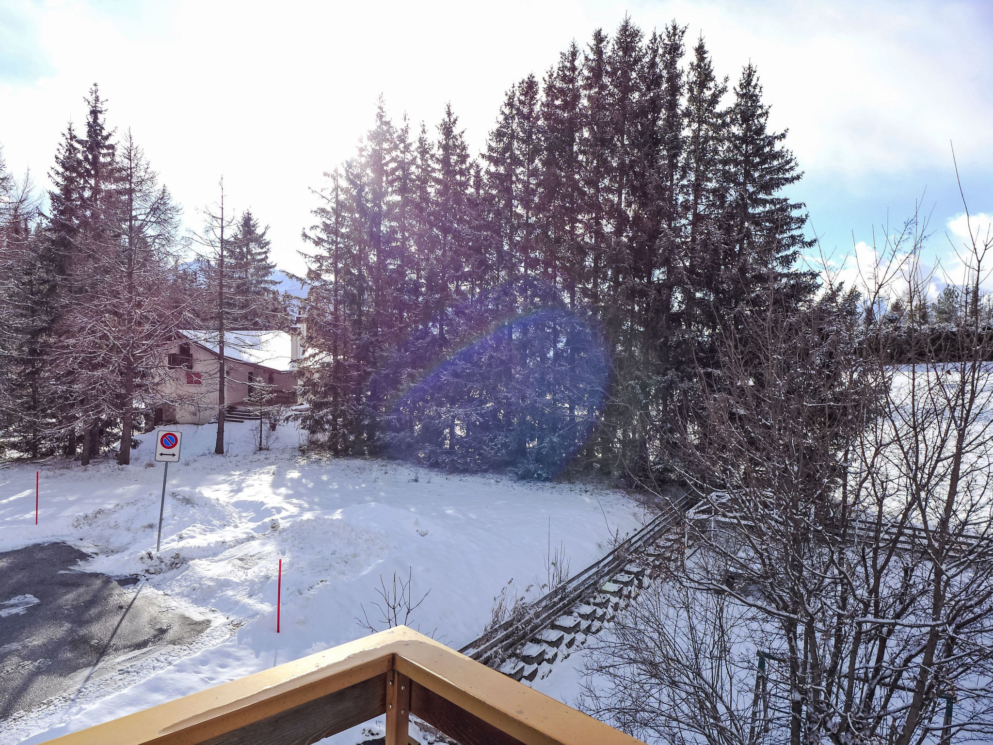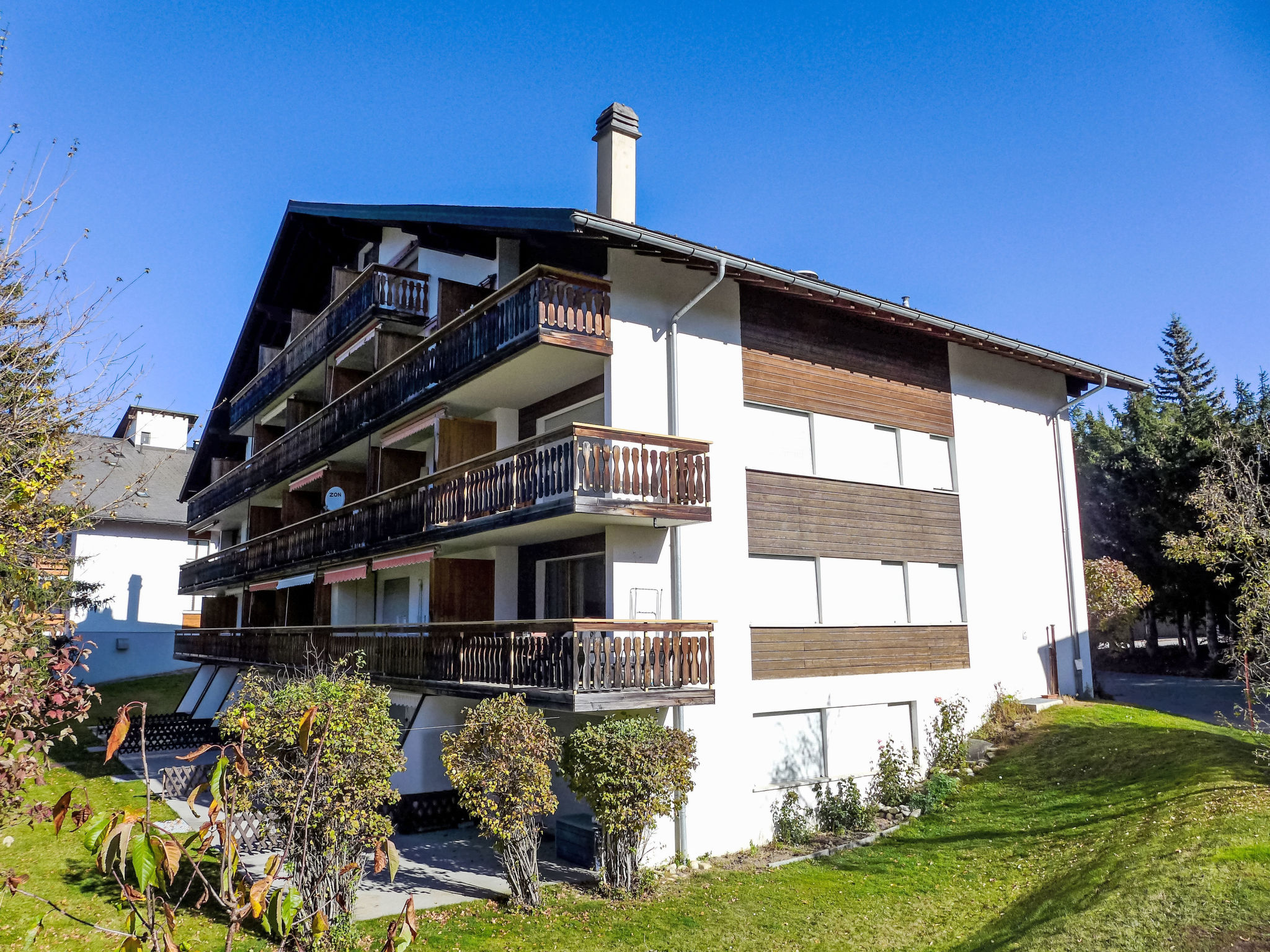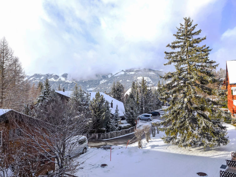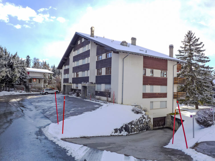 Residenz "La Verdure", umgeben von Bäumen. Unterhalb von Crans, im Ortsteil Route du Golf, ruhige, sonnige Lage, 1.8 km vom See, 2.7 km vom Skigebiet, in einer Sackgasse, im Grünen. Im Hause: Skiraum, Zentralheizung, Waschmaschine, Wäschetrockner (zur Mitbenutzung, extra), Trockenraum. Parkplatz (beschränkte Anzahl). Einkaufsgeschäft 2 km, Supermarkt 2.6 km, Restaurant 600 m, Bäckerei 2.8 km, Bushaltestelle "Crans-Montana, Maroz" 250 m, Bahnstation "Funiculaire Montana Gare" 4.1 km, Badesee "Moubra" 3.3 km. Golfplatz (18 Loch) 1.9 km, Tennis 3.3 km, Skisportanlagen 2.7 km, Schlittelbahn, Langlaufloipe 600 m, Eisfeld 3.3 km. Bekannte Seen in der Umgebung sind gut erreichbar: Lac Moubra 3.3 km, Lac Grenon 3 km, Etang Long 1.8 km. Bitte beachten: Gratis Skibus.