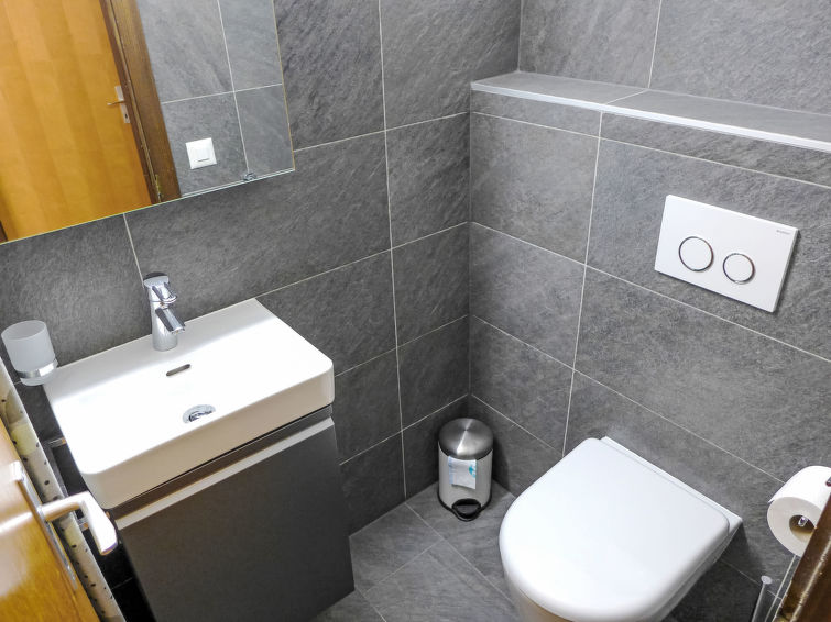 "La Verdure Est N°22", 3-Zimmer-Wohnung 70 m2 im 2. Stock, Südwestlage. Hell, renoviert im Jahre 2023, sehr schön und gemütlich eingerichtet: Wohn-/Esszimmer mit Kabel-TV und Flachbildschirm. Ausgang zum Balkon. 1 Zimmer mit 2 Betten (90 cm, Länge 200 cm). 1 Zimmer mit 1 Ausziehbett (2 Pers. 2 x 90 cm, Länge 200 cm). Küche (Backofen, Geschirrspüler, 4 Glaskeramikplatten, Toaster, Wasserkocher, elektrische Kaffeemaschine, Kapseln für die Kaffeemaschine (Nespresso) extra, Racletteofen, Fondue Set (Käse)). Sep. WC, Bad/Dusche/WC. Balkon 10 m2, Südwestlage. Balkonmöbel. Eingeschränkte Sicht auf die Berge und den Wald. Zur Verfügung: Bügeleisen, Kinderhochstuhl, Haartrockner. Internet (WLAN, gratis). Parkplatz Nr. 22. Bitte beachten: Nichtraucher-Unterkunft.