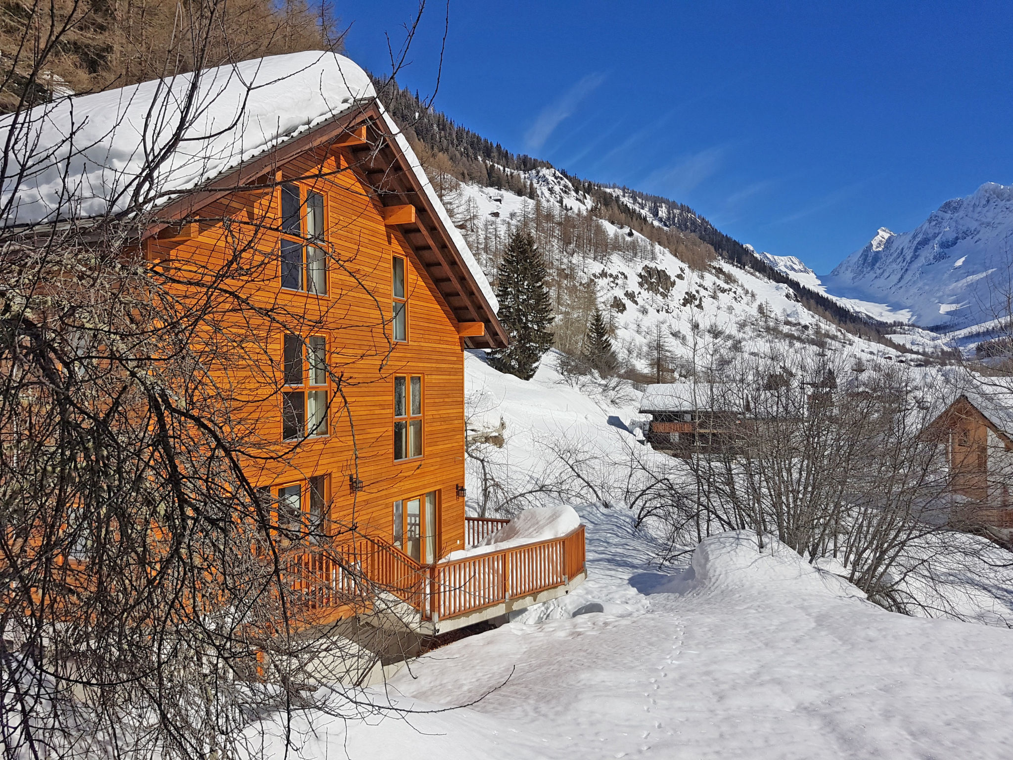Sehr schönes, gemütliches, komfortables Einfamilienhaus "Chalet Eden", 1'600 m.ü.M., auf 3 Stockwerken, Baujahr 2013, umgeben von Bäumen und Wiesen. Oberhalb von Blatten (Lötschen), ruhige, sonnige Lage am Hang, 4 km vom Skigebiet. Zur Alleinbenutzung: naturbelassenes Grundstück mit Liegewiese. Sitzplatz, Grill. Im Hause: Einstellraum für Fahrräder, Skiraum, Zentralheizung, Waschmaschine, Wäschetrockner. Schmale Zufahrt bis zum Grundstück. 20 m steiler Fussweg bis zum Haus. Öffentliche Parkplätze 500 m extra. Lebensmittelgeschäft, Supermarkt 18 km, Restaurant 800 m, Zentrum zu Fuss in 10 Minuten erreichbar, Bushaltestelle "Blatten (Lötschen), Dorf" 800 m, Bahnstation "Goppenstein" 9 km, Thermalbad "Brigerbad" 35 m. Wanderwege ab Haus 10 m, Luftseilbahn 4 km, Skilift 4 km, Skipisten 4 km, Skibushaltestelle 500 m, Skischule 4 km, Schlittelbahn 1 km, Langlaufloipe 500 m. Nahe gelegene Sehenswürdigkeiten: Stockalperschloss Brig, World Nature Forum Naters, Unterirdischer See St. Leonard. Bekannte Skigebiete sind gut erreichbar: Lauchernalp, Leukerbad. Wandergebiete: Lötschentaler Höhenweg, Gletscherpfad Langgletscher. Bitte beachten: Fahrzeug empfohlen. Be- und Entladen am Ferienhaus möglich.