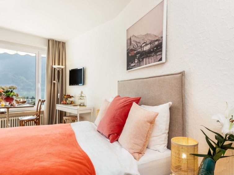 "Double Room Modern", 1-Zimmer-Wohnung 35 m2, Südlage. Renoviert: Wohn-/Esszimmer mit 1 Doppelbett (1 x 180 cm, Länge 200 cm), Sat-TV und Radio. Kochnische (Backofen, elektrische Kaffeemaschine, Kapseln für die Kaffeemaschine (Nespresso) extra). Bad/WC. Ölheizung. Balkon, Südlage. Herrliche Sicht auf den See, die Berge und die Ortschaft. Zur Verfügung: Internet (Wireless LAN, gratis). Bitte beachten: Nichtraucher-Unterkunft, Nichtraucher-Haus. Maximal 1 Haustier/Hund erlaubt. NL-00004960
