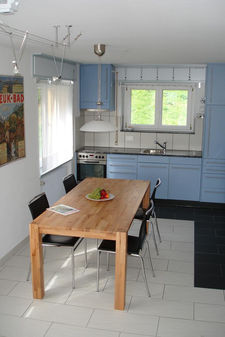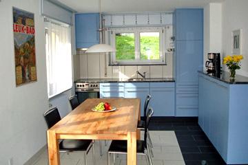 3-Zimmerwohnung: renoviert, oberste (3.) Etage, 2 Zweibettzimmer, Wohnzimmer, offene Küche mit Geschirrspüler, Bad/WC, Eingang, grosser Südbalkon, Radio, TV, DVD, gratis W-Lan. Garage inklusive. Nichtraucher Wohnung.