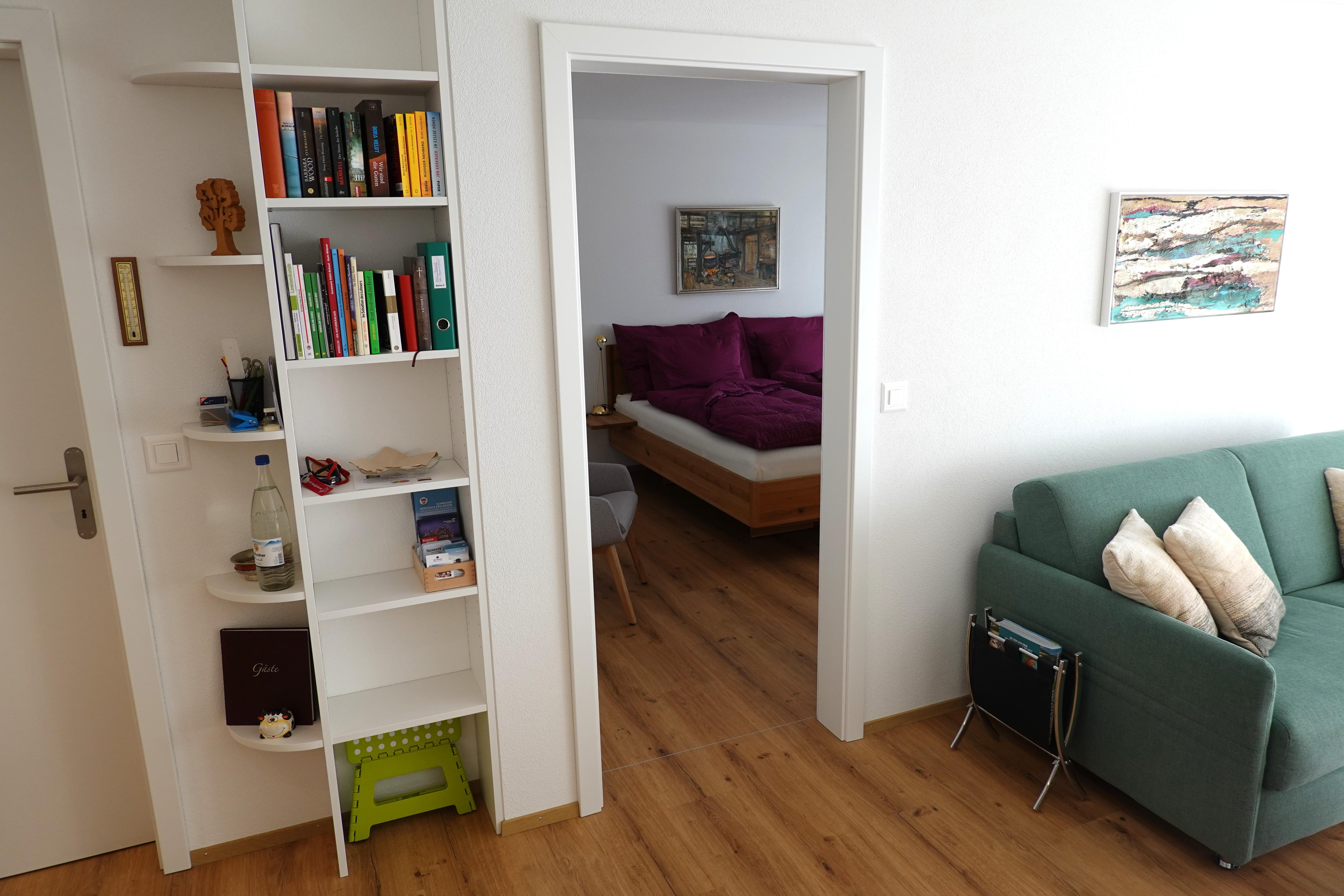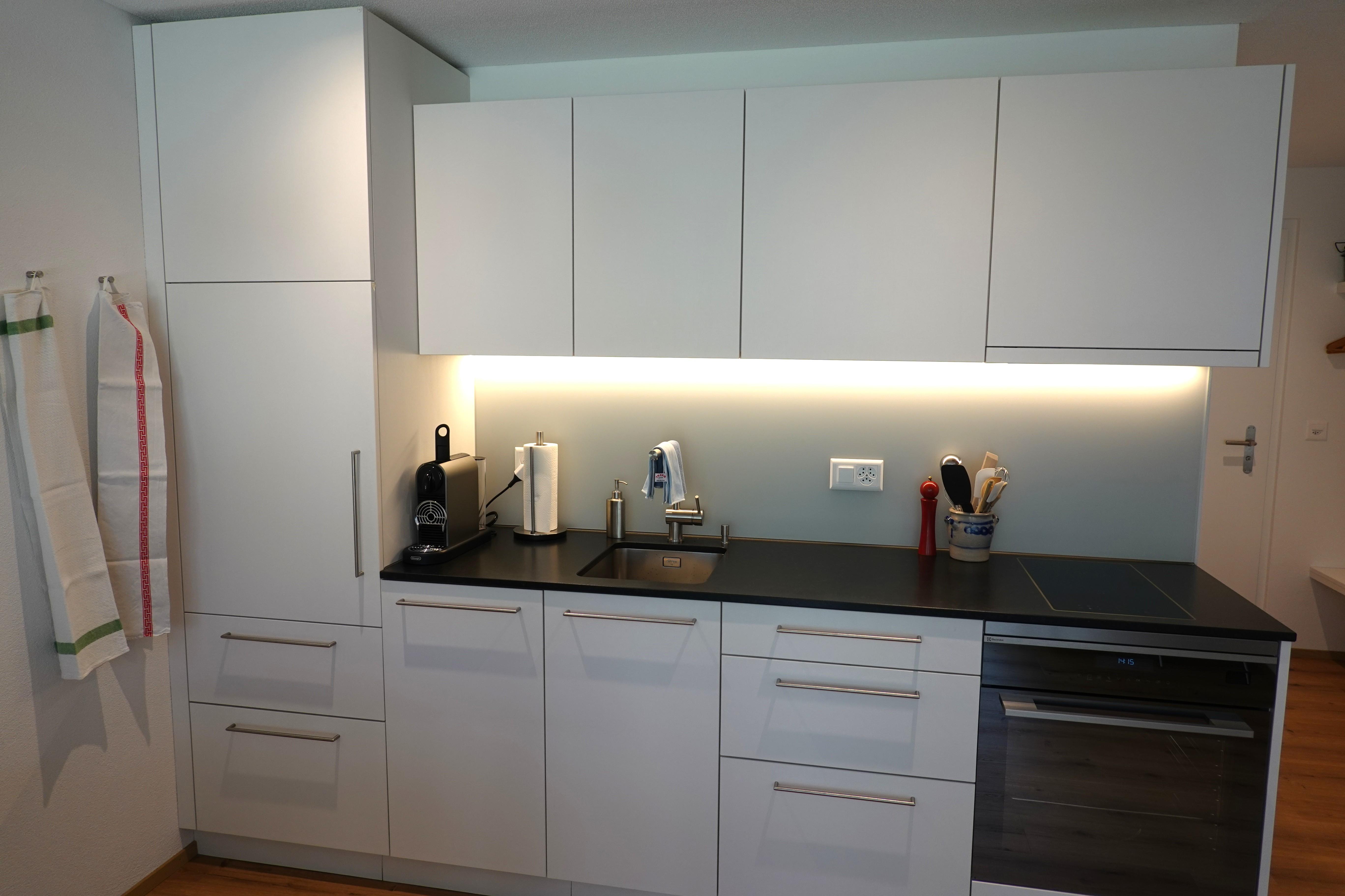 Die moderne Wohnung verfügt über Entrée mit Garderobe, Schlafzimmer, Wohnraum mit offener Küche, Badezimmer mit Dusche/WC und Bodenheizung. Mit dem Lift gelangen Sie zum eigenen Keller mit Waschmaschine/Tumbler und in die Garage zu Ihrem Auto-Einstellplatz. Ladestationen für E-Autos beim nahen LWA. Die Wohnung ist komfortabel, praktisch und zweckmässig eingerichtet und bietet 2 Personen bequem Platz. Im Schlafzimmer befindet sich ein Doppelbett (180x200), ein Bauernschrank sowie ein Sessel mit einer Stehleuchte. Bei Bedarf kann für eine weitere Person das Sofa im Wohnzimmer mit wenigen Handgriffen in ein bequemes Sofa-Bett (140x200) umgewandelt werden (siehe «Gut zu wissen»). Die Küchenzeile ist ausgestattet mit Kühlschrank/Gefrierfach, Glaskeramikkochfeld, Backofen/Steamer und Abwaschmaschine (auf Wunsch Mikrowelle). Auf der Terrasse befindet sich ein Gartentisch mit Stühlen, zwei Liegestühle, eine Gartenbox mit Kissen und ein Sonnenschirm.
