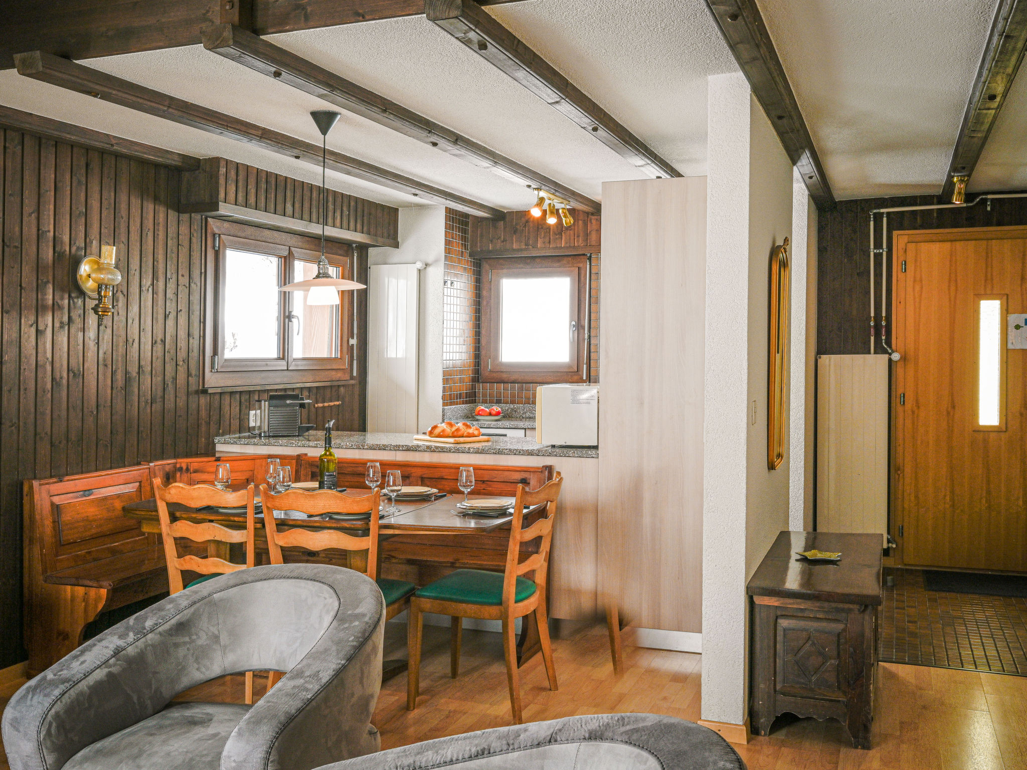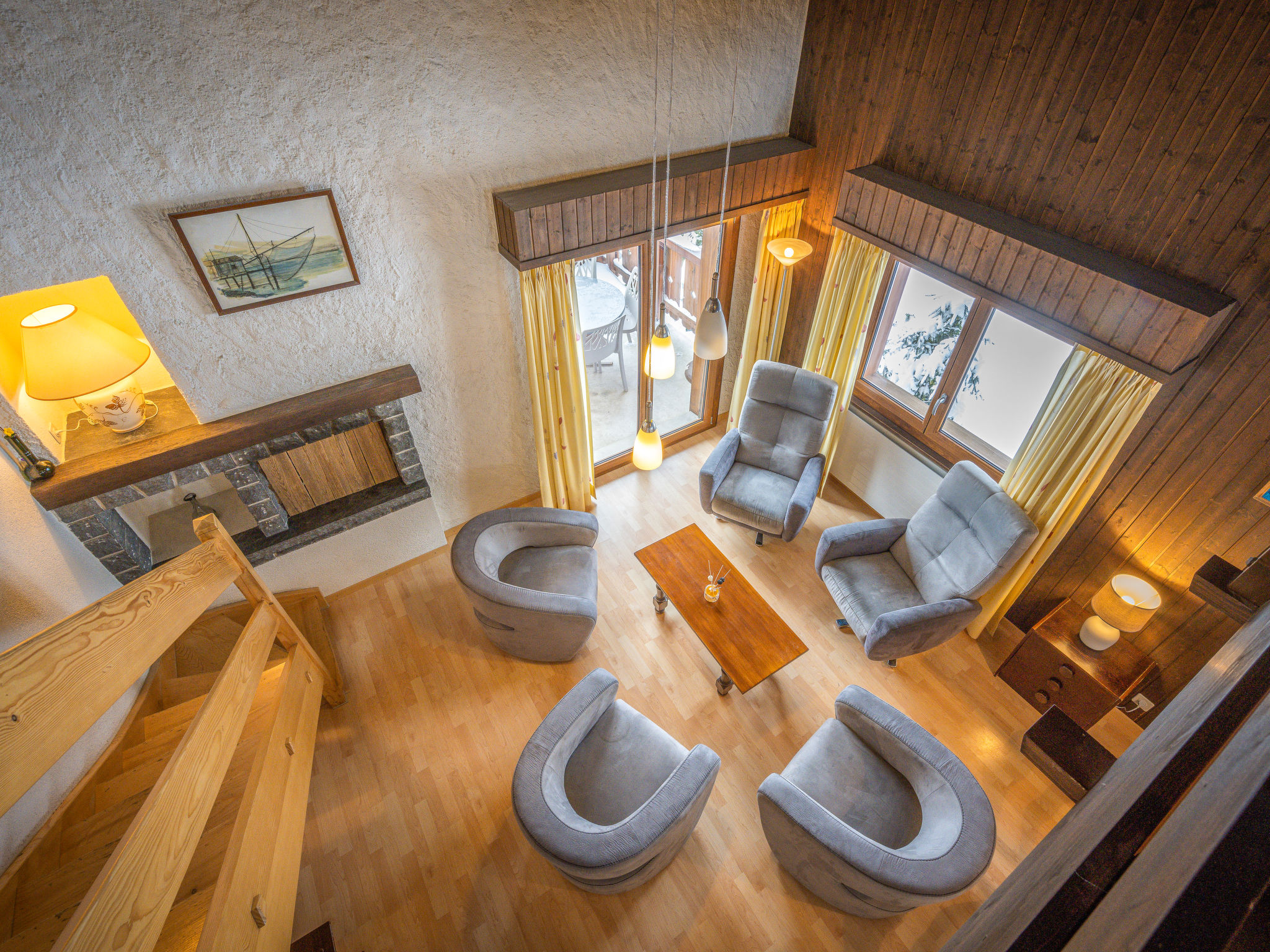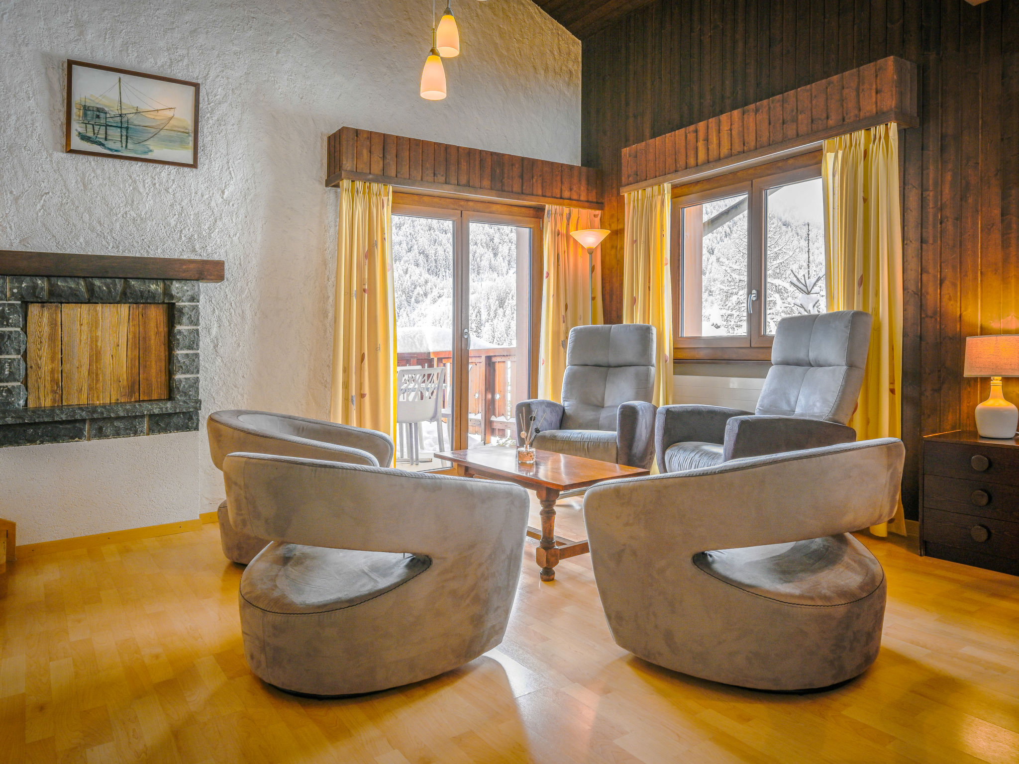 "Jorasse C 20", 4-Zimmer-Wohnung 98 m2 auf 2 Stockwerken im 2. Stock, Südwestlage. Komfortabel und geschmackvoll eingerichtet: Eingang. Wohn-/Esszimmer mit Kabel-TV, Flachbildschirm, Radio und CD. Ausgang zum Balkon, Richtung Südwesten. Offene Küche (Backofen, Geschirrspüler, 4 Glaskeramikplatten, Toaster, Wasserkocher, Mikrowelle, elektrische Kaffeemaschine, Kapseln für die Kaffeemaschine (Nespresso) extra, Racletteofen, Fondue Set (Chinoise, Käse)). Dusche/WC. Obergeschoss: 1 Zimmer mit 1 Doppelbett (2 x 90 cm, Länge 200 cm). Ausgang zum Balkon, Richtung Südwesten. 1 Zimmer mit 1 Doppelbett (2 x 90 cm, Länge 200 cm). 1 Zimmer mit 2 Betten (90 cm, Länge 190 cm). Galerie. Dusche/WC. Balkon 10 m2, Südwestlage, kleiner Balkon 3 m2, Südwestlage. Terrassenmöbel, Liegestühle (2). Zur Verfügung: Babybett bis 2 Jahre, Haartrockner. Internet (Wireless LAN, gratis). Parkplatz. Bitte beachten: Nichtraucher-Unterkunft. Maximal 1 Haustier/Hund erlaubt. Anstelle eines abgeschlossenen Schlafzimmers befinden sich manche Schlafplätze in einem offenen Bereich (Galerie, Nische etc.).