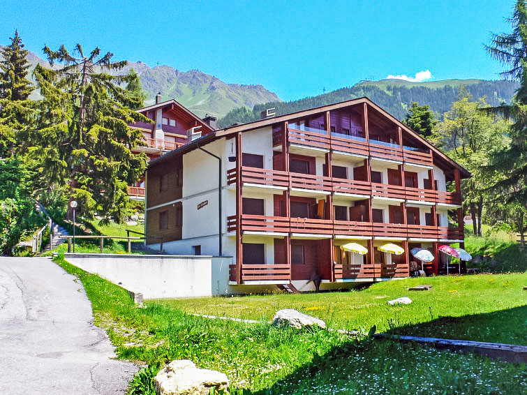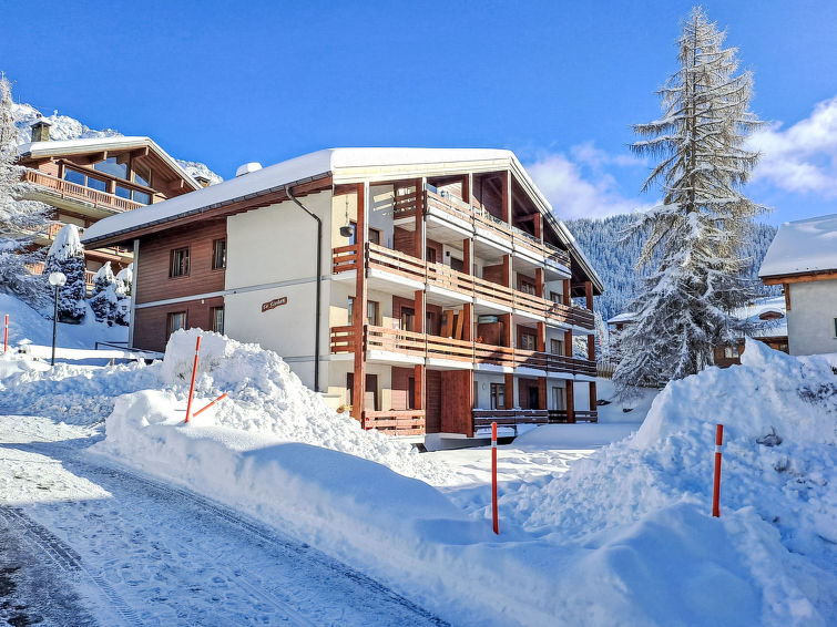 Verbier: Mehrfamilienhaus "Le Lichen". Im Ortszentrum von Verbier, ruhige, sonnige Lage, in einer Sackgasse, Richtung Süden. Im Hause: Skiraum, Zentralheizung. Zufahrt bis 20 m zum Haus. Öffentliche Parkplätze 900 m. Einkaufsgeschäft 150 m, Supermarkt 400 m, Restaurant 150 m, Bar, Bäckerei 70 m, Café, Bushaltestelle "L'Ermitage", Hallenbad 900 m. Golfplatz (18 Loch) 1.3 km, Reitstall 900 m, Sportzentrum, Skisportanlagen 500 m, Skibushaltestelle 150 m, Skischule 550 m, Ski-Kindergarten 500 m, Eisfeld 900 m, Kinderspielplatz 150 m. Der gratis Skibus fährt zum Skigebiet de Verbier.