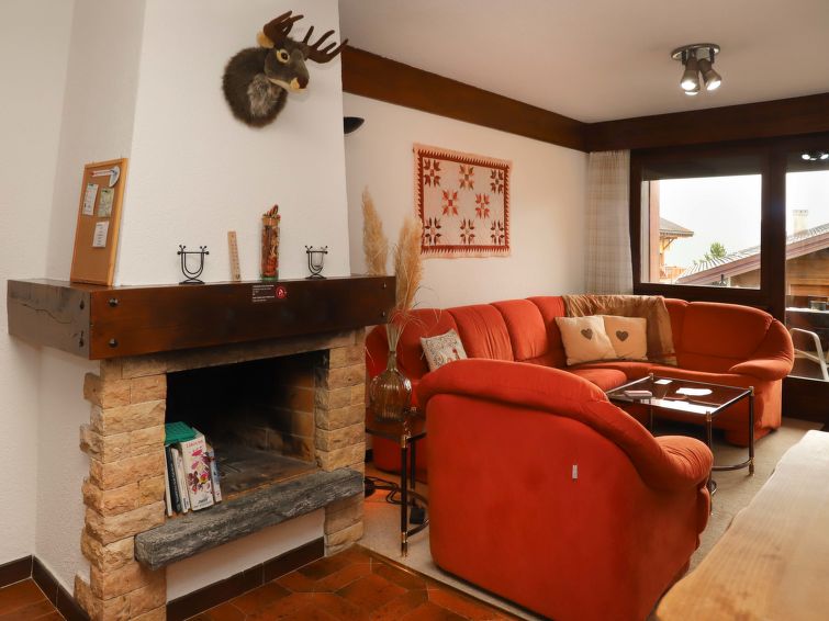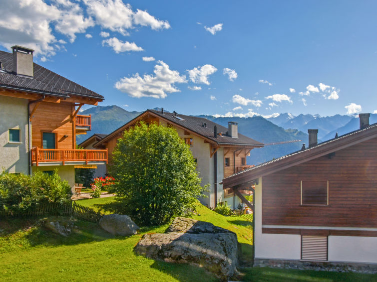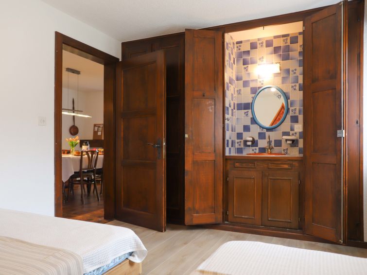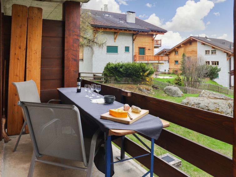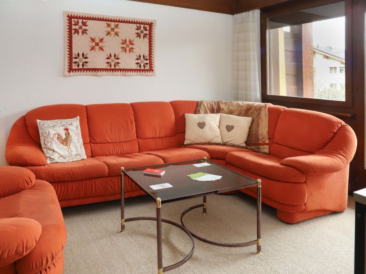 "Lichen 4", 3-Zimmer-Wohnung 66 m2 im 1. Stock. Geräumig und hell, zweckmässig und schön eingerichtet: grosses Wohn-/Esszimmer mit Kabel-TV. Ausgang zum Balkon. 1 Zimmer mit 1 franz. Bett (1 x 160 cm, Länge 200 cm). Ausgang zum Balkon. 1 grosses Zimmer mit 1 Bett (90 cm, Länge 190 cm), 1 Doppelbett (1 x 140 cm, Länge 190 cm), Waschbecken. Kleine Küche (Backofen, Geschirrspüler, 4 Glaskeramikplatten, Toaster, Wasserkocher, Tiefkühler, elektrische Kaffeemaschine, Kapseln für die Kaffeemaschine (Nespresso) extra, Racletteofen, Fondue Set (Chinoise, Käse)). Bad. Grosser Balkon, Südlage. Balkonmöbel. Eingeschränkte Sicht auf die Berge und die Landschaft. Zur Verfügung: Haartrockner. Internet (Wireless LAN, gratis). Parkplatz Nr. 4 beim Haus.