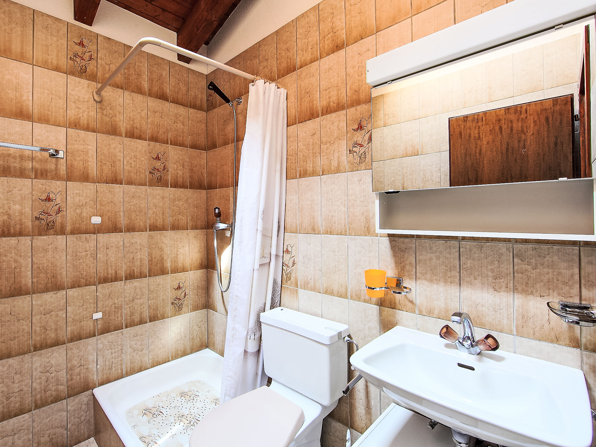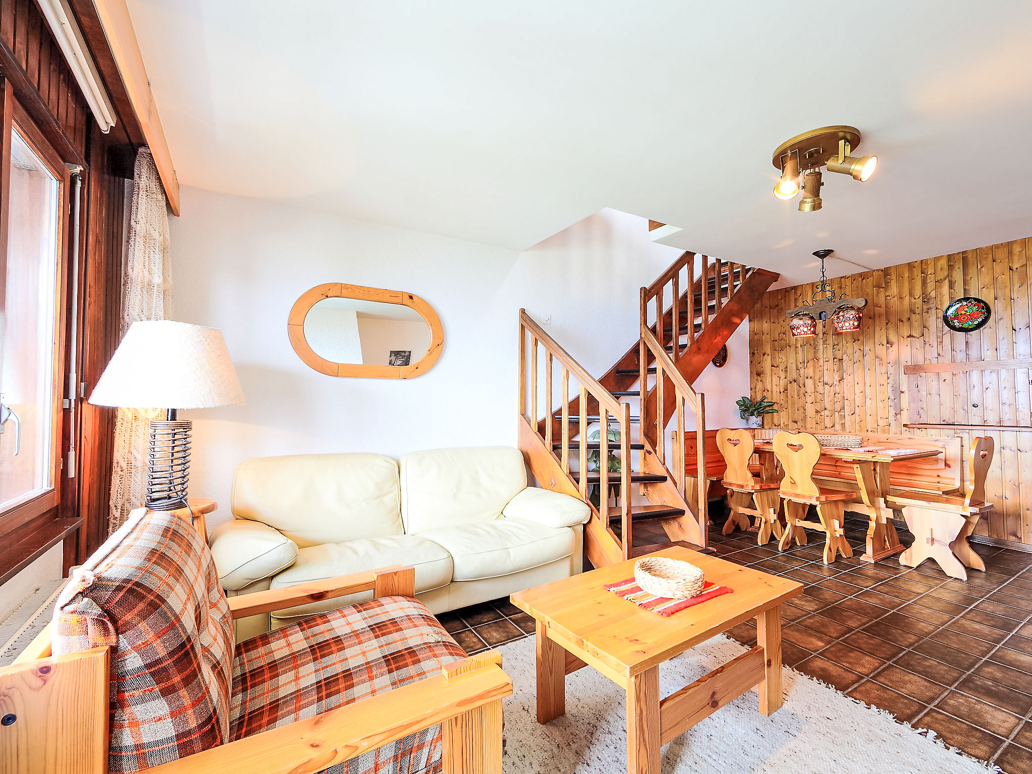 "Eden Roc 28", 2-Zimmer-Wohnung 78 m2 auf 2 Stockwerken, im Dachgeschoss. Einfach eingerichtet: Wohn-/Esszimmer mit offenem Kamin (nur Deko), Kabel-TV. Ausgang zum Balkon, Richtung Norden. Küche (3 Kochplatten, Backofen, Geschirrspüler, Mikrowelle, elektrische Kaffeemaschine, Fondue Set (Käse)) mit Durchreiche. Bad/WC. Obergeschoss: offene grosse Galerie mit 2 Wandklappbetten (90 cm, Länge 190 cm). Ausgang zum Balkon, Richtung Norden. 1 Zimmer mit 1 Doppelbett (2 x 80 cm, Länge 200 cm). Ausgang zum Balkon, Richtung Süden. Dusche/WC. 3 Balkone, Nordlage und Südlage. Balkonmöbel. Sehr schöne Sicht auf die Berge. Zur Verfügung: Haartrockner. Internet (WLAN, gratis). Bitte beachten: Nichtraucher-Unterkunft. Anstelle eines abgeschlossenen Schlafzimmers befinden sich manche Schlafplätze in einem offenen Bereich (Galerie, Nische etc.).