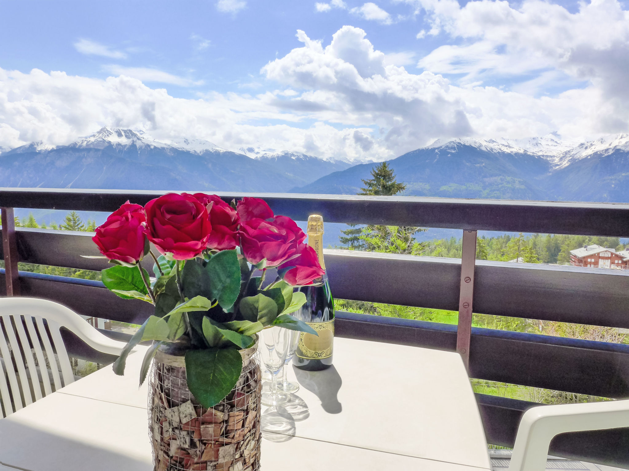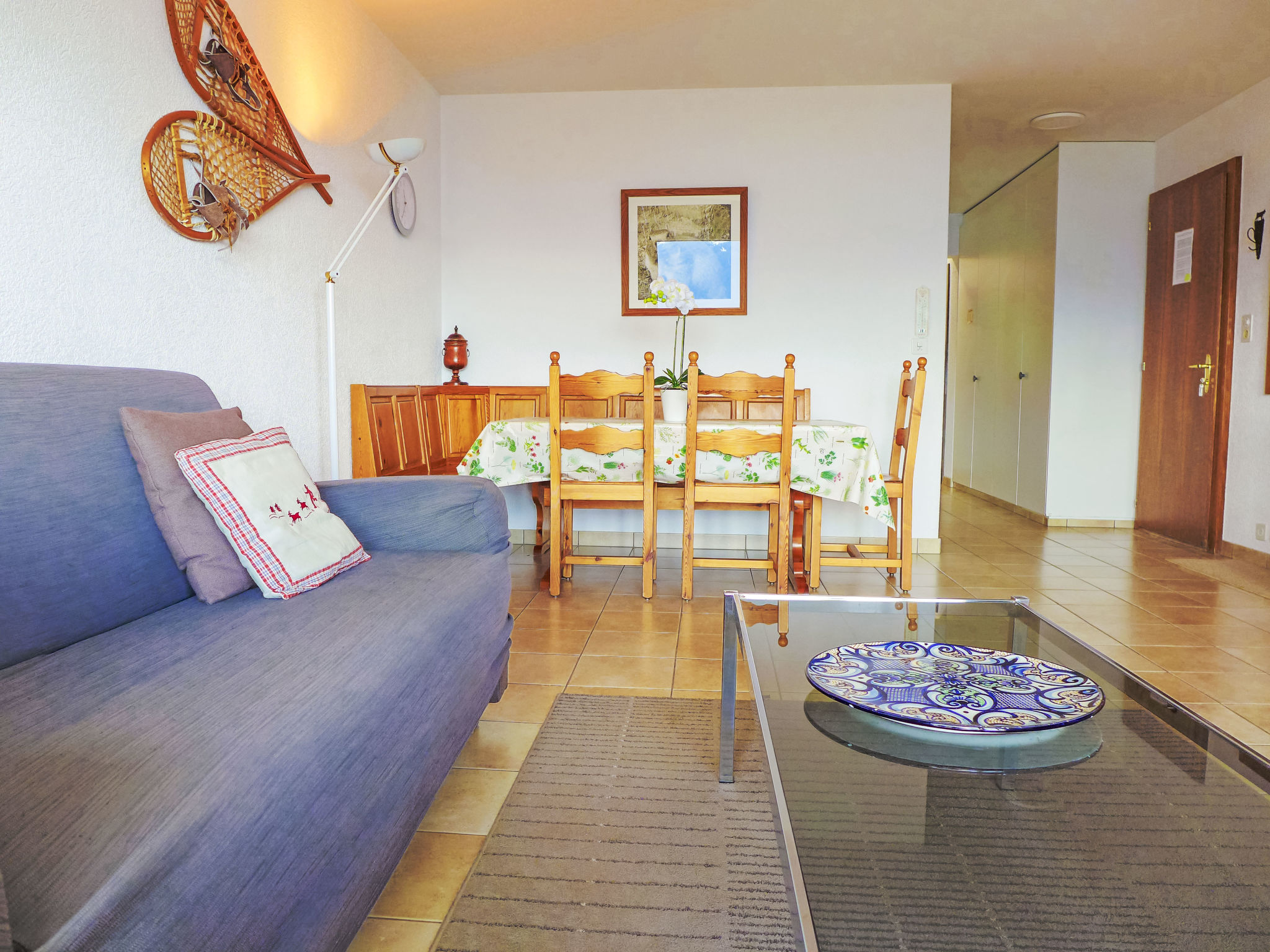 "Merises 20", 3-Zimmer-Wohnung 72 m2 im 3. Stock, Südlage. Gemütlich eingerichtet: Wohn-/Esszimmer mit 1 Diwanbett, Esstisch und Kabel-TV. 1 Zimmer mit 2 Betten (90 cm, Länge 190 cm). 1 Zimmer mit 2 Betten (90 cm, Länge 190 cm). Küche (3 Kochplatten, Backofen, elektrische Kaffeemaschine). Bad/Bidet/WC, Dusche/WC. Balkon 7 m2, Südlage. Balkonmöbel. Sehr schöne Sicht auf die Berge und die Landschaft. Zur Verfügung: Internet (Wireless LAN).