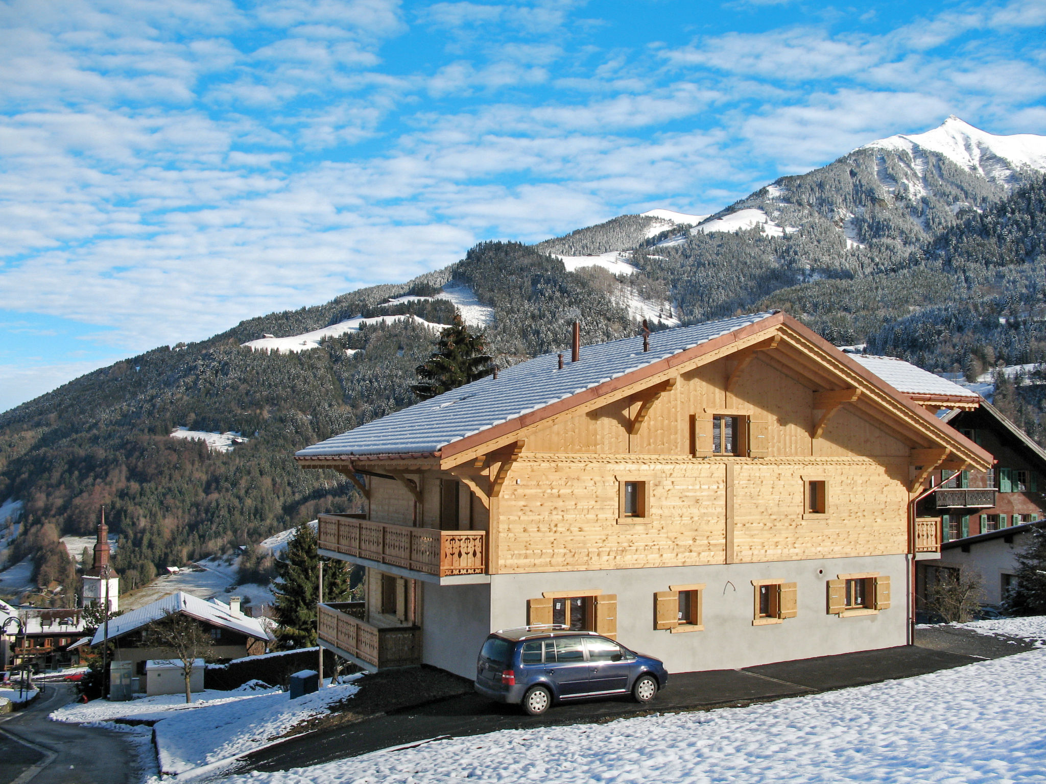 Val d'Illiez 4 km von Champéry: Grosses, schönes Chalet "Saint-Joseph", 1'000 m.ü.M.. Im Ort, 250 m vom Zentrum von Val d'Illiez. Im Hause: Zentralheizung. Steile, schmale Zufahrt. Im Winter 4x4 empfohlen. Parkplatz (für 7 Autos) auf dem Grundstück. Lebensmittelgeschäft 250 m, Supermarkt 8 km, Einkaufszentrum 8 km, Restaurant 250 m, Bushaltestelle 350 m, Bahnstation "Val d'Illiez" 350 m, Freibad 4 km. Tennis 4 km, Sportzentrum 4 km, Luftseilbahn 4 km, Skipisten 4 km, Skiverleih 4 km, Skischule 5 km, Langlaufloipe 6 km, Eisfeld 4 km. Bitte beachten: Fahrzeug empfohlen.