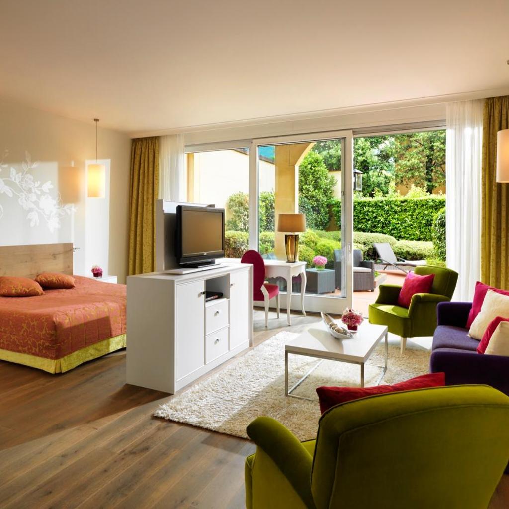 Die geräumigen und eleganten Zimmer im Giardino sind klimatisiert und verfügen über einen Balkon oder eine Terrasse, einen Flachbild-Sat-TV, einen CD- und DVD-Player sowie eine Minibar. In den Badezimmern liegen Bademäntel, Hausschuhe und ein Haartrockner für Sie bereit.