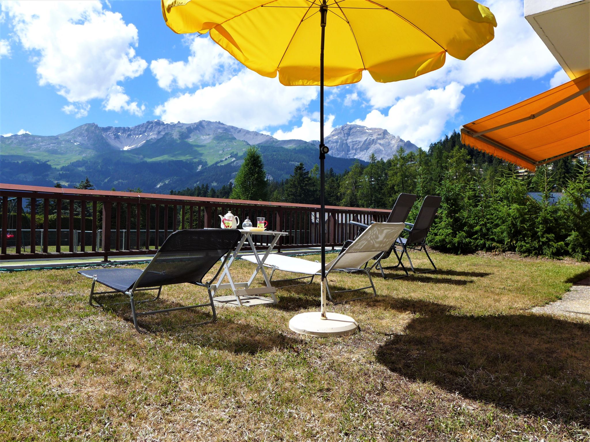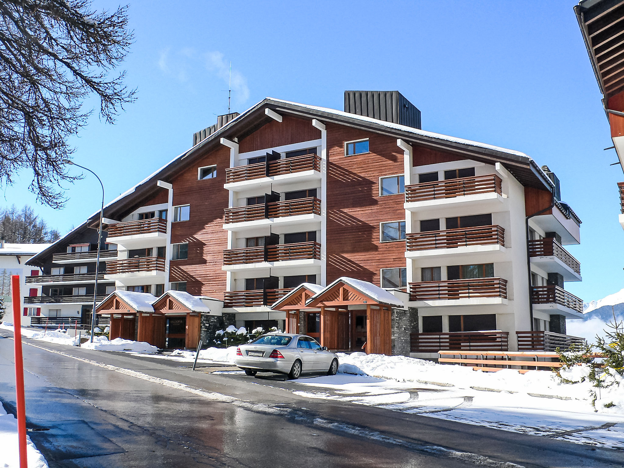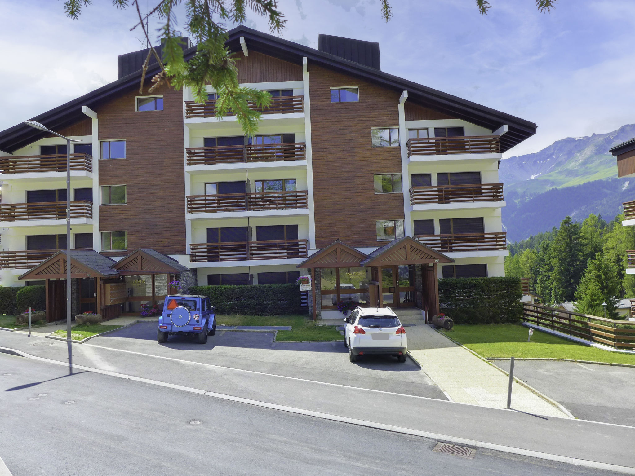 Grosse Residenz "Valdor". 1 km vom Zentrum von Crans, 1 km vom See, Richtung Südwesten. Zur Mitbenutzung: Garten (nicht eingezäunt) mit Rasen, Schwimmbad beheizt (saisonale Verfügbarkeit: 01.Jul. - 15.Sep.) mit Innentreppe. Tennis (17.Jun. - 15.Sep.), Tischtennis. Zur Alleinbenutzung: Rasen 130 m2. Terrasse, Gartenmöbel. In der Anlage: Fitnessraum, Fahrstuhl, Skiraum, Zentralheizung, Waschmaschine, Wäschetrockner (zur Mitbenutzung, extra). Parkplatz (beschränkte Anzahl) beim Haus. Einkaufsgeschäft 850 m, Supermarkt 1.3 km, Restaurant 500 m, Bäckerei 1.5 km, Bushaltestelle "Zier-Régent" 400 m, Bahnstation "Funiculaire Montana Gare" 3 km, Badesee "Moubra" 2.4 km, See Etang Long 1 km. Golfplatz (18 Loch) 900 m, Skisportanlagen 1 km, Ski-Kindergarten 600 m, Langlaufloipe 400 m. Bekannte Seen in der Umgebung sind gut erreichbar: Lac Grenon 2.2 km. Bitte beachten: Gratis Skibus. Die Schlüsselübergabe findet bei der Agentur Interhome in Montana statt, 3 km.