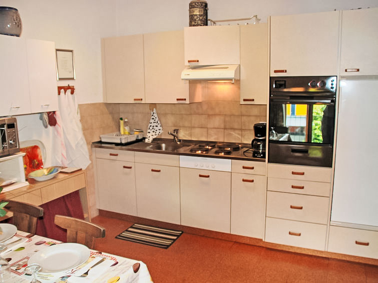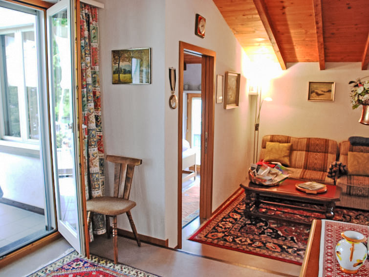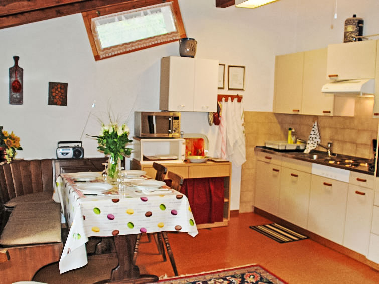 "Tre G OG", 3-Zimmer-Wohnung 64 m2 im 1. Stock. Geräumig, zweckmässig und rustikal eingerichtet: offenes Wohn-/Esszimmer mit Kabel-TV (Flachbildschirm), Radio. Ausgang zum Balkon. 1 Doppelzimmer mit 1 Doppelbett (2 x 90 cm, Länge 200 cm). Ausgang zum Balkon. 1 Zimmer mit 2 Betten (90 cm, Länge 200 cm). Offene Küche (4 Kochplatten, Backofen, Mikrowelle, elektrische Kaffeemaschine, Kapseln für die Kaffeemaschine (Nespresso mitbringen) extra) mit Esstisch. Dusche/Bidet/WC, Doppelwaschbecken. Ölheizung. Kleiner Balkon 10 m2. Balkonmöbel, Liegestühle. Sicht auf die Ortschaft. Zur Verfügung: Kinderhochstuhl, Babybett bis 2 Jahre (extra), Haartrockner. Internet (Wireless LAN, gratis). Parkplatz beim Haus. Bitte beachten: Nichtraucher-Unterkunft. NL-00005081
