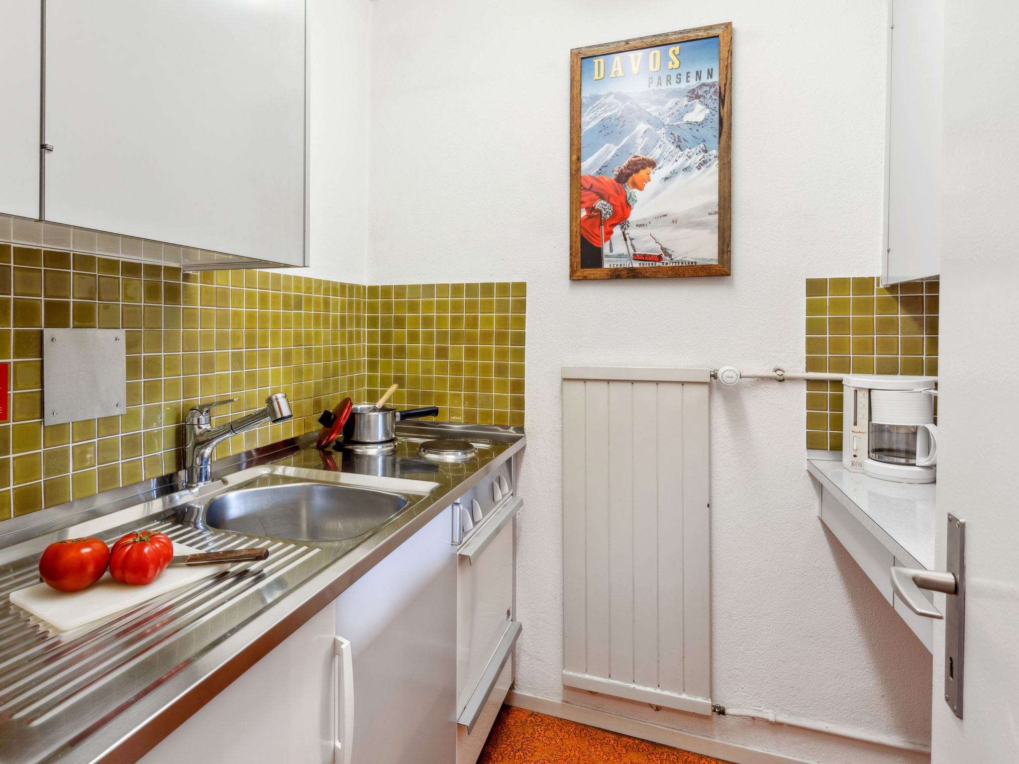 Davos: Appartementhaus "Guardaval (Utoring)". Im Ort, zentrale, ruhige, sonnige Lage am Hang, 1 km vom See, 300 m vom Skigebiet. Zur Mitbenutzung: Hallenbad. Im Hause: Empfang, Aufenthaltsraum mit TV, Wireless LAN, Sauna (extra). Spielzimmer, Fahrstuhl, Skiraum, Zentralheizung, Waschmaschine (zur Mitbenutzung). Brötchenservice und Getränkeservice. Schmale Zufahrt bis zum Haus. Parkplatz (überdacht, beschränkte Anzahl, extra), Gemeinschaftsgarage (extra). Einkaufsgeschäft 300 m, Restaurant 300 m, Bushaltestelle, Bahnstation "Davos Dorf" 400 m, Hallenbad 1 km, Badesee 1 km. Bergeisenbahn, Skisportanlagen, Skipisten, Skischule, Schlittelbahn 1.5 km, Langlaufloipe, Eisfeld 300 m. Bekannte Skigebiete sind gut erreichbar: Parsenn 300 m, Jakobshorn 1.5 km. Das Appartementhaus befindet sich oberhalb der Talstation der Parsennbahn und verfügt über eine herrliche Aussicht. Parkplatz + Garage (Reservierung bei Ankunft).