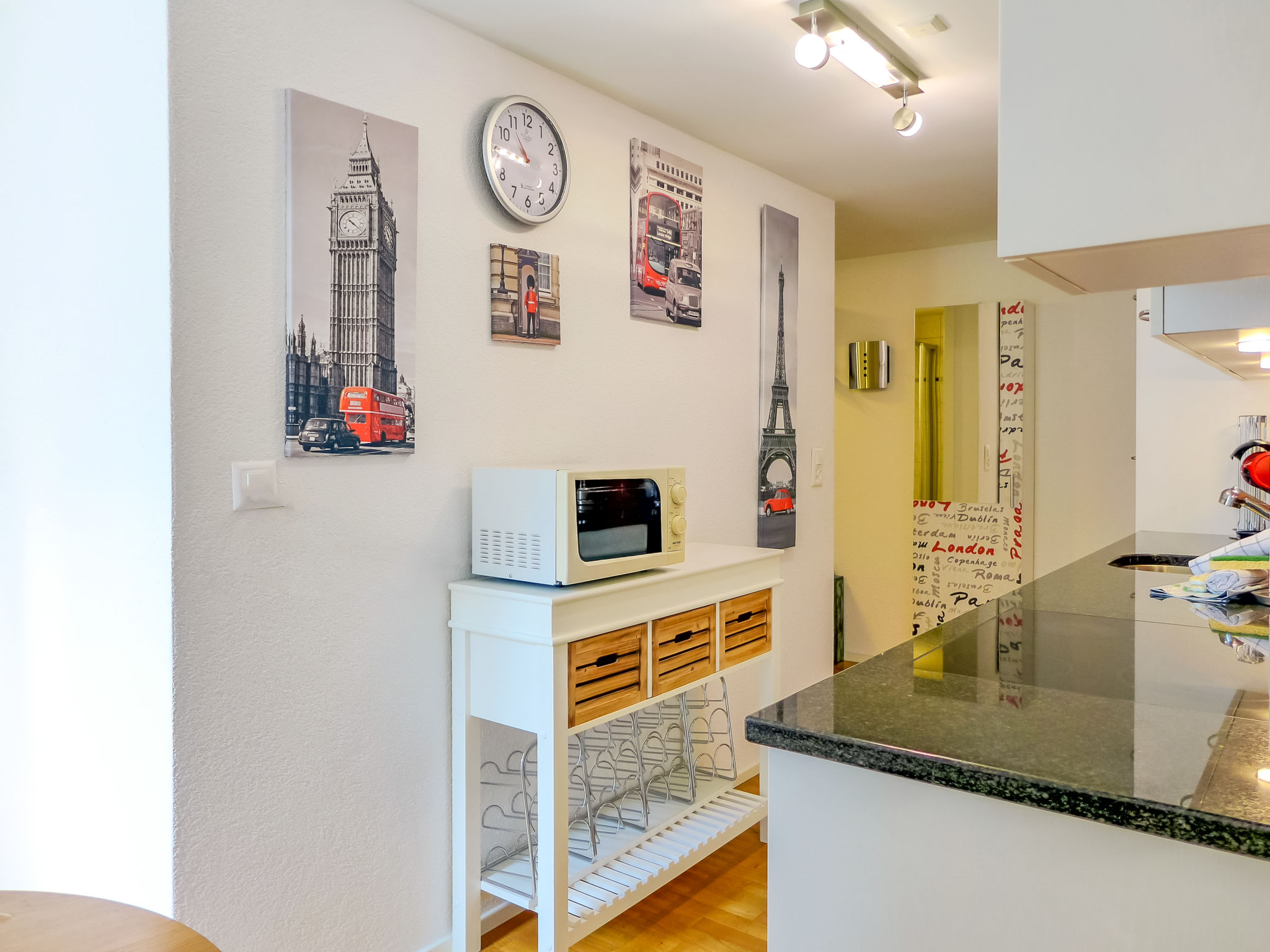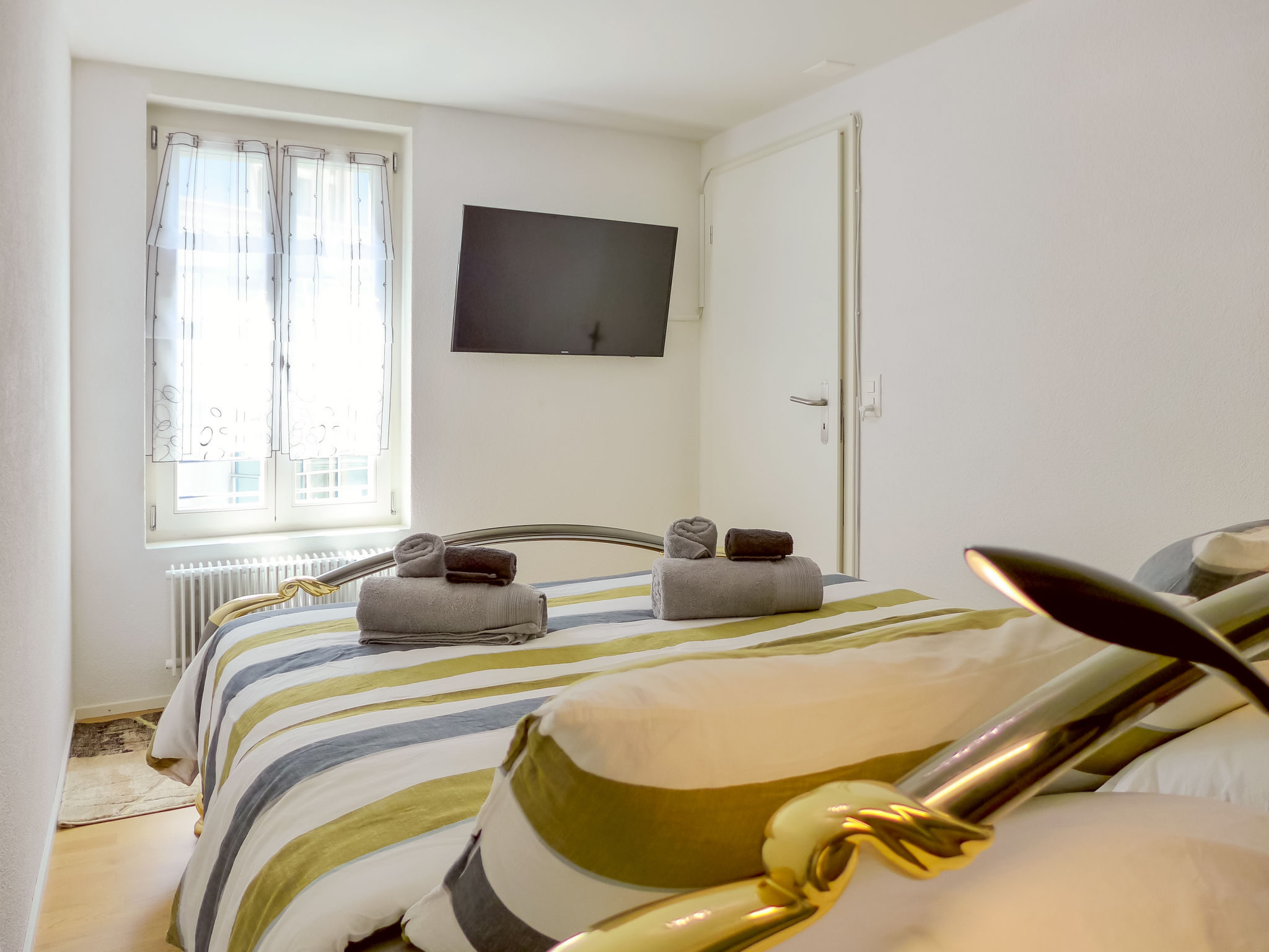 "Orya", 2-Zimmer-Wohnung 50 m2 im 1. Stock, Westlage. Objekt geeignet für 2 Erwachsene + 2 Kinder. Renoviert, sehr komfortabel und modern eingerichtet: offenes Wohn-/Esszimmer mit 1 Doppeldiwanbett (2 x 80 cm, Länge 200 cm), Esstisch, Kabel-TV, Digital-TV, Flachbildschirm und Radio. Ausgang zum Balkon, Richtung Westen. 1 Doppelzimmer mit 1 Doppelbett (160 cm, Länge 200 cm), TV. Offene Küche (Backofen, Geschirrspüler, 4 Glaskeramikplatten, Toaster, Wasserkocher, Mikrowelle, Tiefkühler, elektrische Kaffeemaschine, Kapseln für die Kaffeemaschine (Dolce Gusto) extra). Dusche/WC. Parkettboden. Kleiner Balkon, Westlage. Balkonmöbel. Sicht auf die Berge und das Städtchen. Zur Verfügung: Haartrockner. Internet (Wireless LAN, gratis). Bitte beachten: Nichtraucher-Unterkunft, kein Parkplatz.