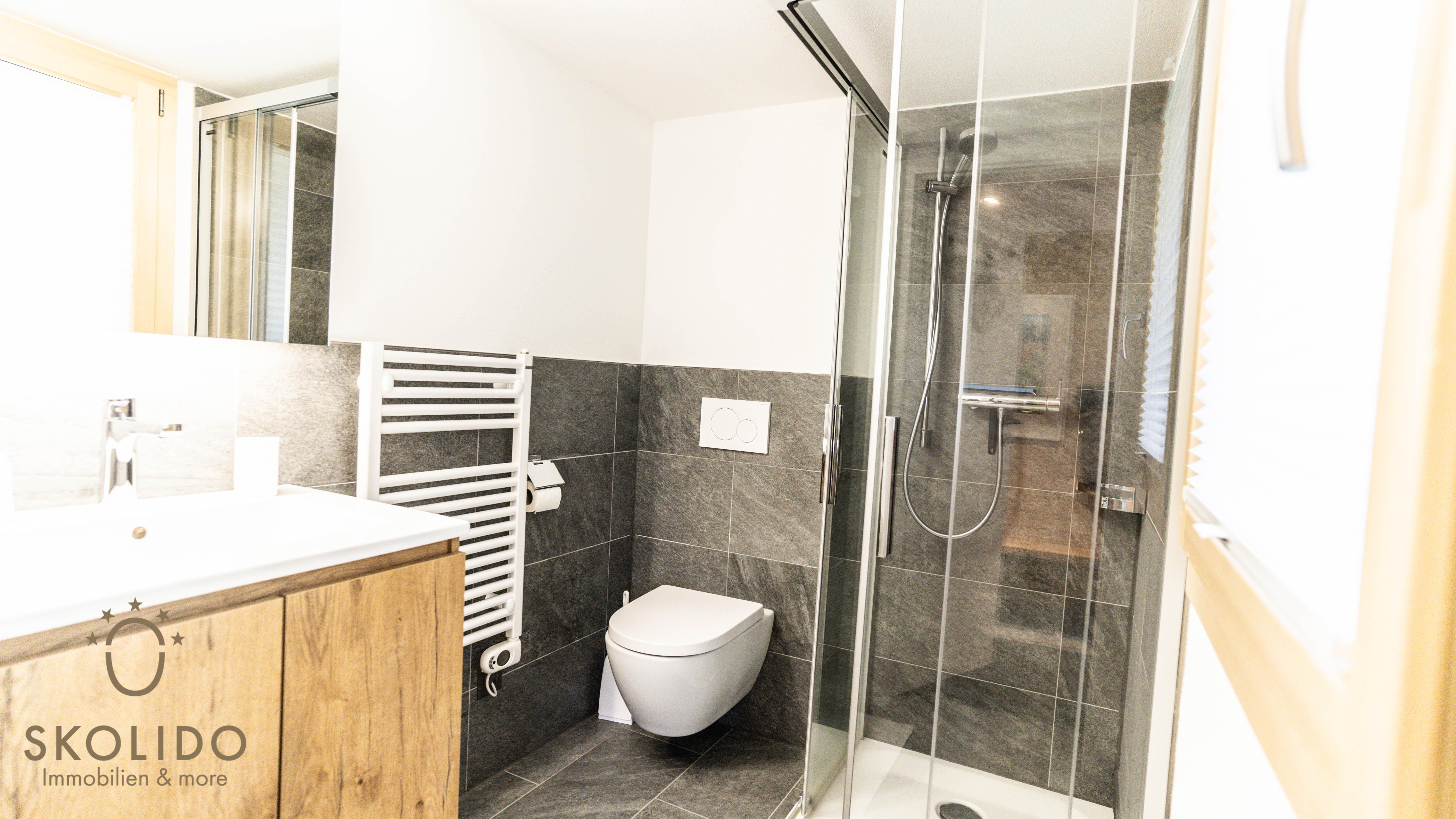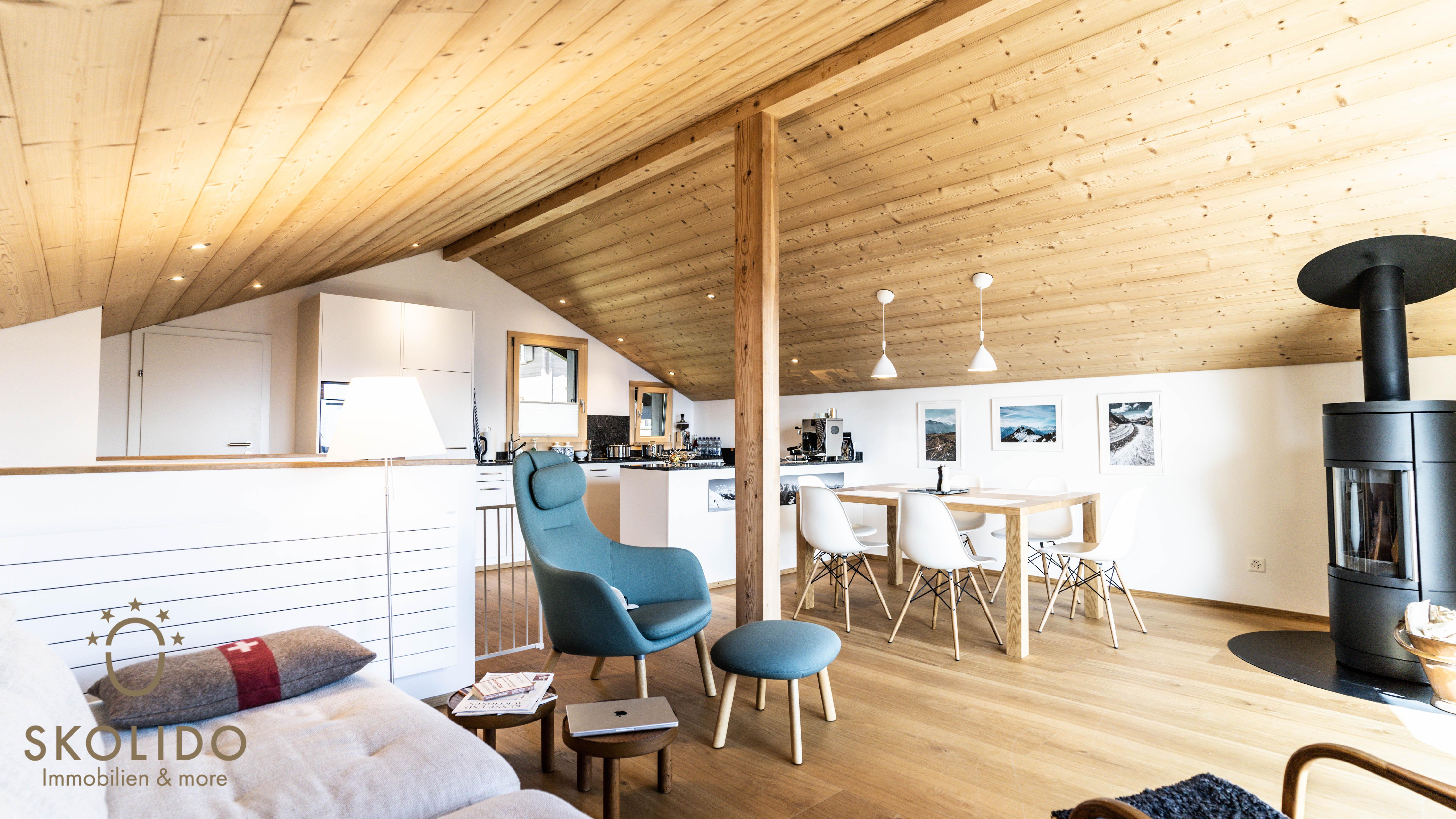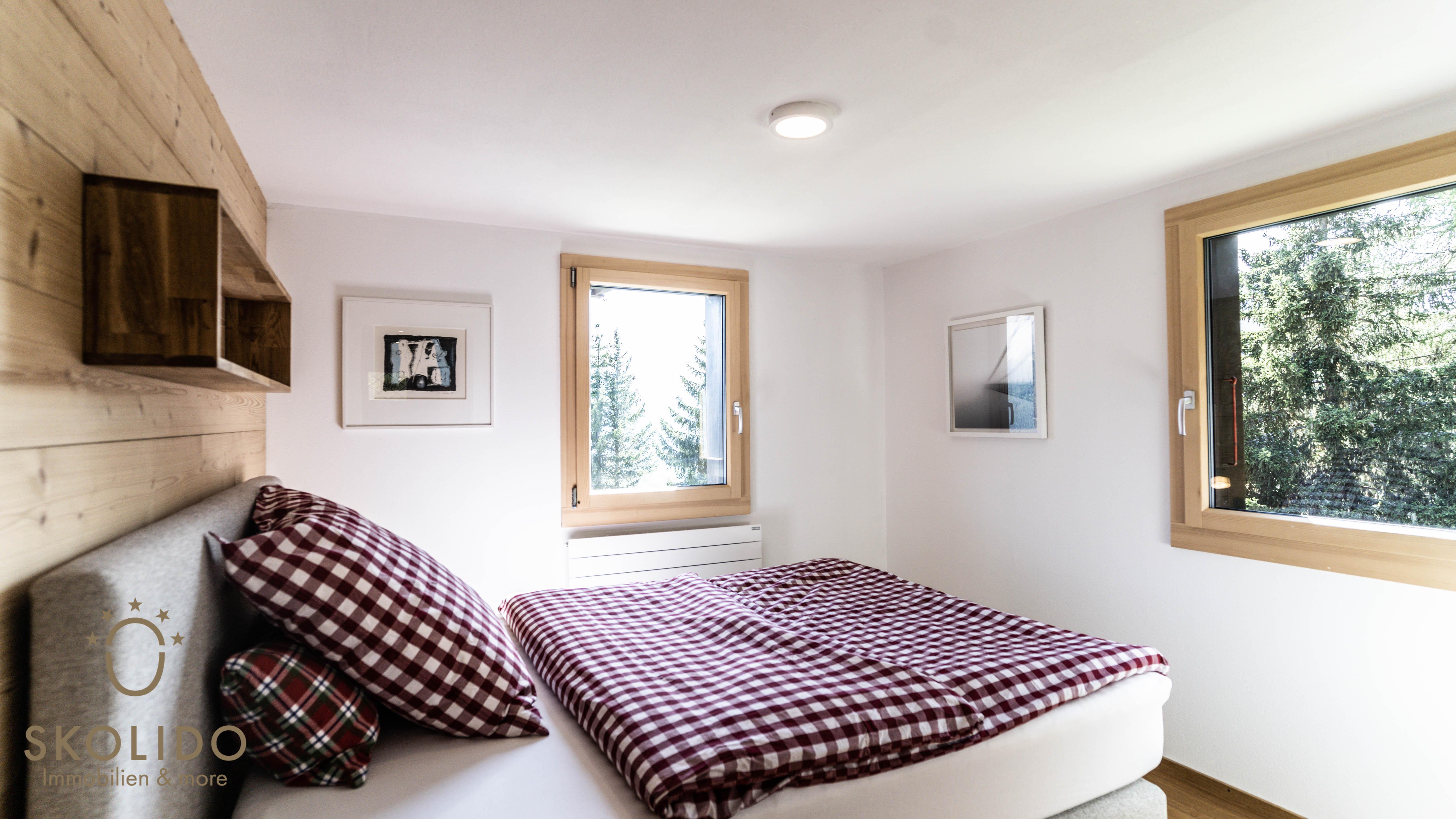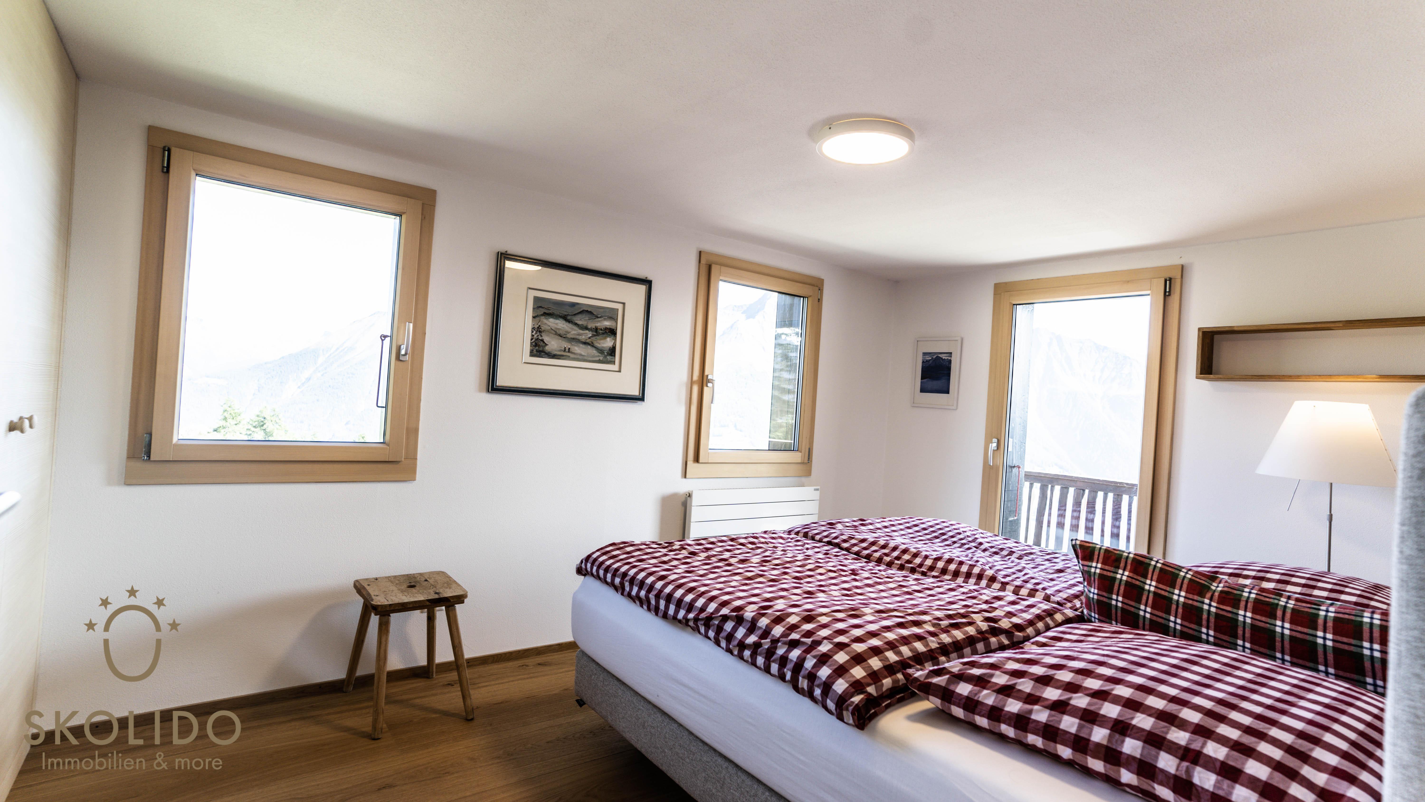 Das Chalet verfügt über insgesamt vier Schlafzimmer und bietet Platz für 7 Personen. Im 1.Stock befinden sich 3 Schlafzimmer mit zwei Doppelbeten und einem Einzelzimmer, sowie Badezimmer und Balkon. Das vierte Schlafzimmer ist nur von aussen im Untergeschoss zugänglich und verfügt über ein eigenes Badezimmer. Im Obergeschoss befinden sich Küche, Wohn- und Essbereich mit Balkon und einem dritten Badezimmer.
