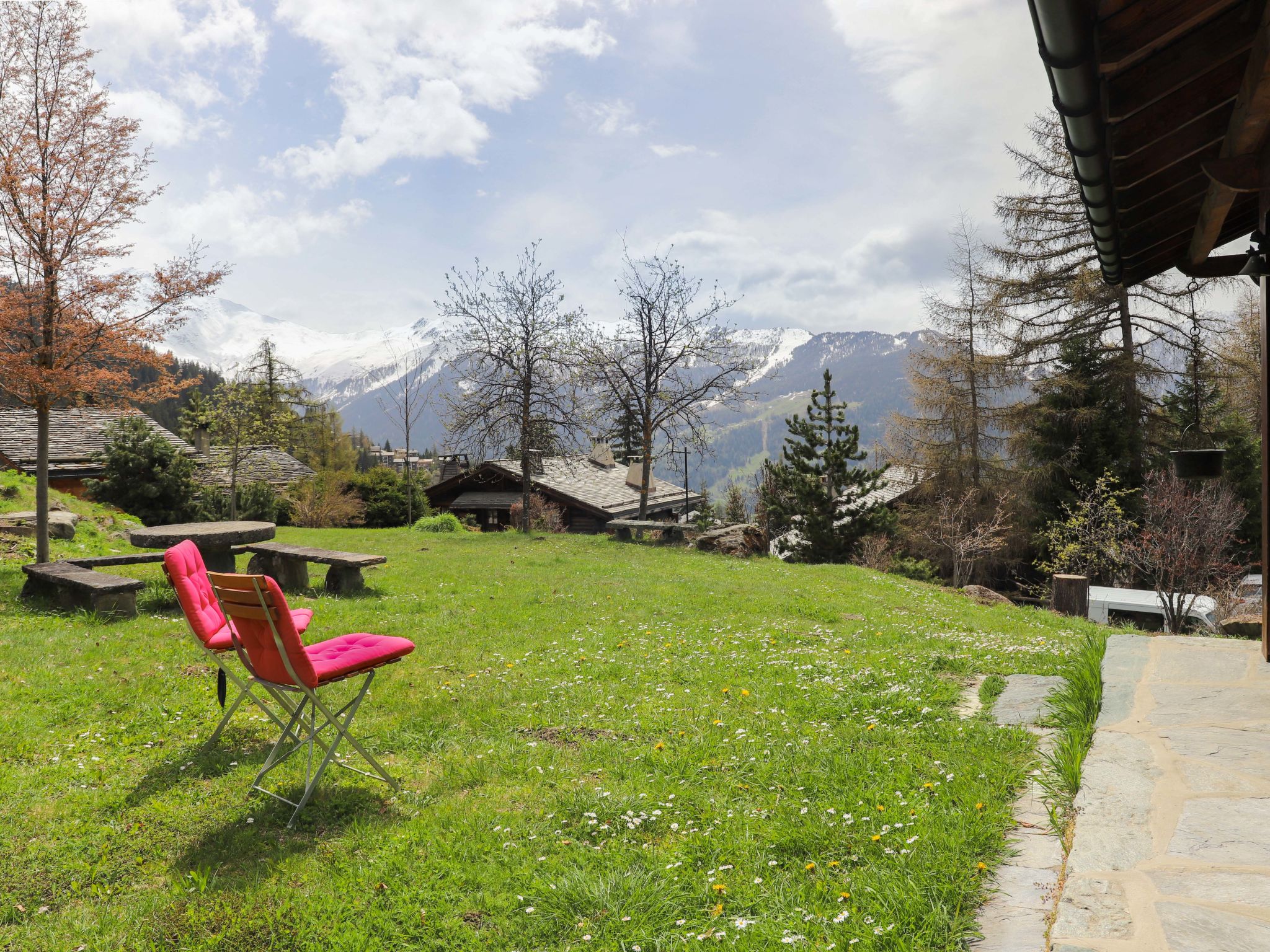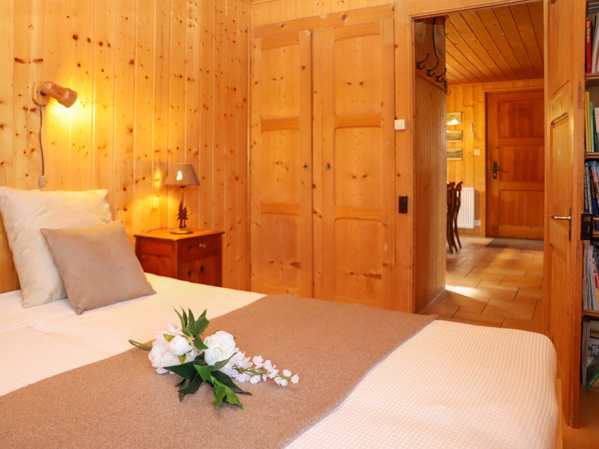"La tintaz", 4-Zimmer-Chalet 102 m2 auf 2 Stockwerken. Vollständig renoviert im Jahre 2016, komfortabel und schön eingerichtet: grosses Wohn-/Esszimmer mit Schwedenofen und Kabel-TV. Ausgang zur Terrasse. 1 Zimmer mit 1 Doppelbett (2 x 80 cm, Länge 200 cm). Grosse Kochnische (Geschirrspüler, Mikrowelle, Tiefkühler, elektrische Kaffeemaschine, Kapseln für die Kaffeemaschine (Nespresso) extra). Dusche/WC. Unteres Geschoss: 2 grosse Zimmer, jedes Zimmer mit 1 franz. Bett (160 cm, Länge 200 cm). Ausgang zum Garten. Dusche/WC. Schöne Sicht auf die Berge. Zur Verfügung: Waschmaschine, Wäschetrockner. Internet (WLAN). Maximal 1 Haustier/Hund erlaubt.