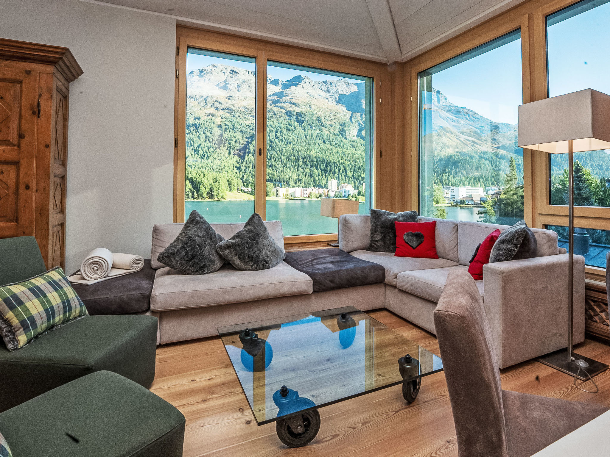 St. Moritz: Sehr komfortables Mehrfamilienhaus "Chesa Spuonda Verde", auf 4 Stockwerken, Baujahr 2002. Oberhalb von St. Moritz See, zentrale, sonnige Lage, 50 m vom See, 1.5 km vom Skigebiet. Im Hause: Fahrstuhl, Einstellraum für Fahrräder, Skiraum, Zentralheizung, Skischuhtrockner. Gemeinschaftsgarage. Einkaufsgeschäft 500 m, Supermarkt 500 m, Restaurant, Bar 800 m, Bäckerei 800 m, Fahrradverleih 950 m, Bushaltestelle "St. Moritz Bad, Reithalle" 450 m, Bahnstation 850 m, Hallenbad 1.3 km, Thermalbad "Heilbadzentrum St.Moritz" 1.5 km, See St. Moritzer See 50 m. Golfplatz (18 Loch) 6.1 km, Surfschule 5.9 km, Tennis 1.6 km, Tennishalle 1.6 km, Minigolf 1.3 km, Reitstall 3.5 km, Wanderwege ab Haus 50 m, Luftseilbahn 1.5 km, Skilift 1.5 km, Skipisten 1.5 km, Skiverleih 950 m, Skibushaltestelle 450 m, Skischule 1.3 km, Kinderskischule 1.3 km, Langlaufloipe 1.3 km, Eisfeld 600 m, Kinderspielplatz 1.4 km. Nahe gelegene Sehenswürdigkeiten: Segantini Museum 1.5 km, Engadiner Museum 1.3 km, Mili Weber-Haus 1.7 km, Olympia Bob Run mit Museum 1.9 km, Nietzsche Museum in Sils-Maria 10.2 km. Bekannte Skigebiete sind gut erreichbar: Corviglia Piz Nair 1.5 km, Corvatsch - Furtschellas 7.2 km, Diavolezza - Lagalb 18.5 km. Bekannte Seen in der Umgebung sind gut erreichbar: St. Moritzer See 50 m, Silvaplaner See 5.9 km, Silser See 10.2 km. Wandergebiete: Stazerwald & Stazersee, Corviglia Piz Nair, Muottas Muragl. Die Schlüsselübergabe findet bei der Agentur Interhome in St. Moritz Bad statt. Die Nachbarschaft ist sehr lärmempfindlich. Ruhe und gutes Benehmen wird erwartet.