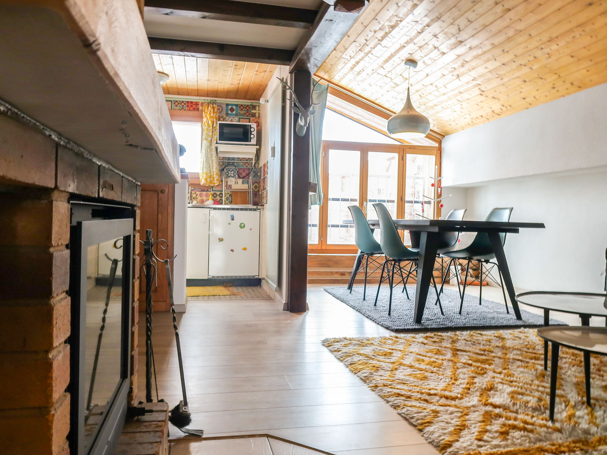 "Les Genets 163B", 2-Zimmer-Attikawohnung 63 m2 im 5. Stock. Objekt geeignet für 2 Erwachsene + 2 Kinder. Teilweise renoviert, komfortabel und schön eingerichtet: Wohn-/Esszimmer mit offenem Kamin und Kabel-TV. Abgeschrägte, offene Galerie, Deckenhöhe 60 - 120 cm mit 2 Betten (90 cm, Länge 190 cm). 1 Zimmer mit 1 Doppelbett (2 x 90 cm, Länge 200 cm). Ausgang zum Balkon, Richtung Westen. Küche (Backofen, 4 Glaskeramikplatten, Toaster, Wasserkocher, elektrische Kaffeemaschine, Kapseln für die Kaffeemaschine (dolce gusto) extra, Racletteofen, Fondue Set (Käse)). Bad/WC. Balkon, Westlage. Eingeschränkte Sicht auf die Berge. Zur Verfügung: Internet (WLAN, gratis). Parkplatz Nr. 163b (überdacht), Höhe 200 cm. Bitte beachten: Nichtraucher-Unterkunft. Maximal 1 Haustier/Hund erlaubt. Anstelle eines abgeschlossenen Schlafzimmers befinden sich manche Schlafplätze in einem offenen Bereich (Galerie, Nische etc.).