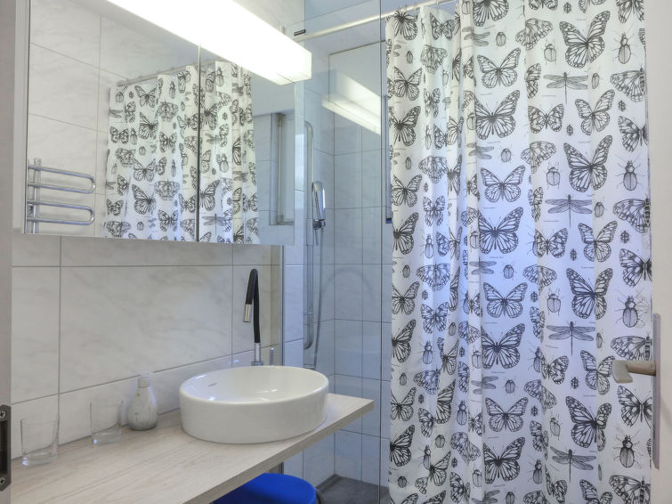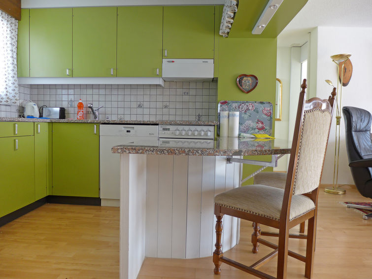 "Rustica Apt. M", 3-Zimmer-Wohnung 63 m2, im Erdgeschoss. Hell, komfortabel und gemütlich eingerichtet: Wohn-/Esszimmer mit Esstisch, Kabel-TV und Radio. Ausgang zur Terrasse. 1 Zimmer mit 1 Doppelbett (2 x 90 cm, Länge 200 cm). 1 Zimmer mit 2 Betten (90 cm, Länge 200 cm). Offene Küche (Backofen, Geschirrspüler, 4 Glaskeramikplatten, Toaster, Wasserkocher, Mikrowelle, elektrische Kaffeemaschine, Kapseln für die Kaffeemaschine (Nespresso) extra, Racletteofen, Fondue Set (Käse)) mit kleiner Bar. Dusche, sep. WC. Terrasse, Südlage. Terrassenmöbel, Elektrogrill. Herrliche Sicht auf die Berge und die Ortschaft. Zur Verfügung: Haartrockner. Internet (Wireless LAN, gratis). Bitte beachten: geeignet für Familien. Nichtraucher-Unterkunft.