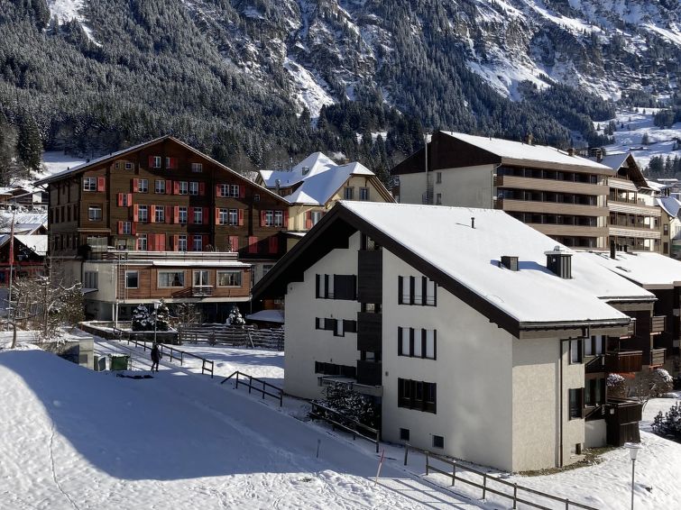 Appartementhaus "Rustica". Im Ort, 150 m vom Zentrum, exzellente Lage: Absolut zentral und dennoch ruhig. Im Hause: Zentralheizung. Einkaufsservice vor Anreise möglich. Einkaufsgeschäft 150 m, Lebensmittelgeschäft 100 m, Supermarkt 150 m, Restaurant 50 m, Bushaltestelle "Lauterbrunnen (by train)" 3.2 km, Bahnstation "Wengen" 200 m, Freibad 400 m. Luftseilbahn 150 m, Kinderspielplatz 50 m. Bekannte Seen in der Umgebung sind gut erreichbar: Thunersee 13 km, Brienzersee 13 km. Bitte beachten: autofreie Ferienanlage. Die Anreise erfolgt mit der Bergbahn.